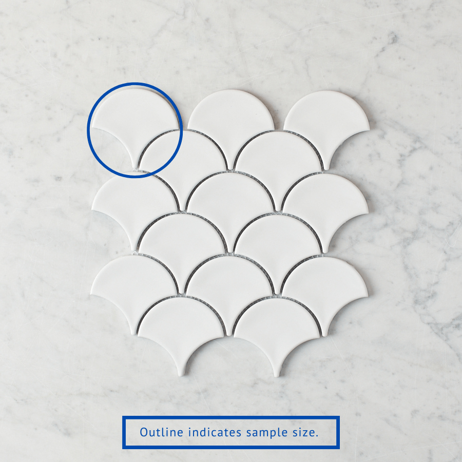 The Coral Bay Gloss White Fish Scale Sample is the perfect option for those looking to add a touch of elegance and modernity to their home decor. With its smooth finish and rich tone, this sample will surely enhance any interior space. Complete the look with recommended Mapei Beige grout and silicone in a matt finish. This sample is ideal for use in kitchens, bathrooms, and feature walls, and allows you to envision the final look before committing to a full installation.