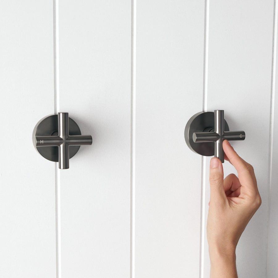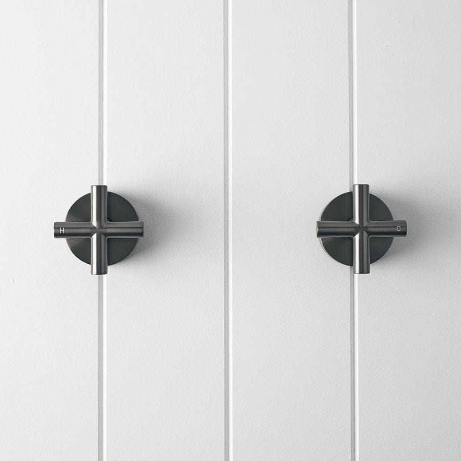 The Cross Taps in Gunmetal bring a touch of modern functionality to your bathroom with their sleek design and reliable performance. These taps offer smooth operation, ensuring a hassle-free experience every time you use them. A durable choice that combines style with practicality, making them a dependable addition to your home.