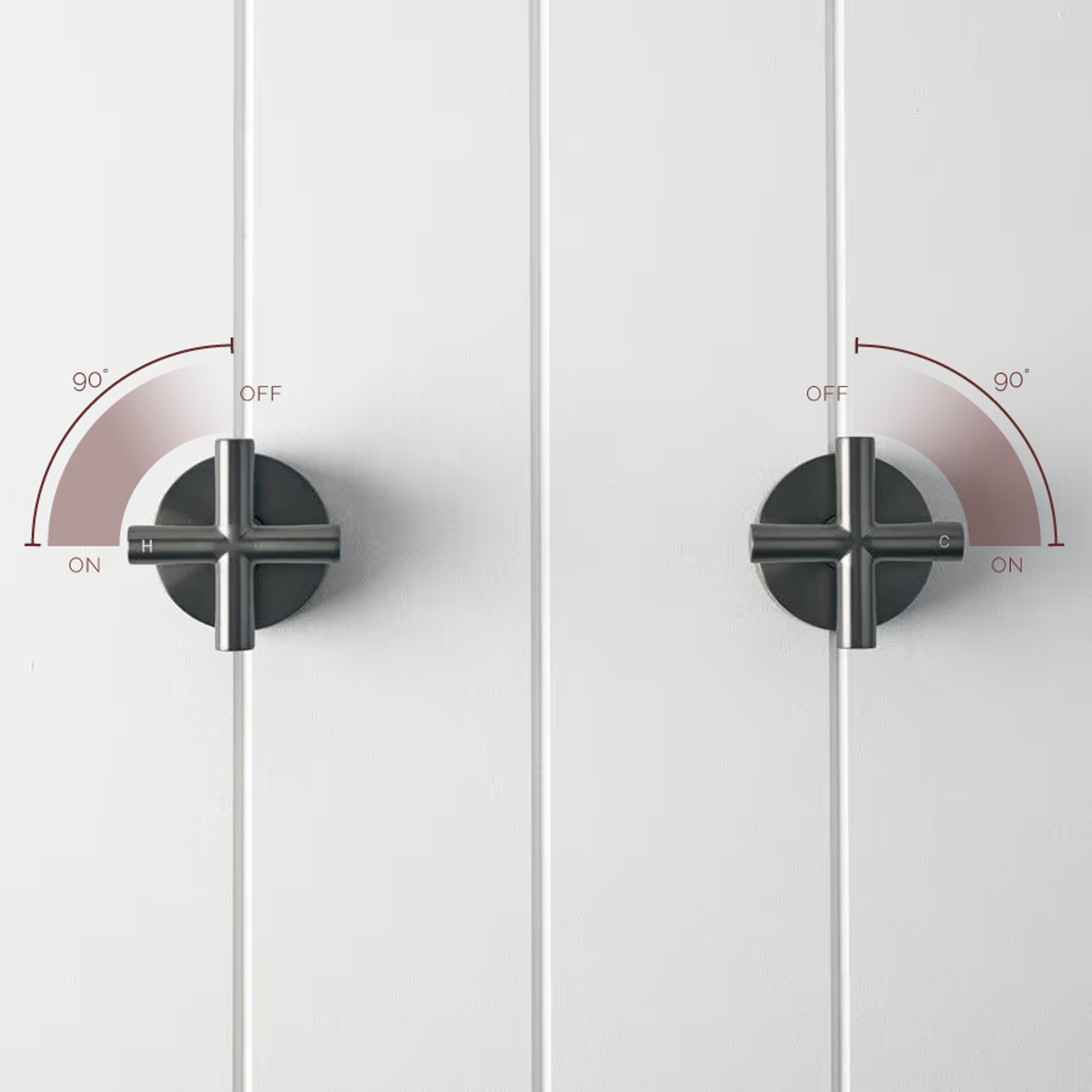 | Taps | Quarter turn taps Both taps turn outwards |