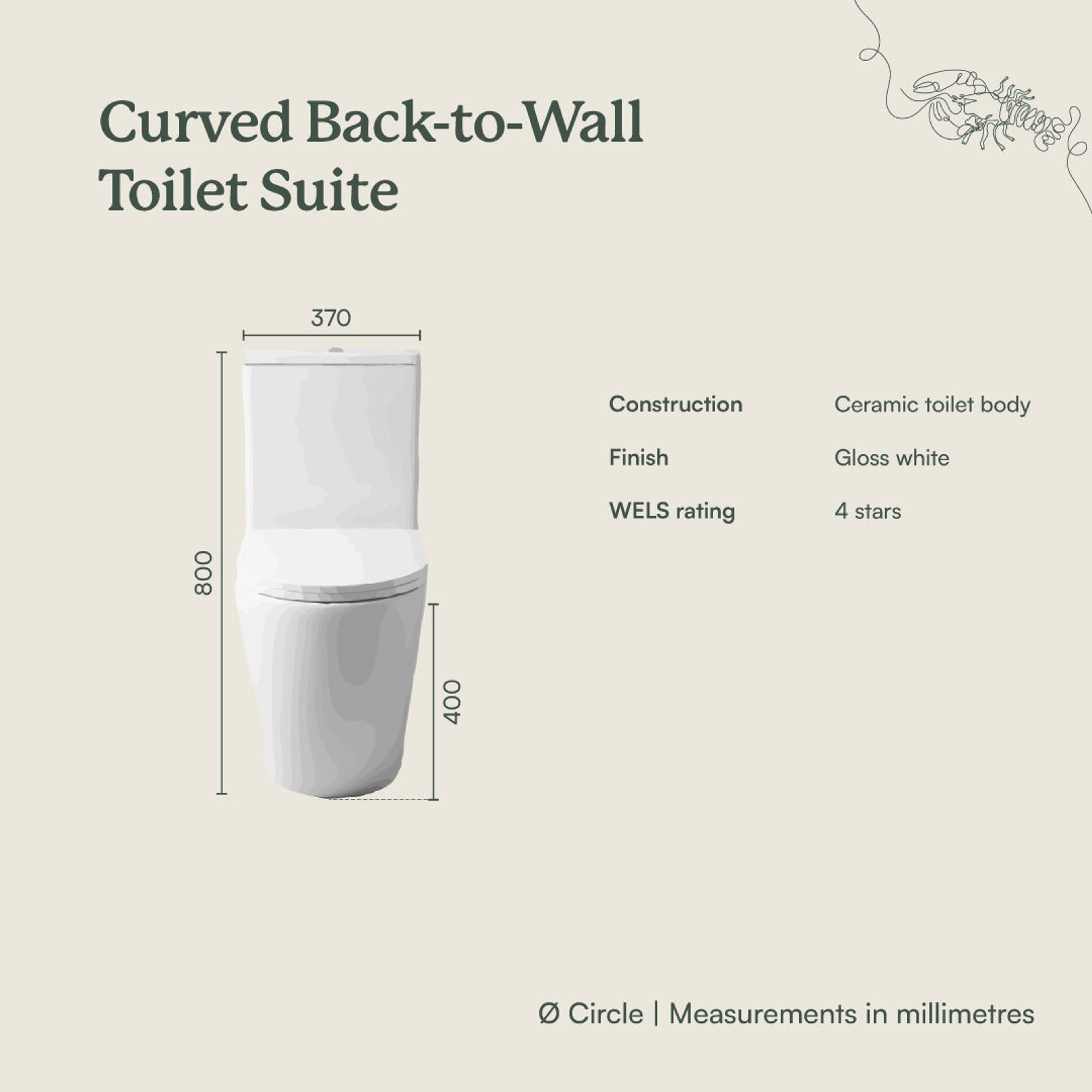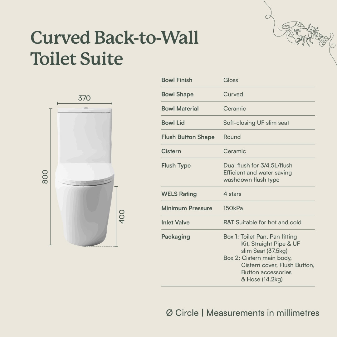 The Curved Back-To-Wall Toilet Suite combines modern design with reliable functionality. This Toilet Suite offers a sleek, space-saving design that fits seamlessly into any bathroom layout. Built for durability and ease of installation, it ensures long-term performance and user satisfaction.