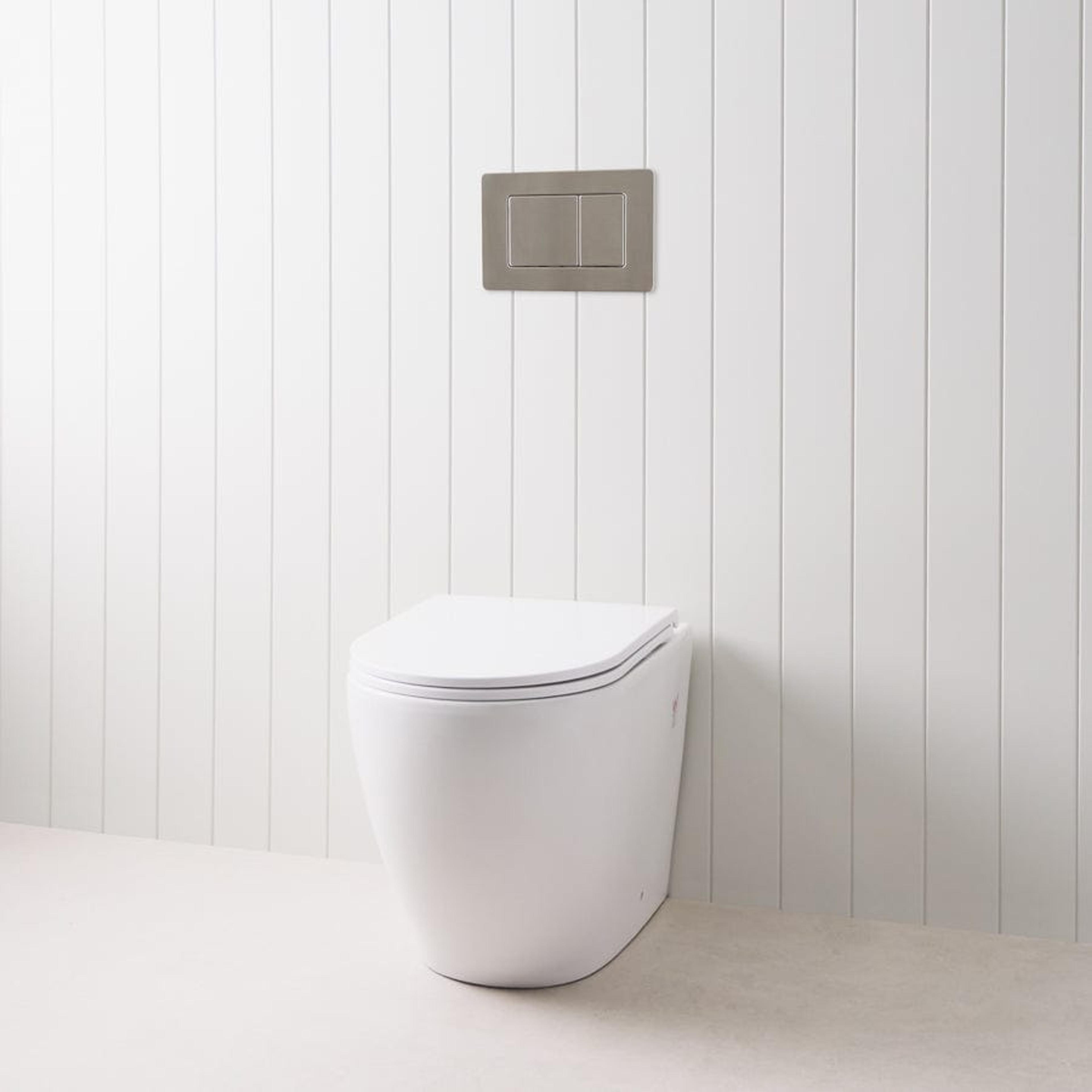 The Curved In-Wall Toilet With Rectangle Gunmetal Buttons combines sleek design with reliable functionality, making it a standout in any modern bathroom. Its in-wall installation ensures a seamless look, while the gunmetal buttons add a touch of refined style. Built for durability and ease of use, this toilet bundle is a practical choice for long-term performance.