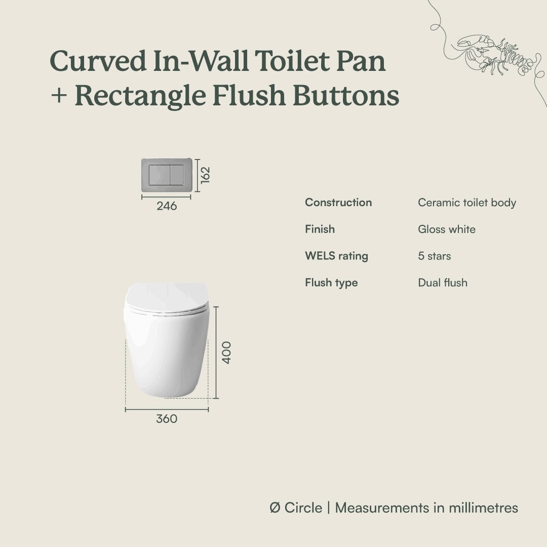 | Flush Buttons | Flush Buttons only compatible with Yabby toilet cistern and are not sold separately. Electroplated finish Dual flush |