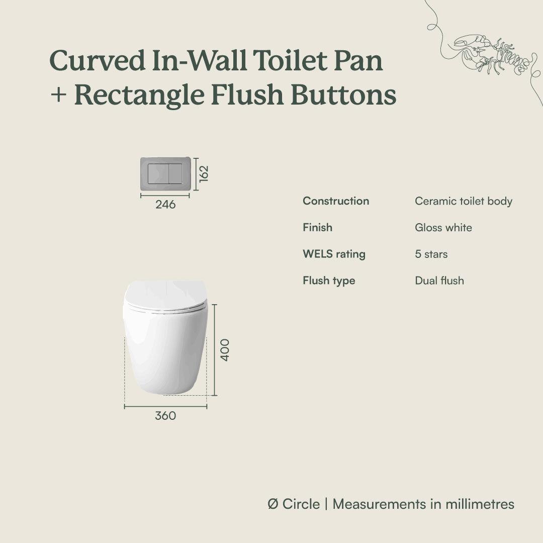 The Curved In-Wall Toilet With Rectangle Matte Black Buttons combines sleek design with functional reliability, making it an ideal choice for modern bathrooms. Its in-wall installation ensures a clean and uncluttered look, while the matte black buttons add a touch of refined style. Built to last, this toilet bundle offers dependable performance and ease of use for years to come.