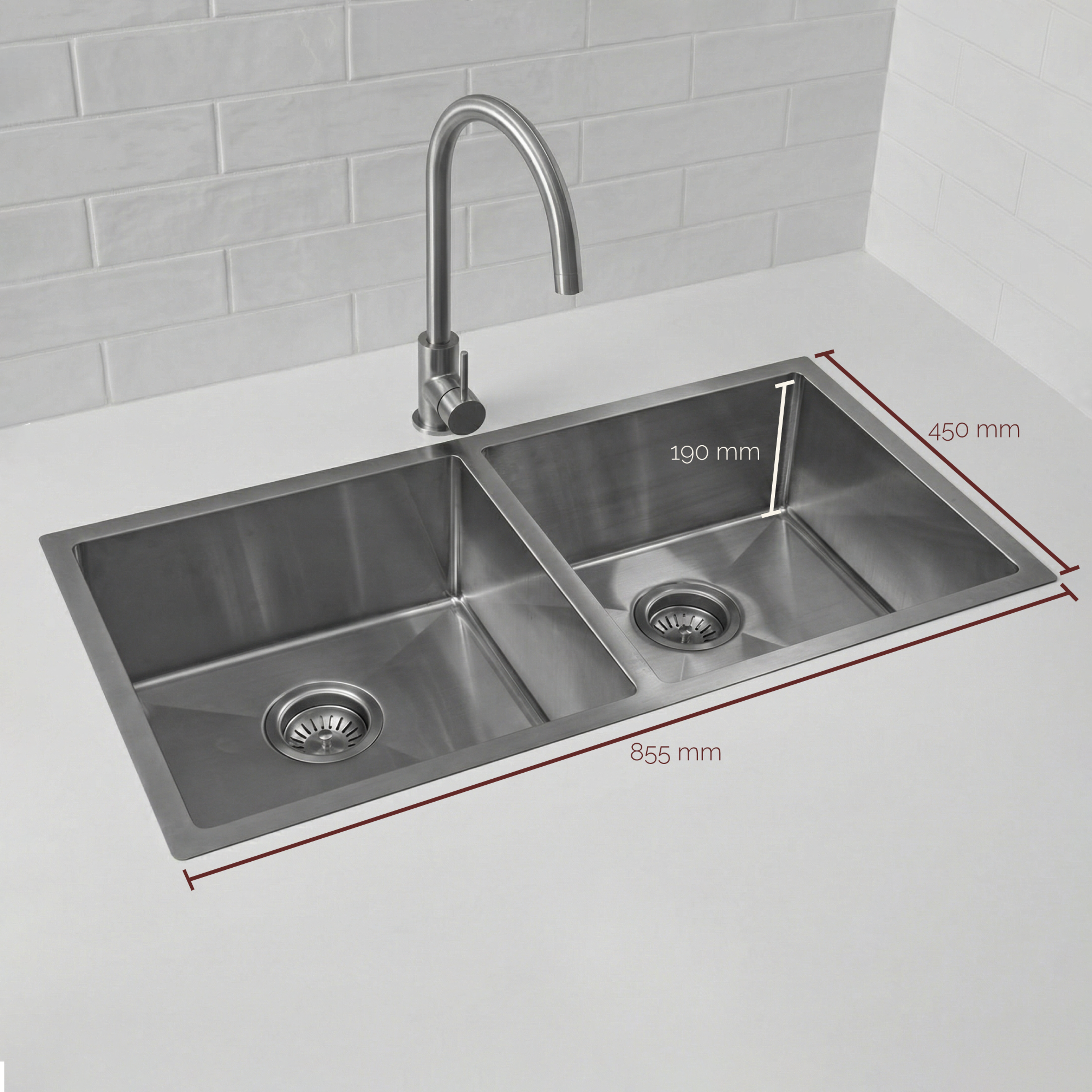 The Double Bowl Sink 855x450mm Stainless Steel brings a refined touch to your kitchen space. As part of our SINK collection, this double sink combines functionality with a sleek design, enhancing the textural depth of your home. Experience a harmonious blend of practicality and style, perfect for creating a warm, inviting atmosphere.
