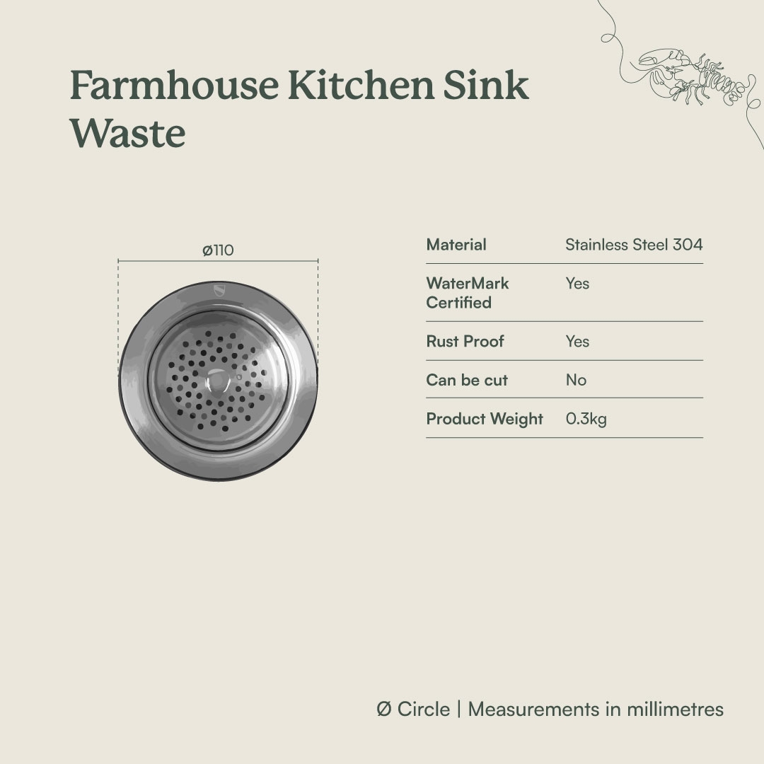 The Farmhouse Kitchen Sink Waste features a stainless steel body with a durable finish that keeps your kitchen looking polished. Designed to resist fingerprints and watermarks, it’s a practical detail that keeps your sink area feeling fresh and refined day after day.
