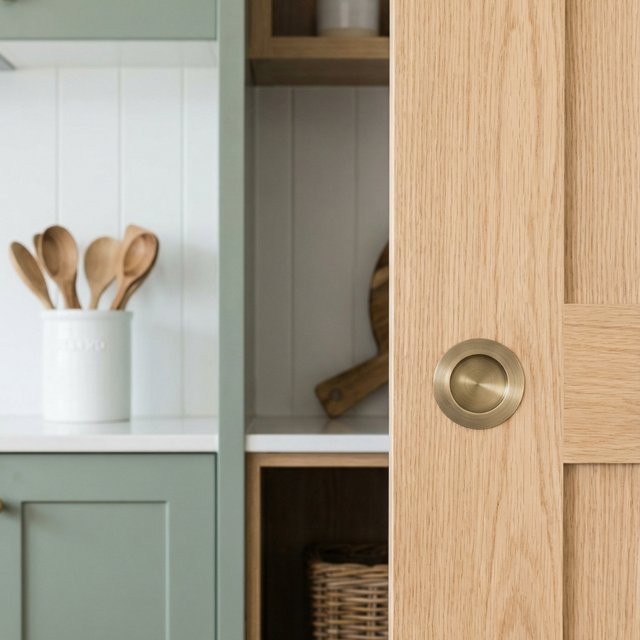 The Round Flush Pull in Antique Brass adds a refined touch to any sliding door. Designed with an easy grasp and a smooth, recessed shape, it brings both comfort and understated style. Its warm brass finish complements modern and heritage-inspired interiors alike, offering a polished detail that completes the look.