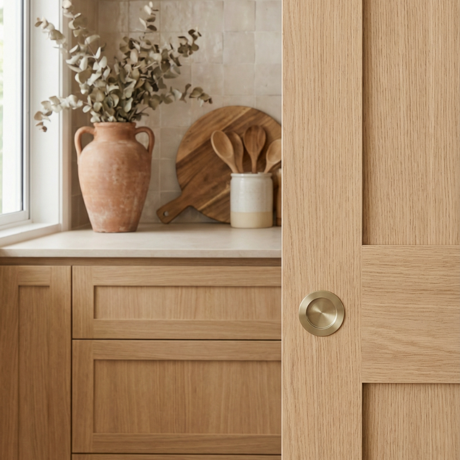 The Round Flush Pull in Warm Brushed Nickel adds a subtle, contemporary touch to any sliding door. Its smooth, recessed design keeps lines clean and minimal, while the warm brushed finish introduces a soft metallic tone that complements both modern and classic interiors. A simple, refined detail that finishes your space beautifully.