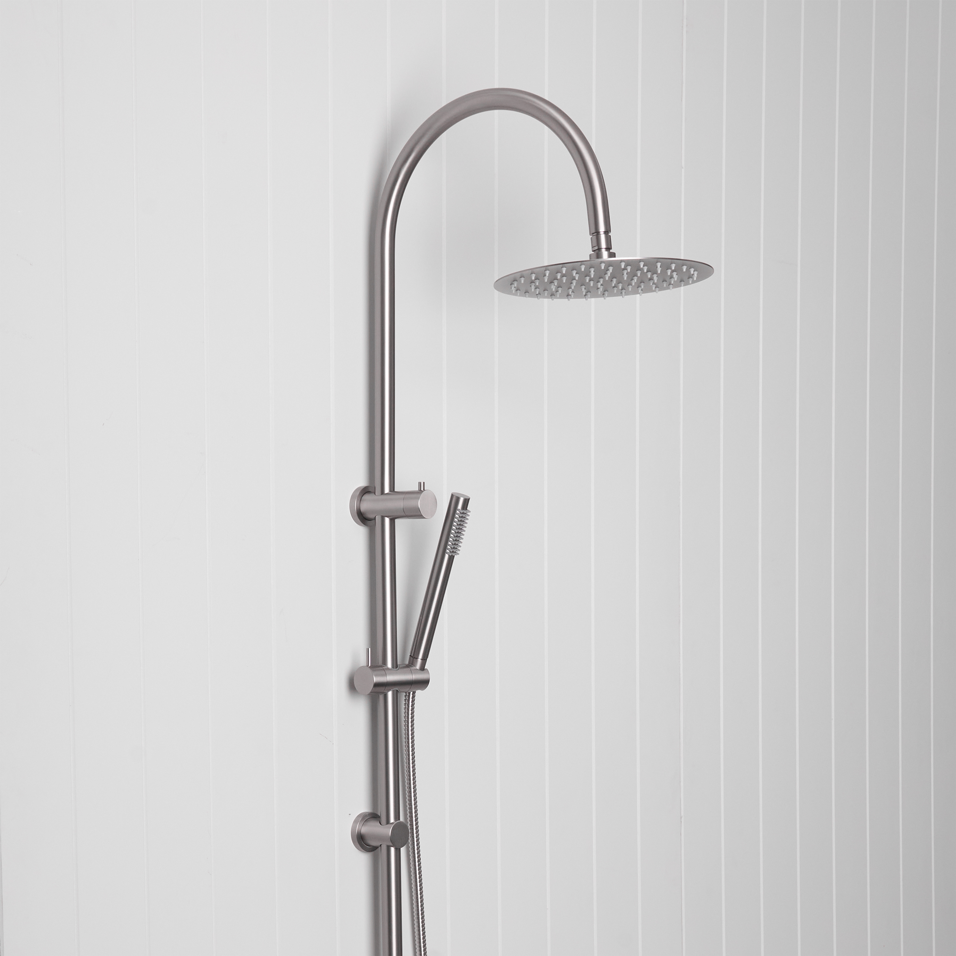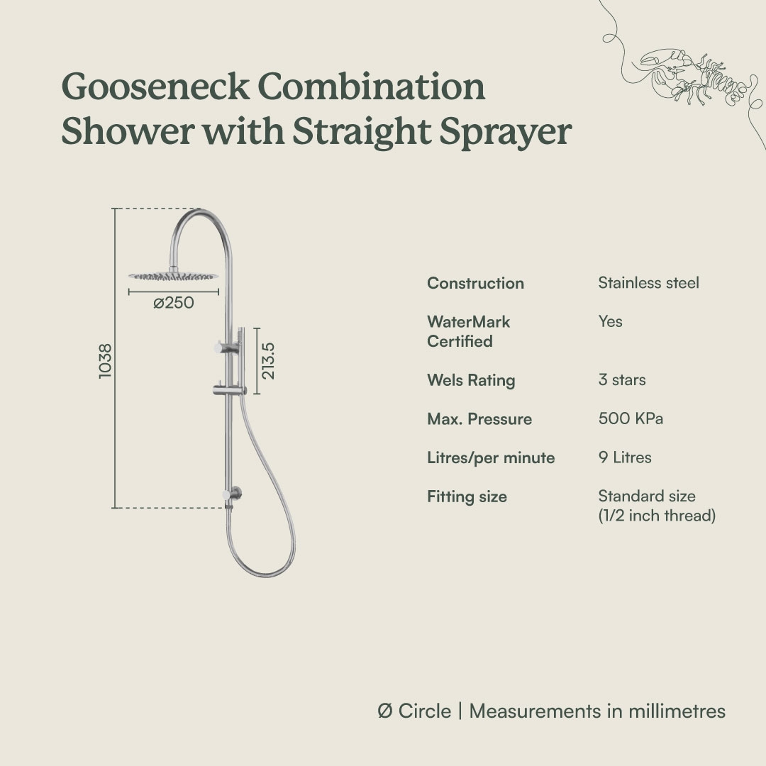 The Gooseneck Combination Shower pairs a soothing overhead rain shower with our Straight Shower Hose + Sprayer, delivering everyday practicality with an elevated, refined look.