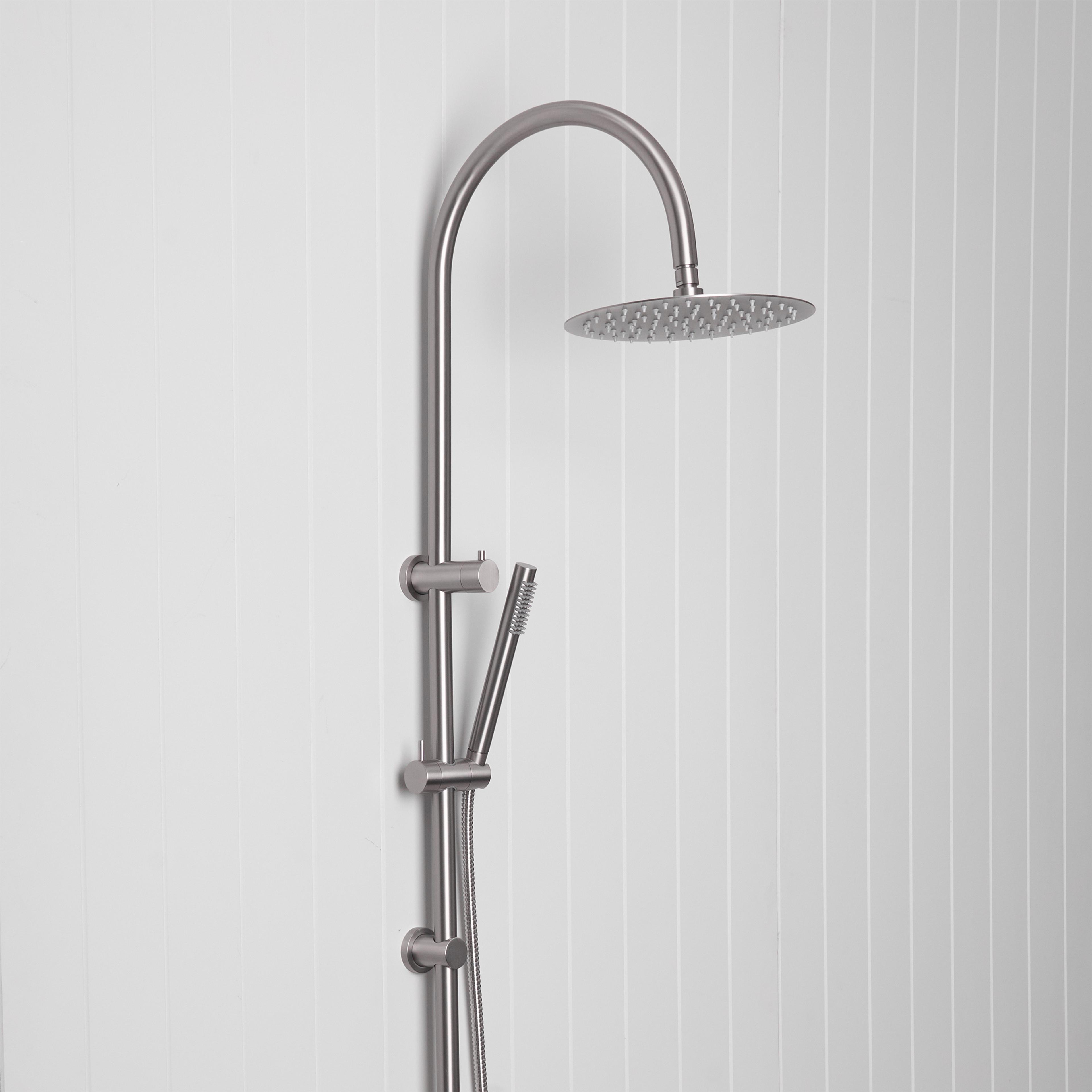 Designed with a smooth, rounded gooseneck arm, it introduces a sense of softness and luxury to your bathroom while offering the same versatility and performance you love. The adjustable handheld sprayer can be raised, lowered, or angled to suit your needs, making it ideal for daily showering, rinsing, and effortless cleaning. Its extended reach is perfect for washing kids or pets, and for keeping your shower space fresh and easy to maintain.