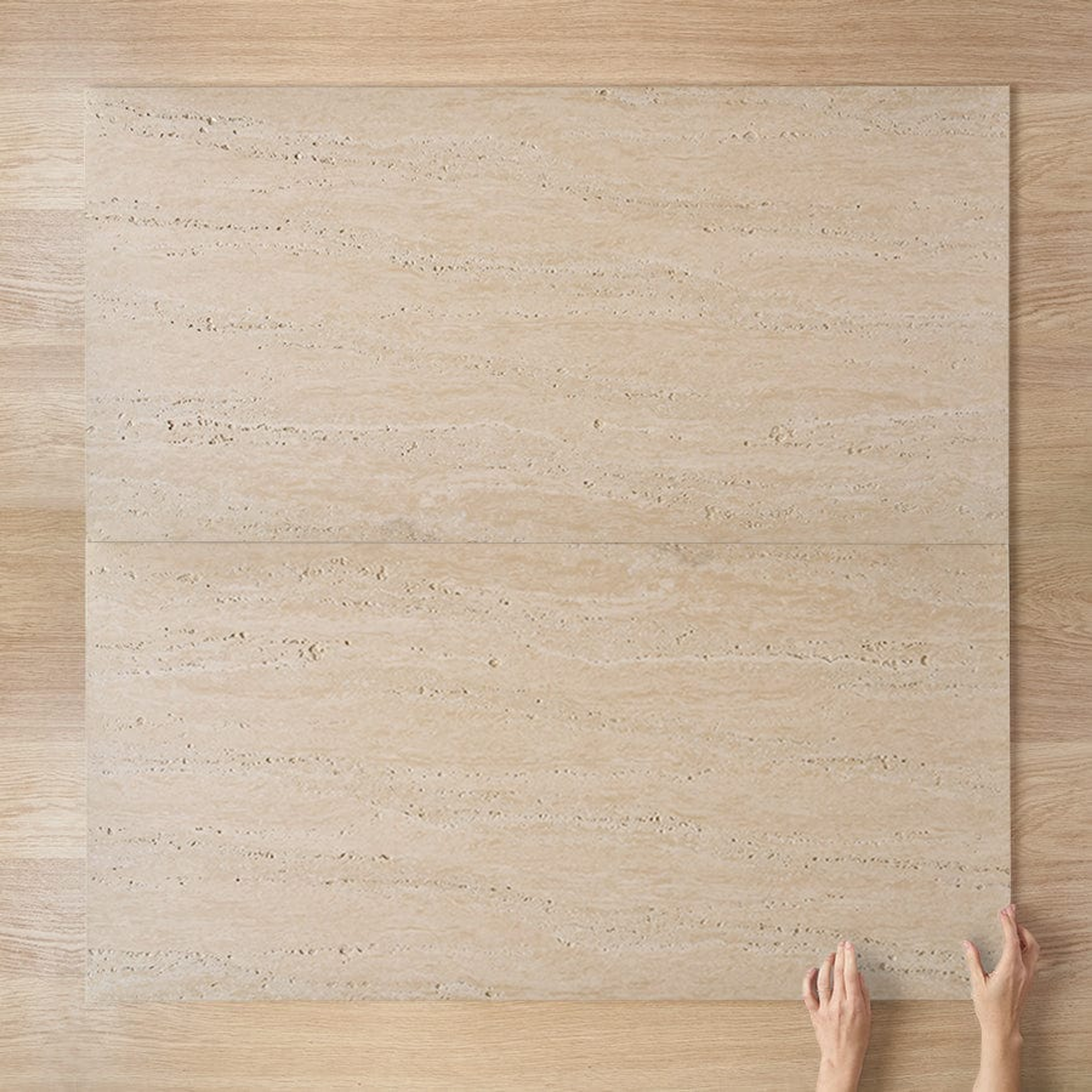 Leave Plastic On: Grout only the joints between tiles, preserving air pockets/voids. This replicates the look of natural travertine.