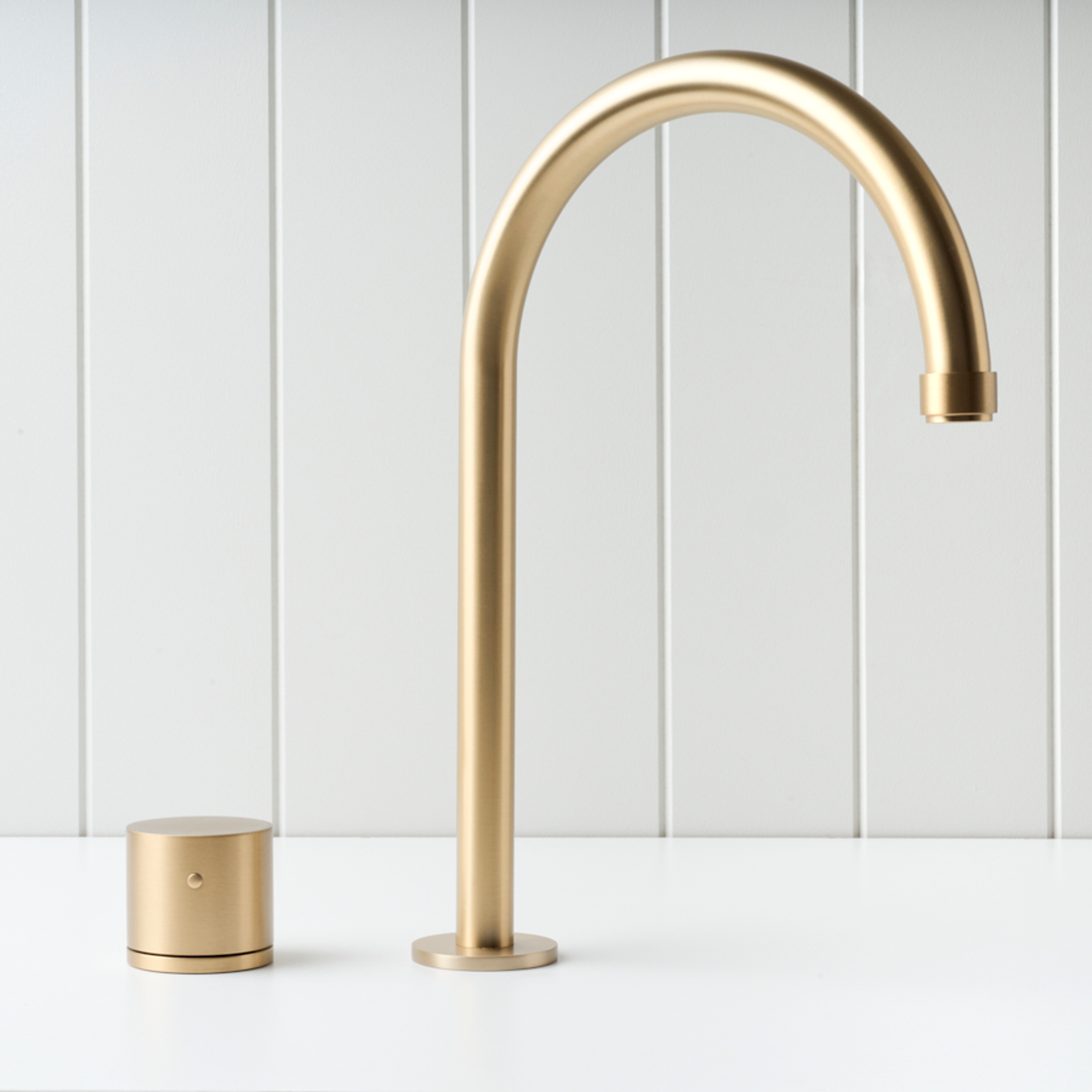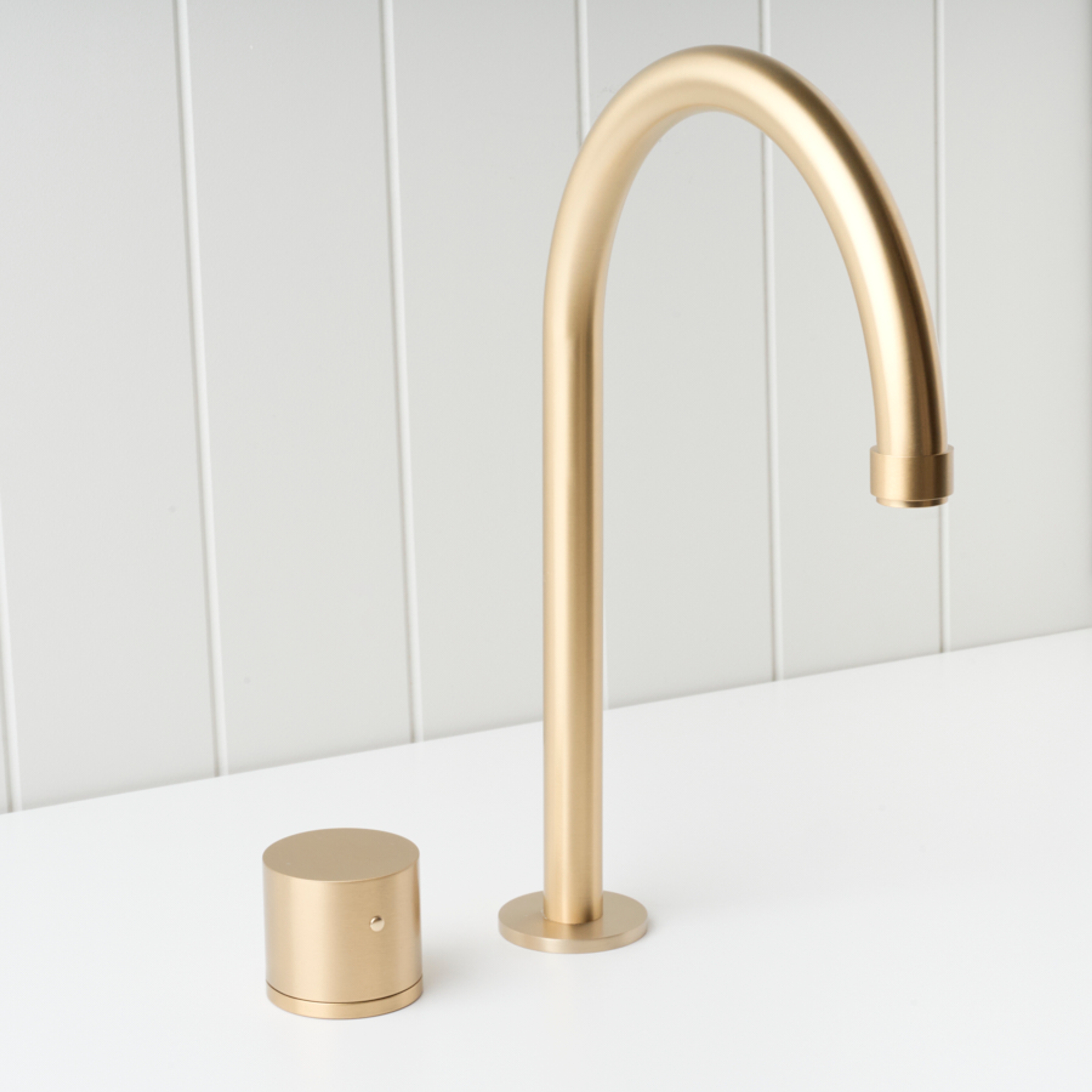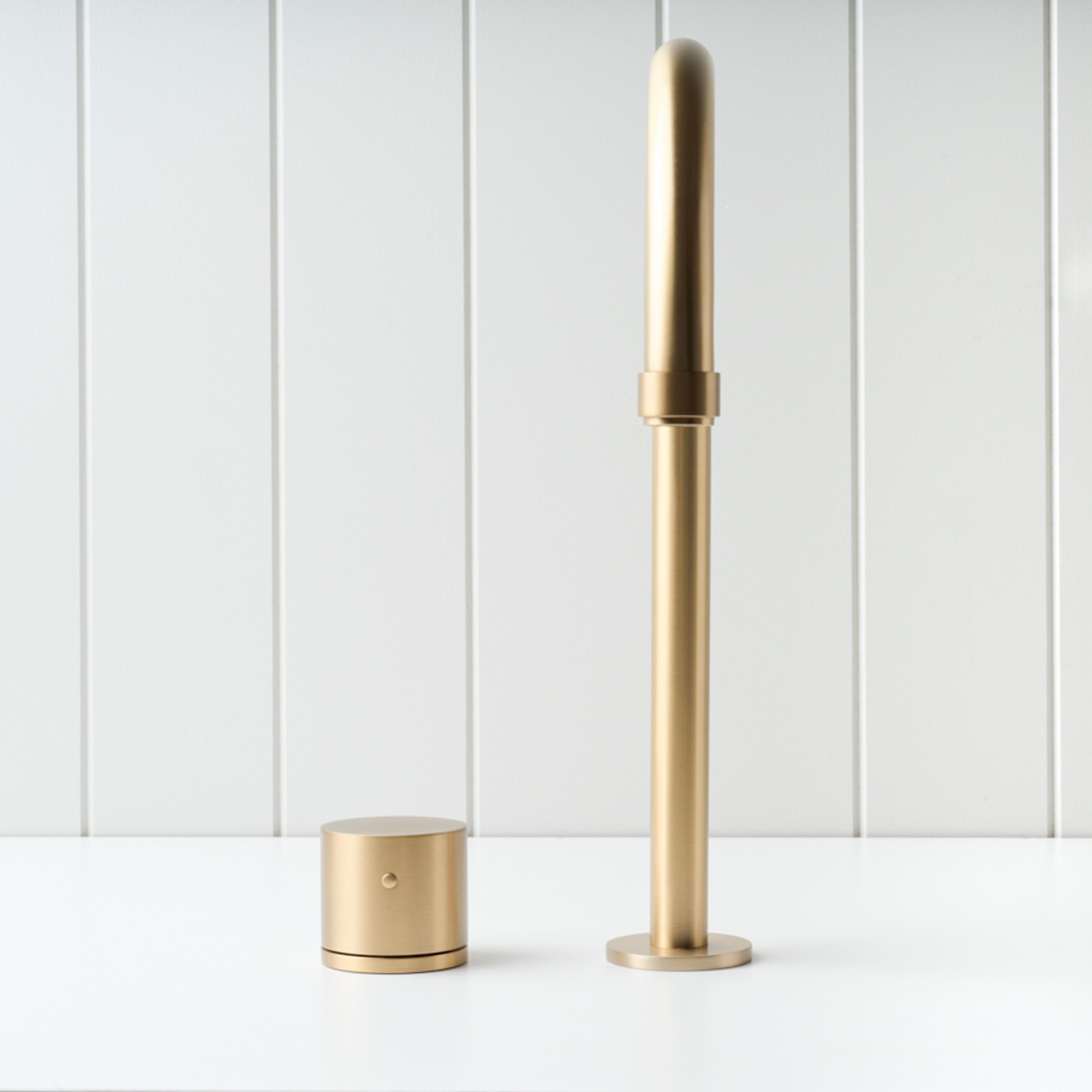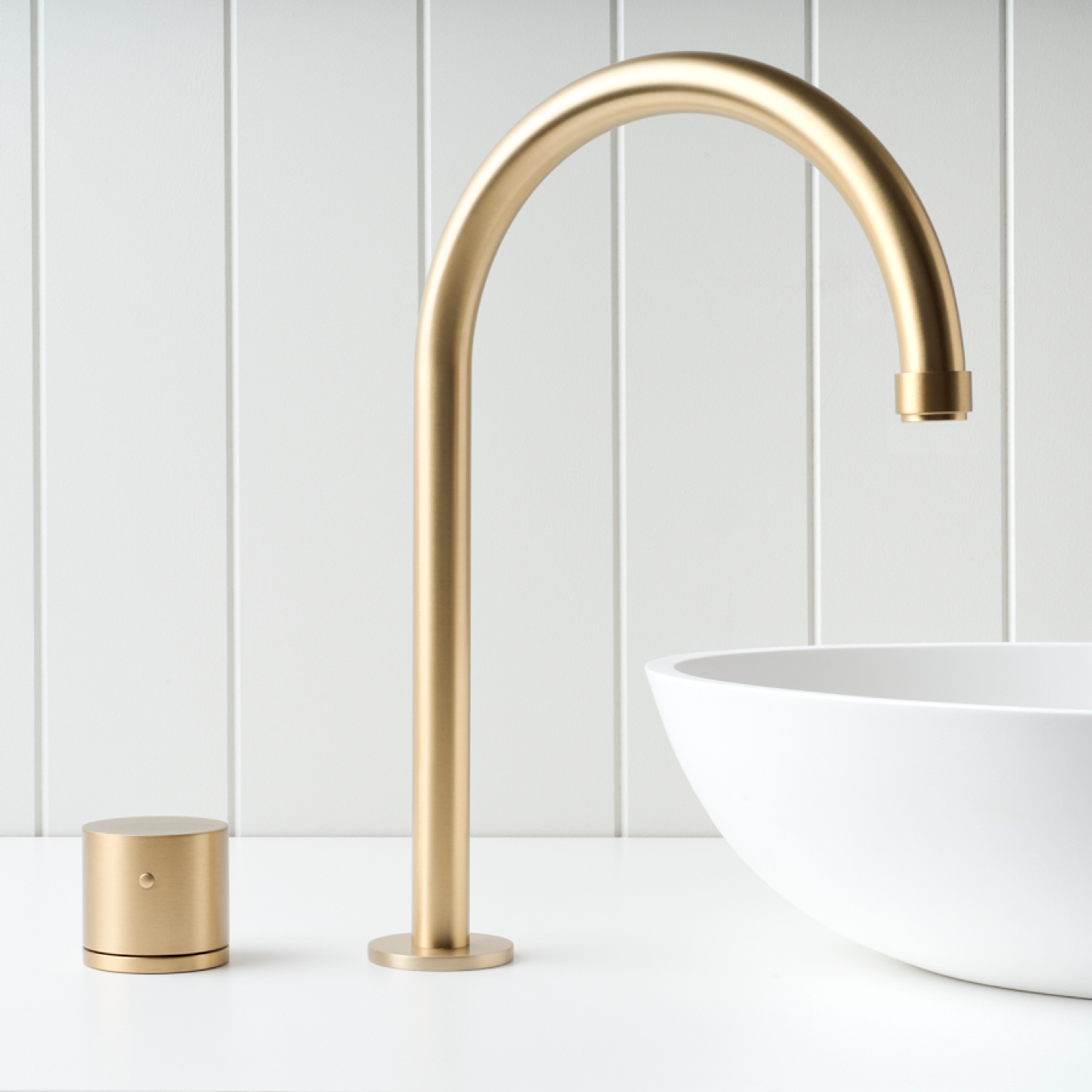 The Melbourne Basin Spout + Benchtop Progressive Mixer in Brushed Brass combines sleek design with reliable functionality, making it a standout in any bathroom setting. This tapware offers smooth water flow and easy control, ensuring a seamless experience every time. Built to last, it provides a dependable solution for modern bathrooms.