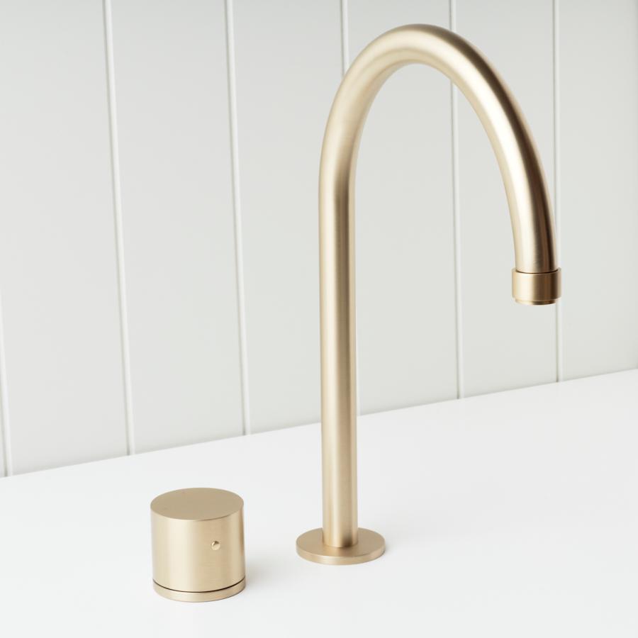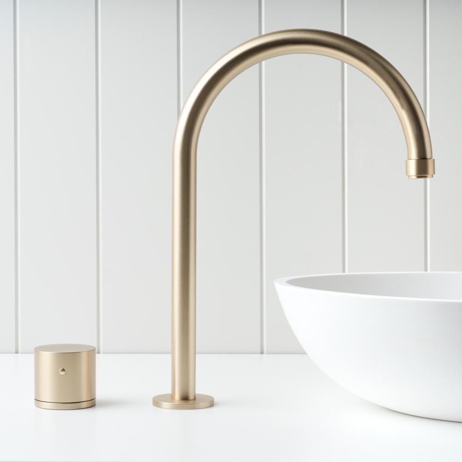 The Melbourne Basin Spout and Benchtop Progressive Mixer in Warm Brushed Nickel brings a touch of modern functionality to your bathroom. This tapware offers precise water pressure and temperature control and reliable performance, ensuring a seamless experience every time you use it. Its warm brushed nickel finish adds a refined touch, making it a practical choice for any contemporary space.