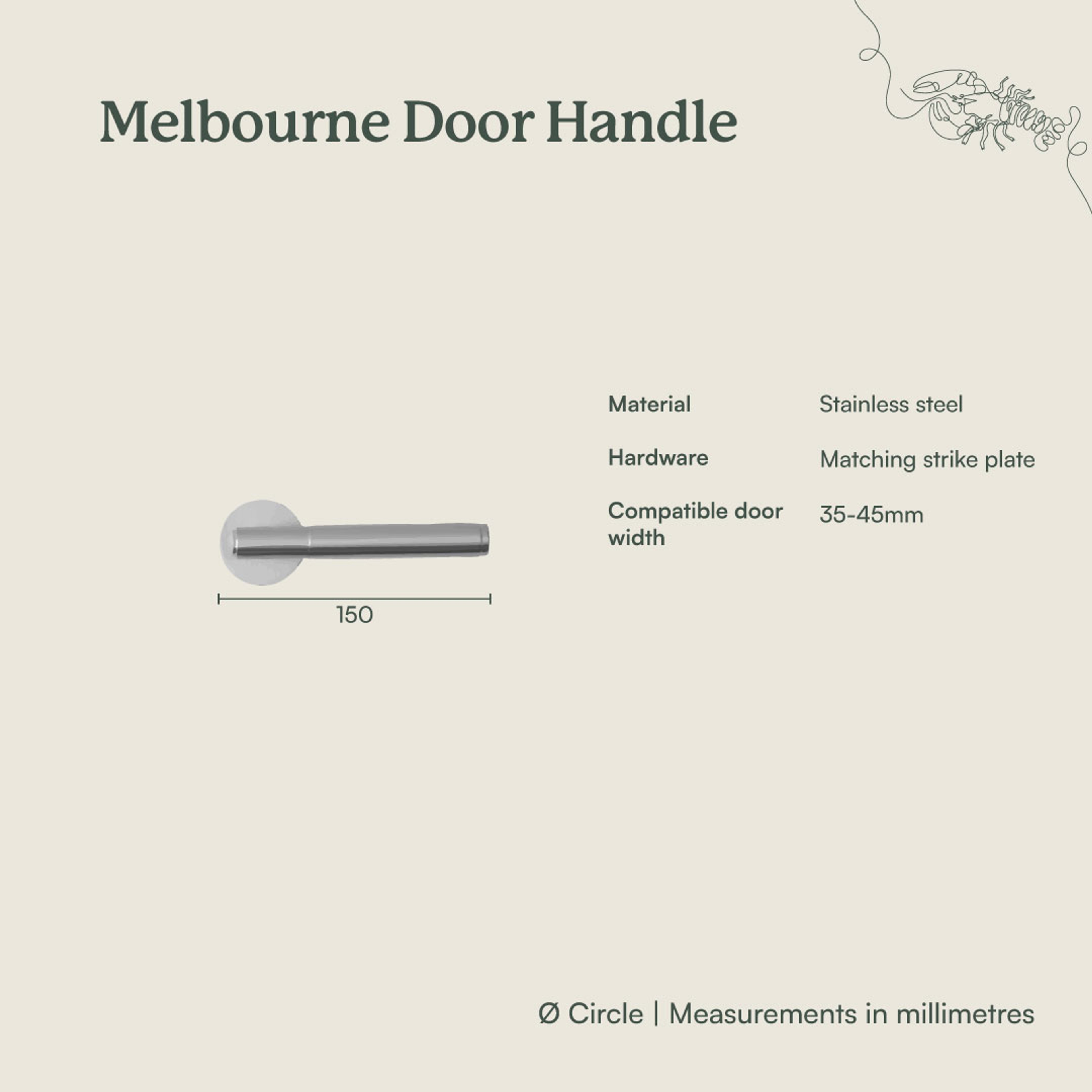 The Melbourne Door Handle in Warm Brushed Nickel pairs understated elegance with modern simplicity. Its smooth, brushed surface and concealed fittings create a polished, cohesive look. Designed to complement a wide range of interiors, it’s a refined finishing touch for any room.
