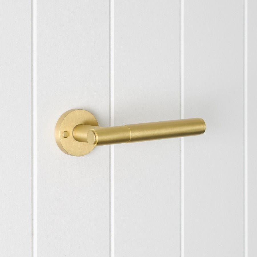 The Melbourne Door Handle with Lock in Brushed Brass adds a touch of understated luxury to any space. Its soft, golden tone and concealed fittings create a refined, modern look that complements a variety of finishes. Designed for everyday use with both form and function in mind.