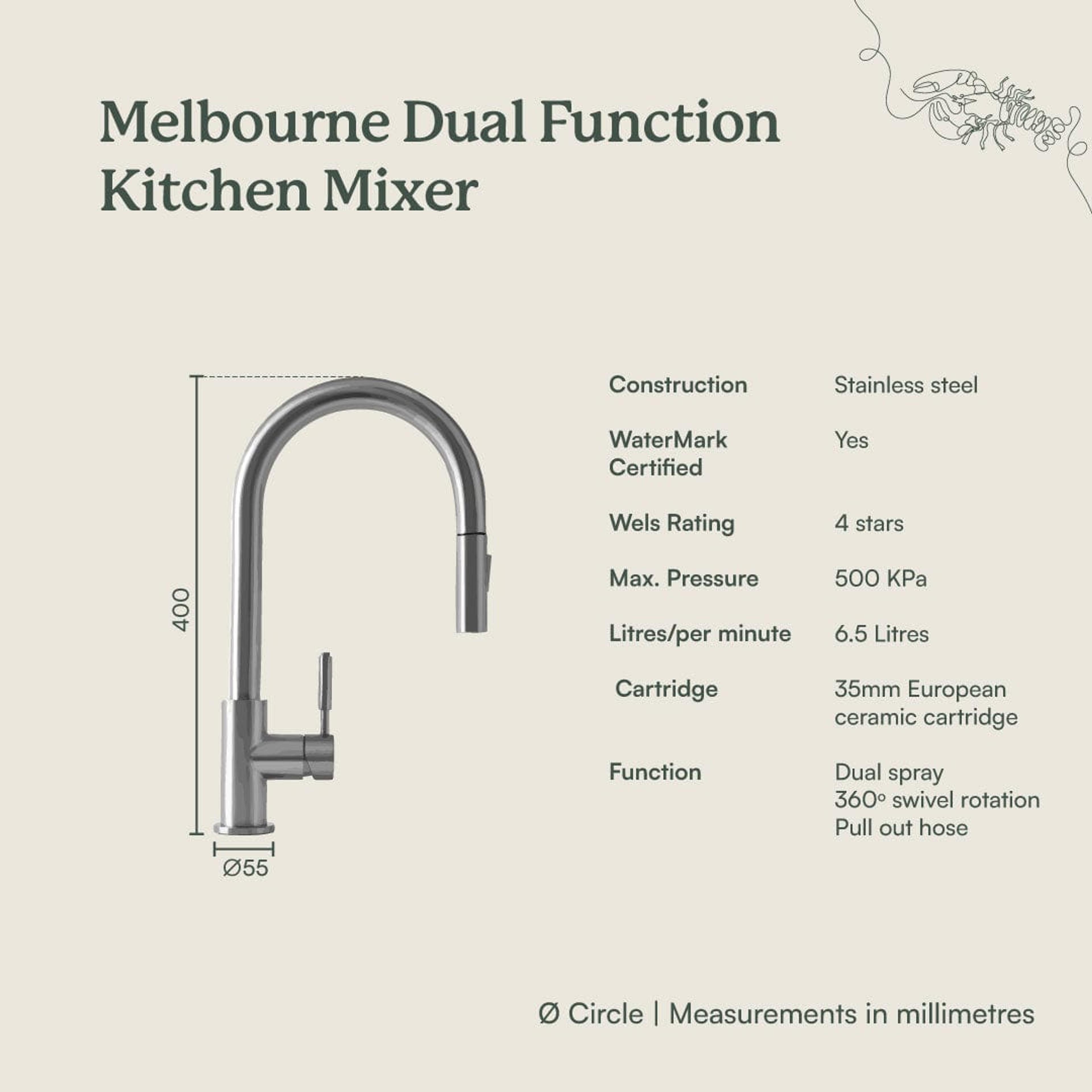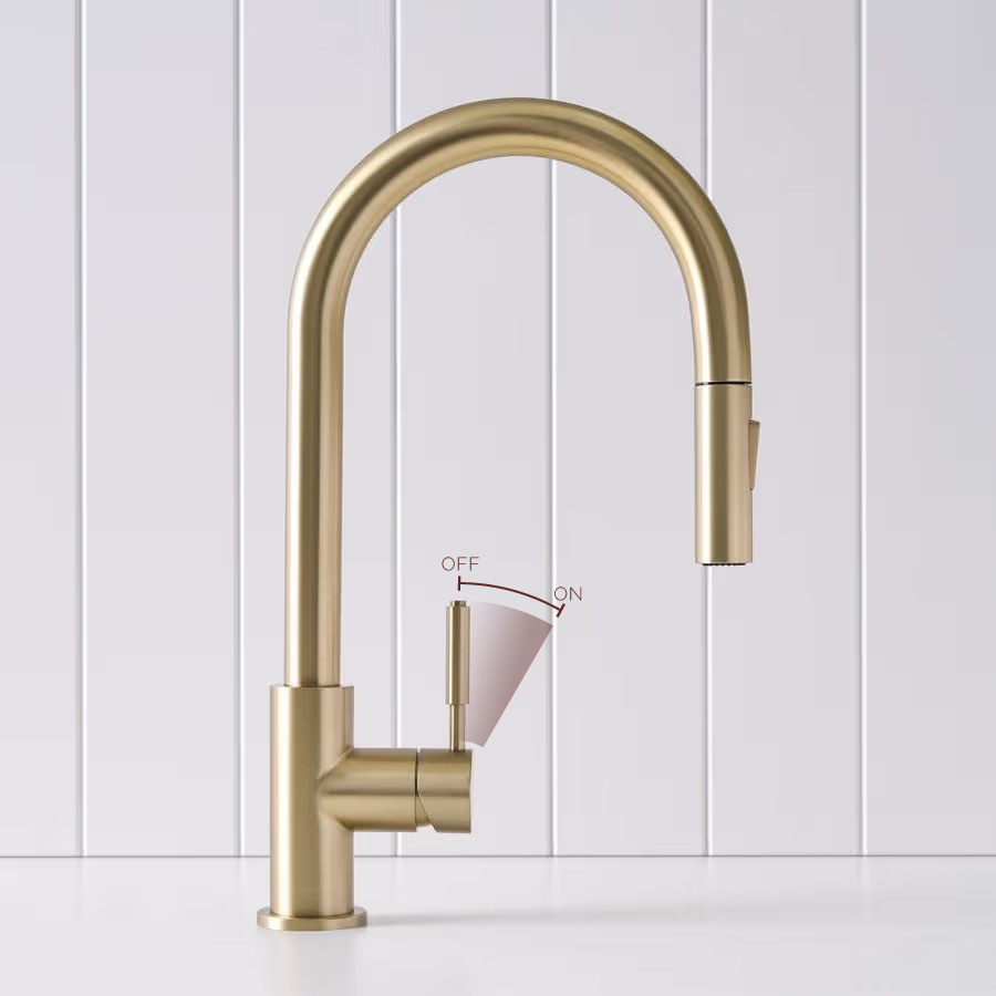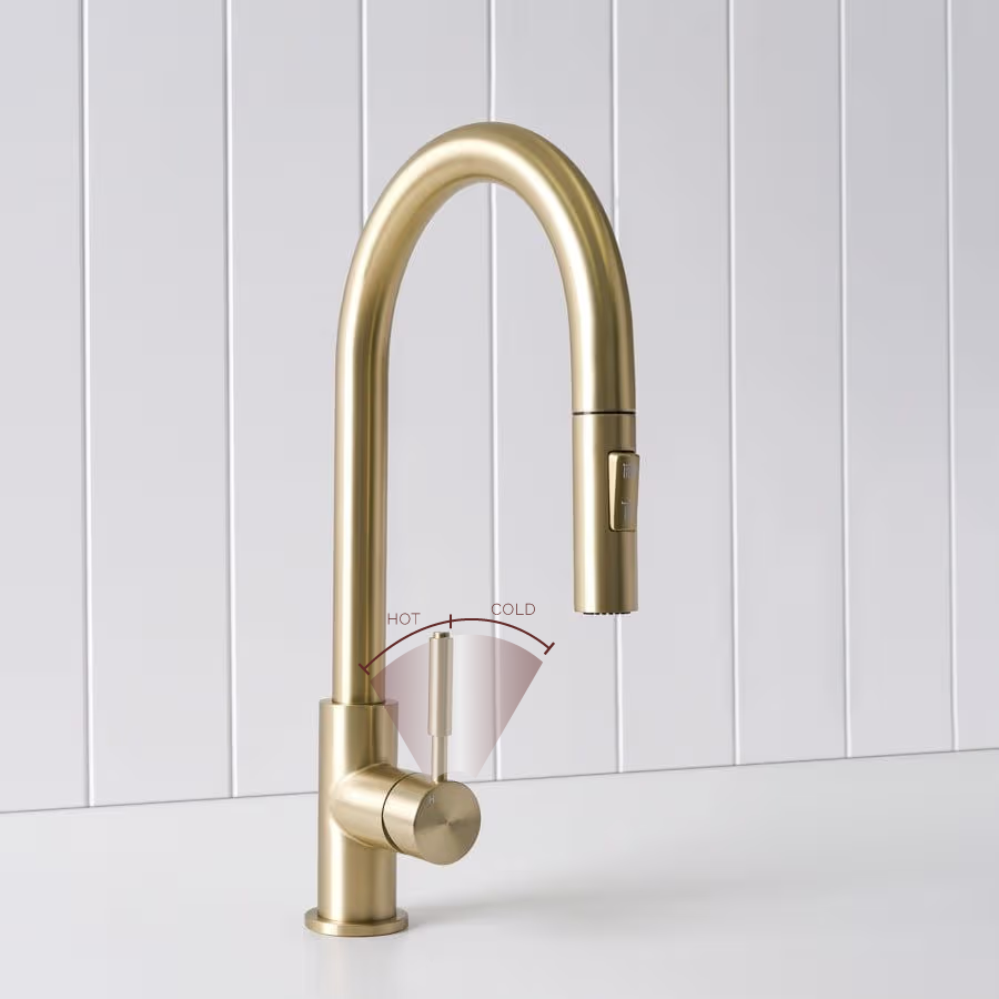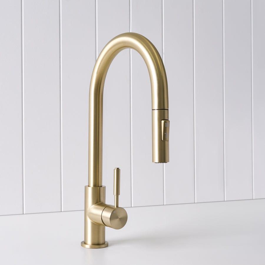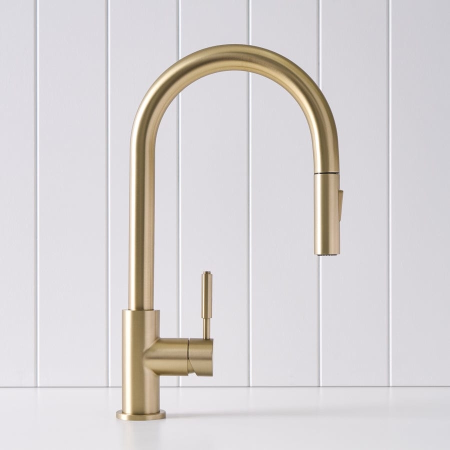 The Melbourne Dual Function Kitchen Mixer in Warm Brushed Nickel brings understated sophistication to your kitchen. Its soft metallic tone and smooth lines pair beautifully with natural surfaces. With a pull-out hose and two spray functions, it’s the perfect mix of form and everyday function.