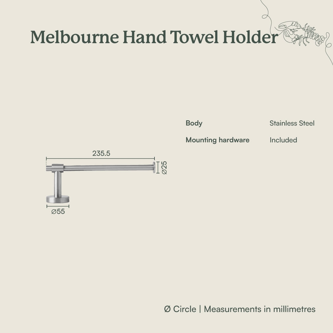 The Melbourne Hand Towel Holder in Warm Brushed Nickel is designed to keep your everyday essentials within easy reach, making it perfect for placing beside a vanity or basin in a bathroom or powder room. Sized specifically for a hand towel, it offers a simple and practical way to keep your space tidy and organised.