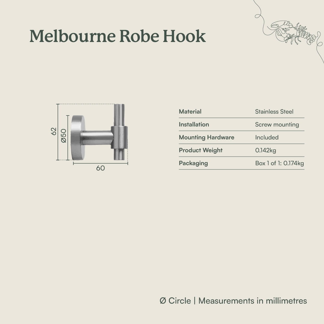 The Melbourne Robe Hook in Warm Brushed Nickel is a practical addition to any bathroom, offering a reliable and easy-fit solution. Its warm brushed nickel finish adds a touch of modern refinement, seamlessly fitting the style of any space. Designed for durability and ease of use, this robe hook ensures a tidy and functional space.
