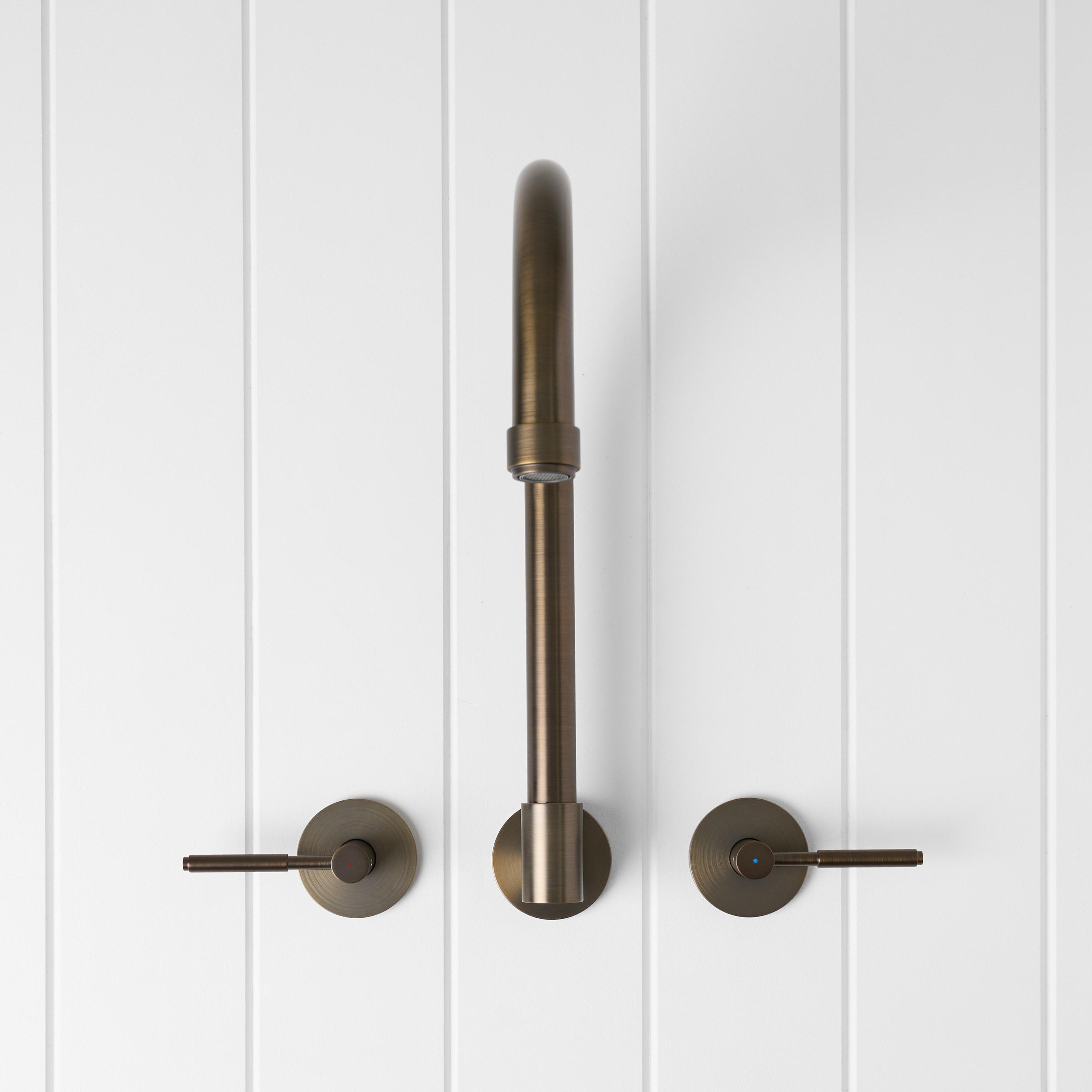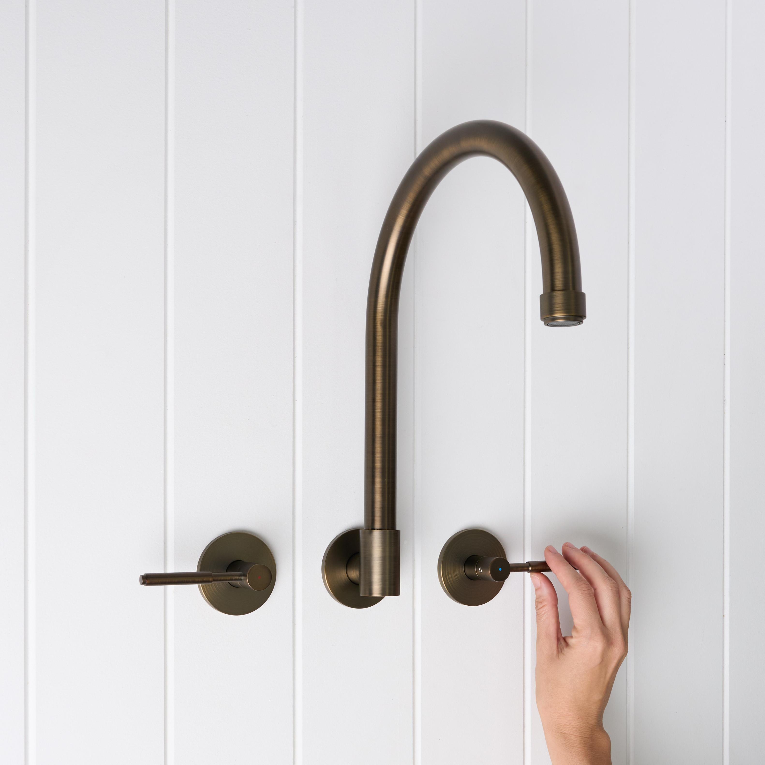 The Melbourne Swivel Spout + Double Handle Taps Antique Brass combines a soft gooseneck profile with practical flexibility, offering a refined solution for compact spaces. Wall-mounted and designed to swivel up to 180 degrees, it allows you to adjust the direction of the water flow to suit your setup.