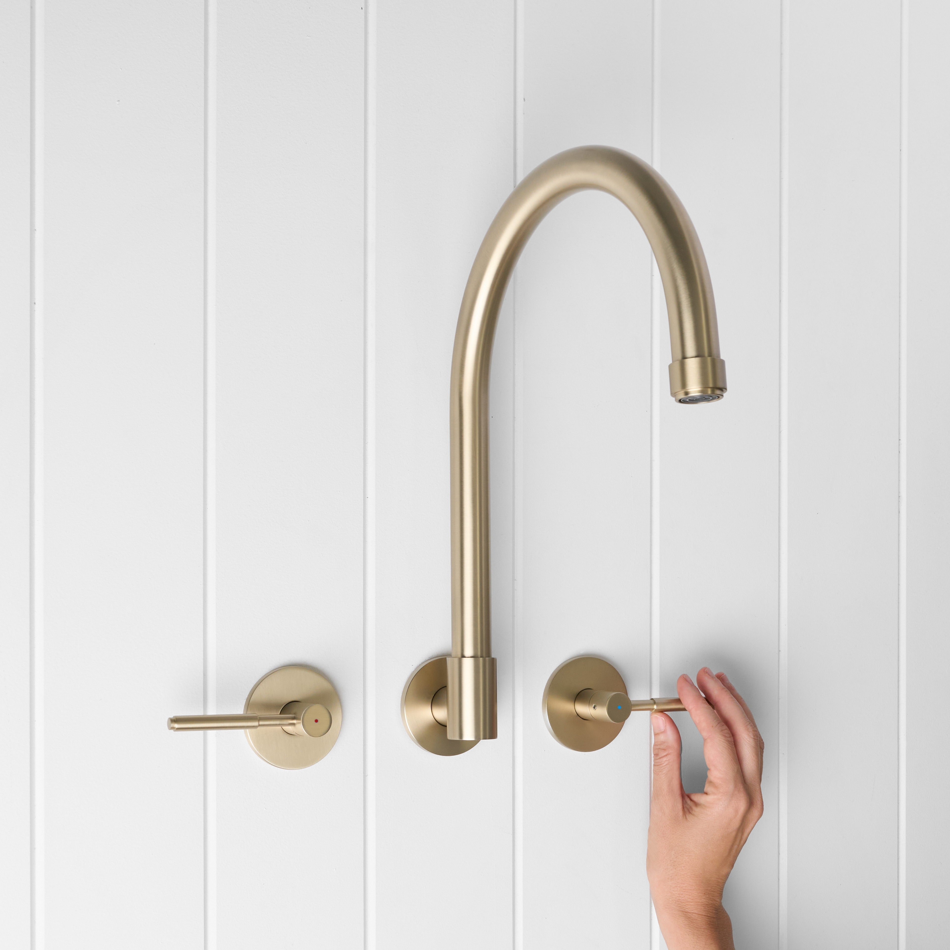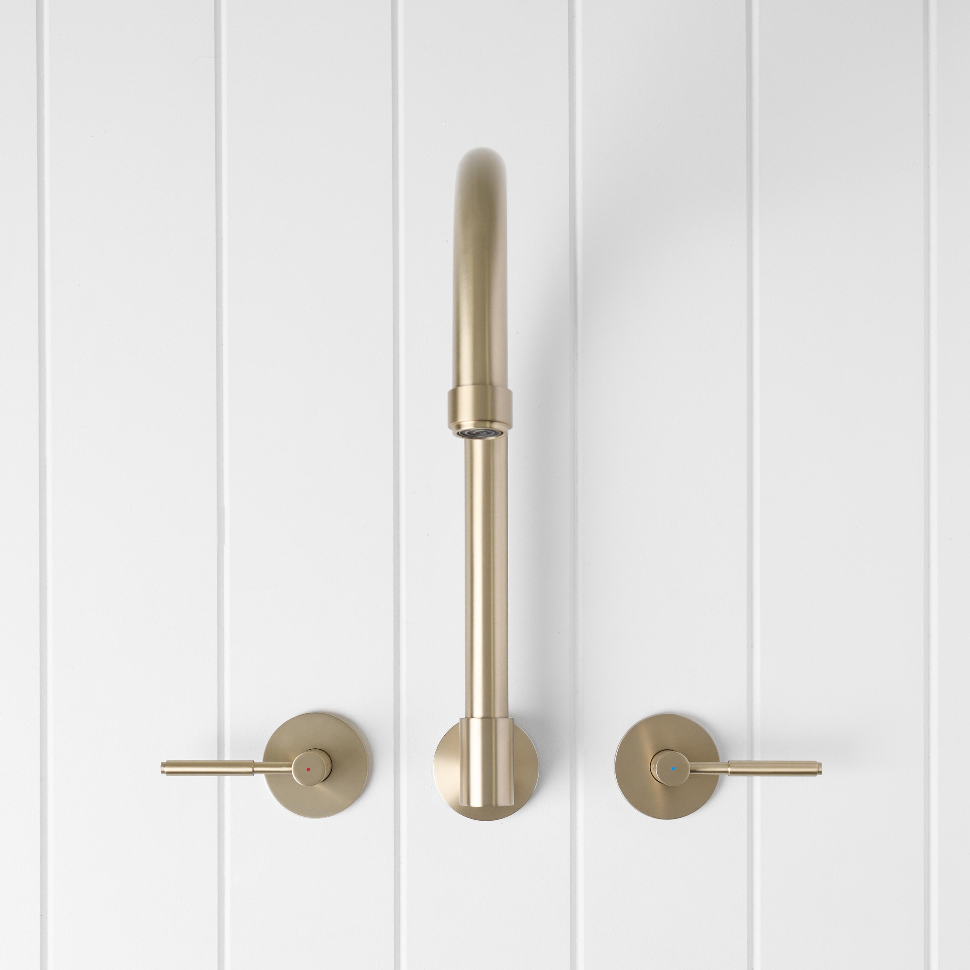 The Melbourne Swivel Spout + Double Handle Taps Warm Brushed Nickel combines a soft gooseneck profile with practical flexibility, offering a refined solution for compact spaces. Wall-mounted and designed to swivel up to 180 degrees, it allows you to adjust the direction of the water flow to suit your setup.