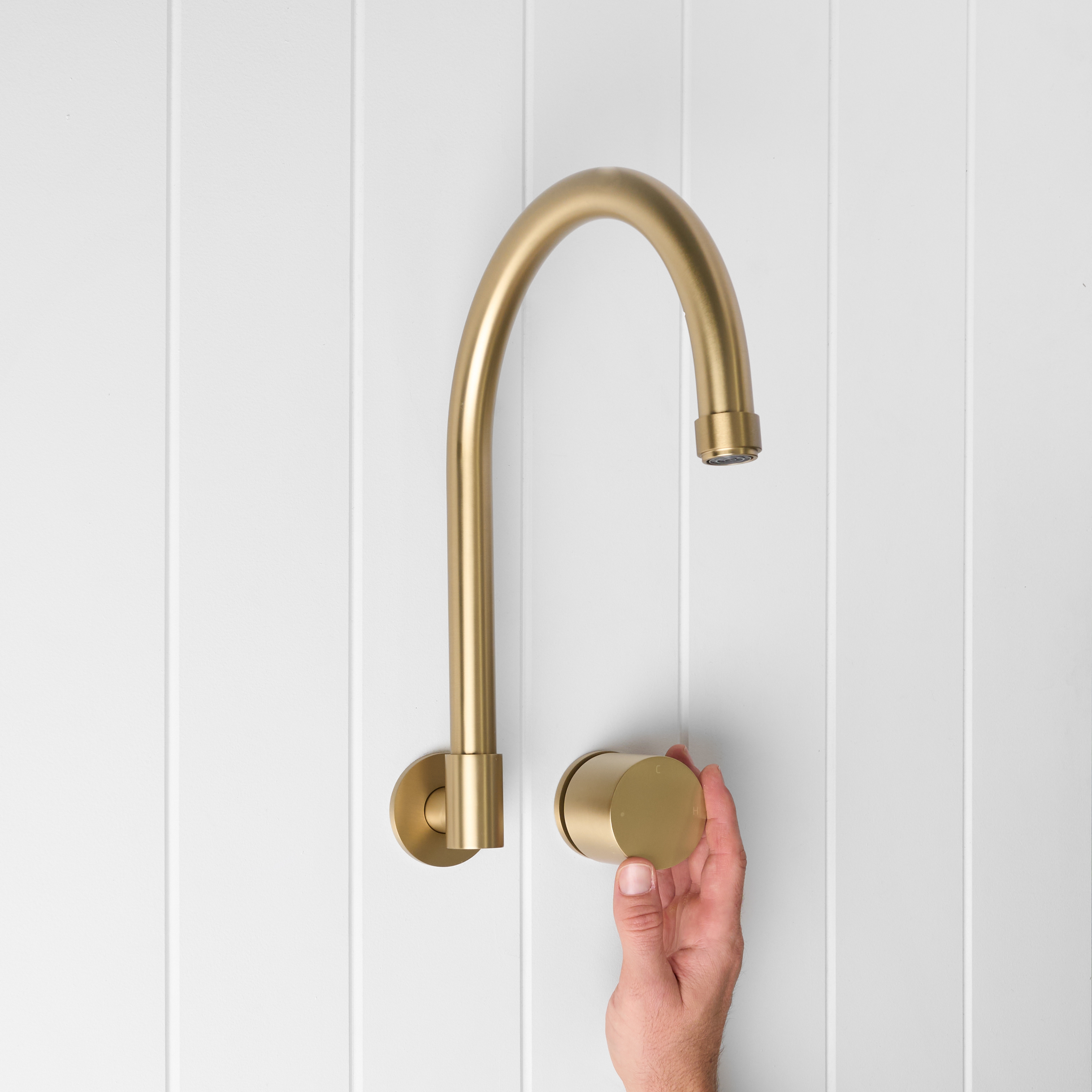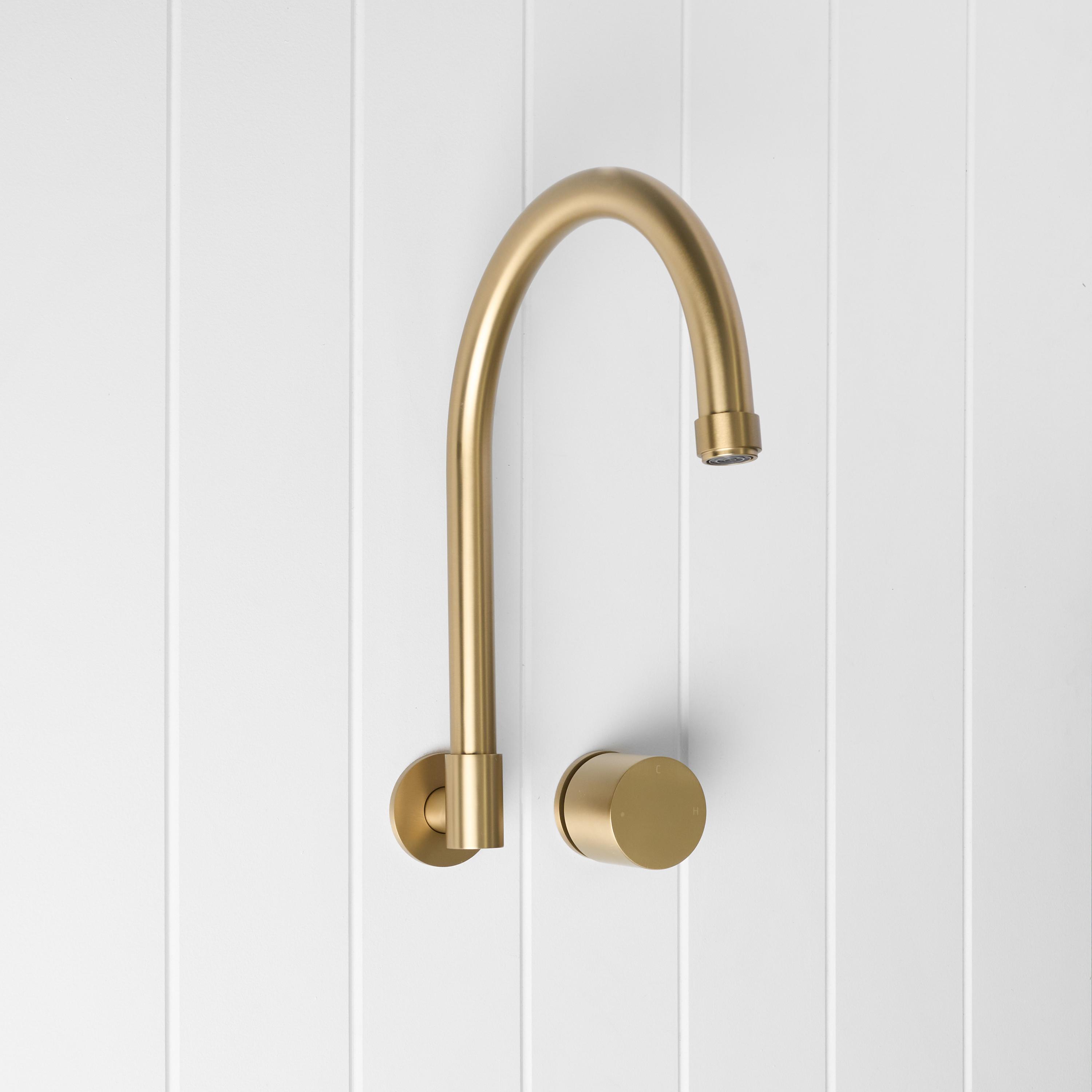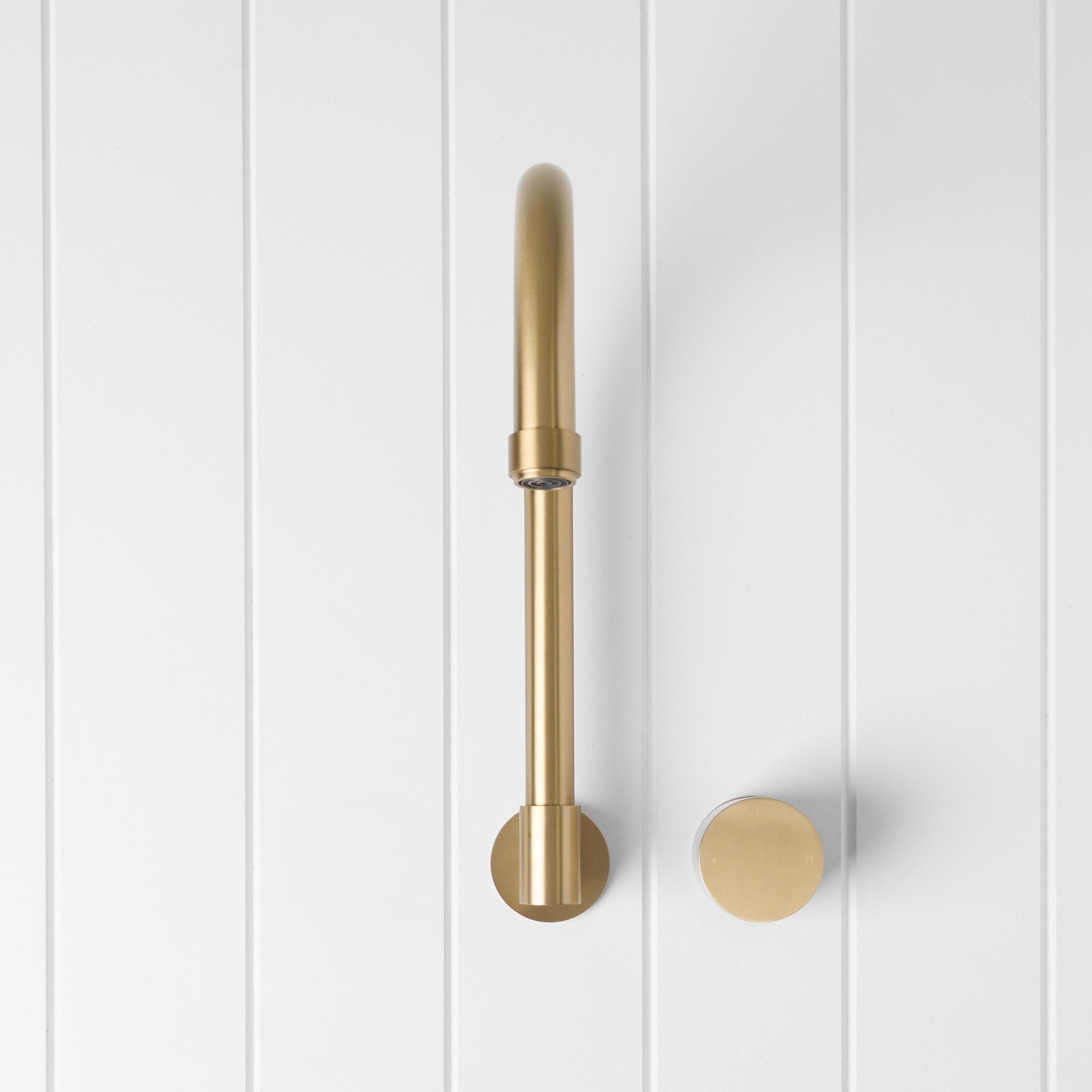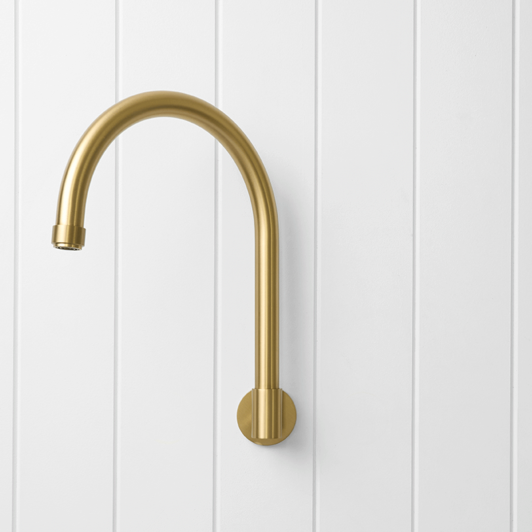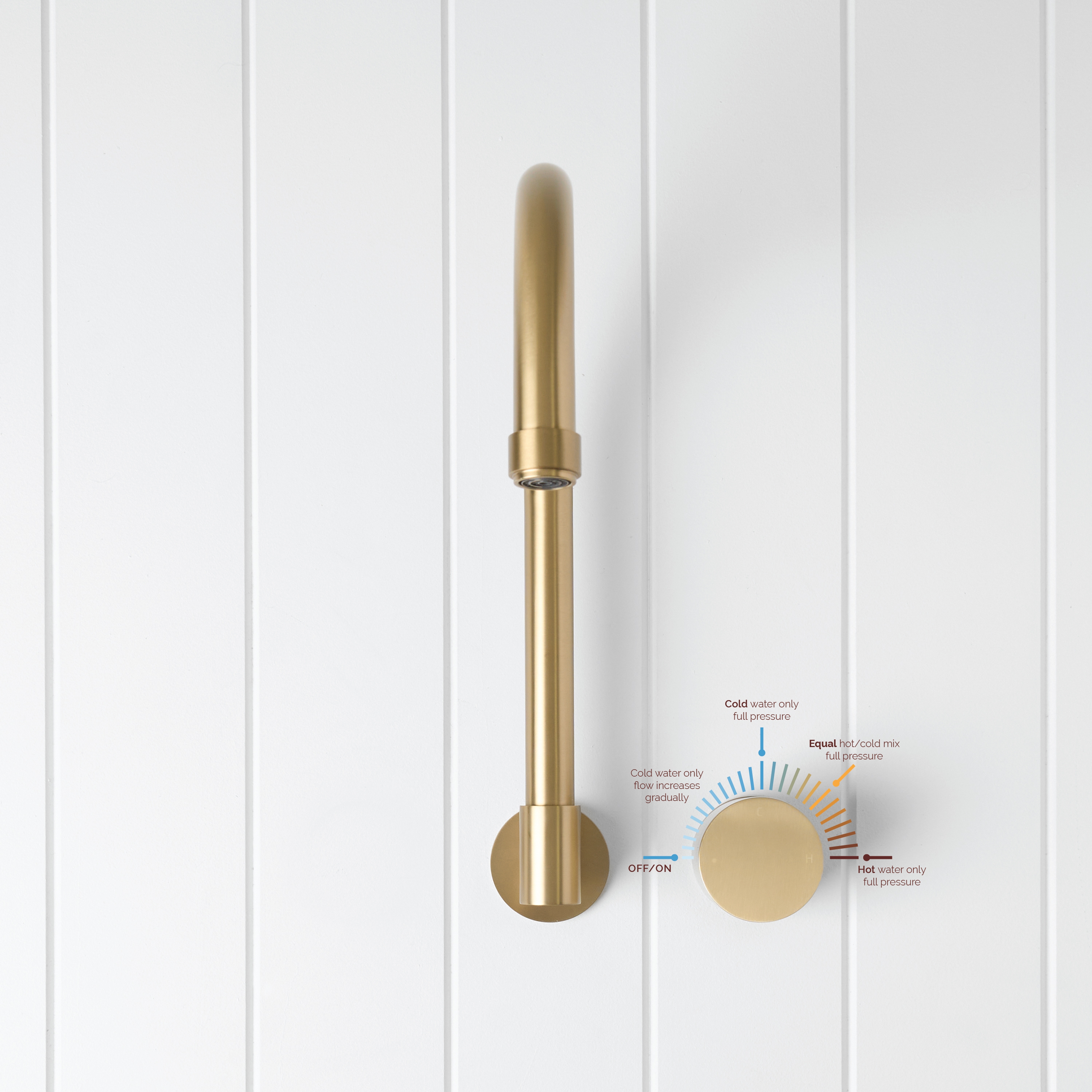 The Melbourne Swivel Spout + Progressive Mixer Brushed Brass combines a soft gooseneck profile with practical flexibility, offering a refined solution for compact spaces. Wall-mounted and designed to swivel up to 180 degrees, it allows you to adjust the direction of the water flow to suit your setup.