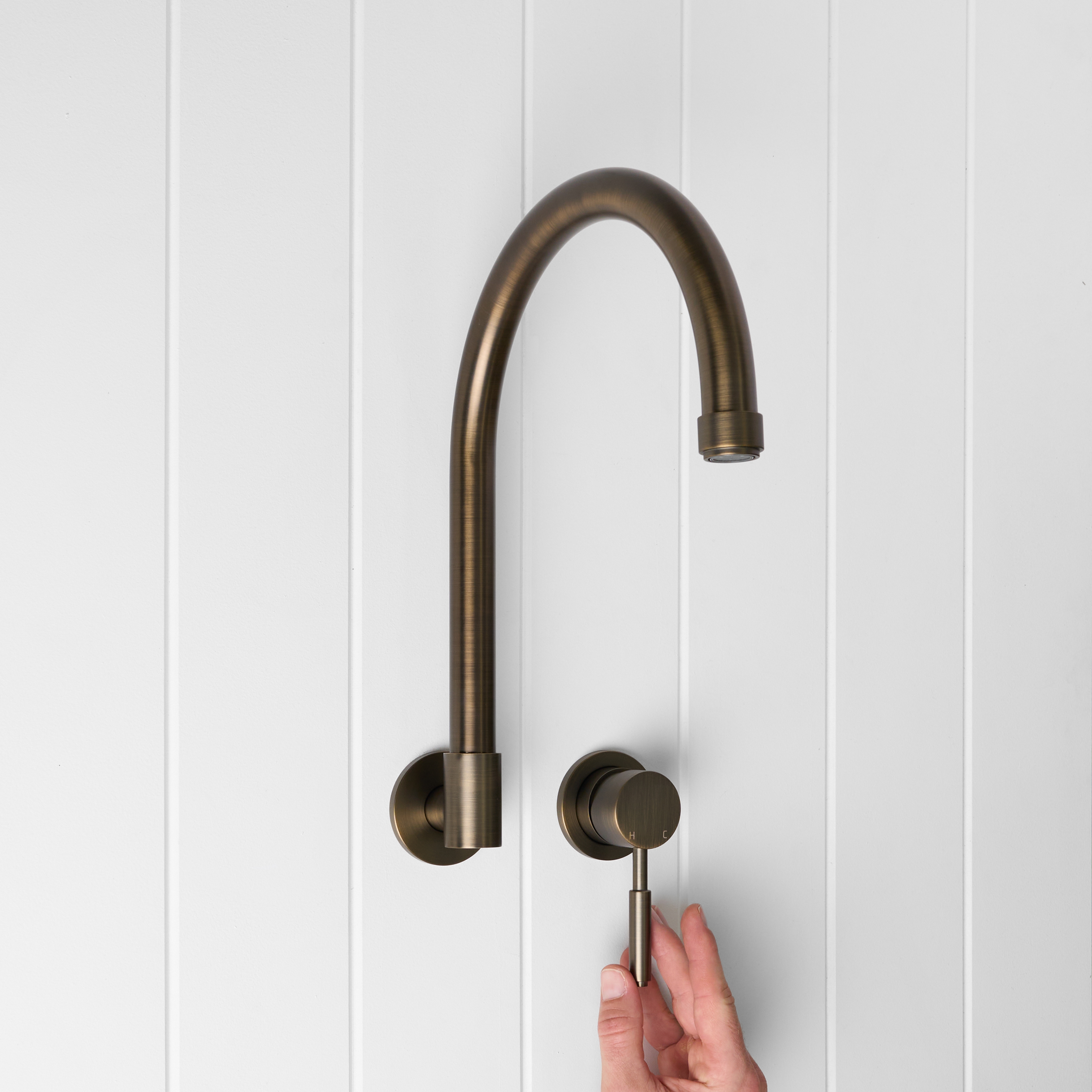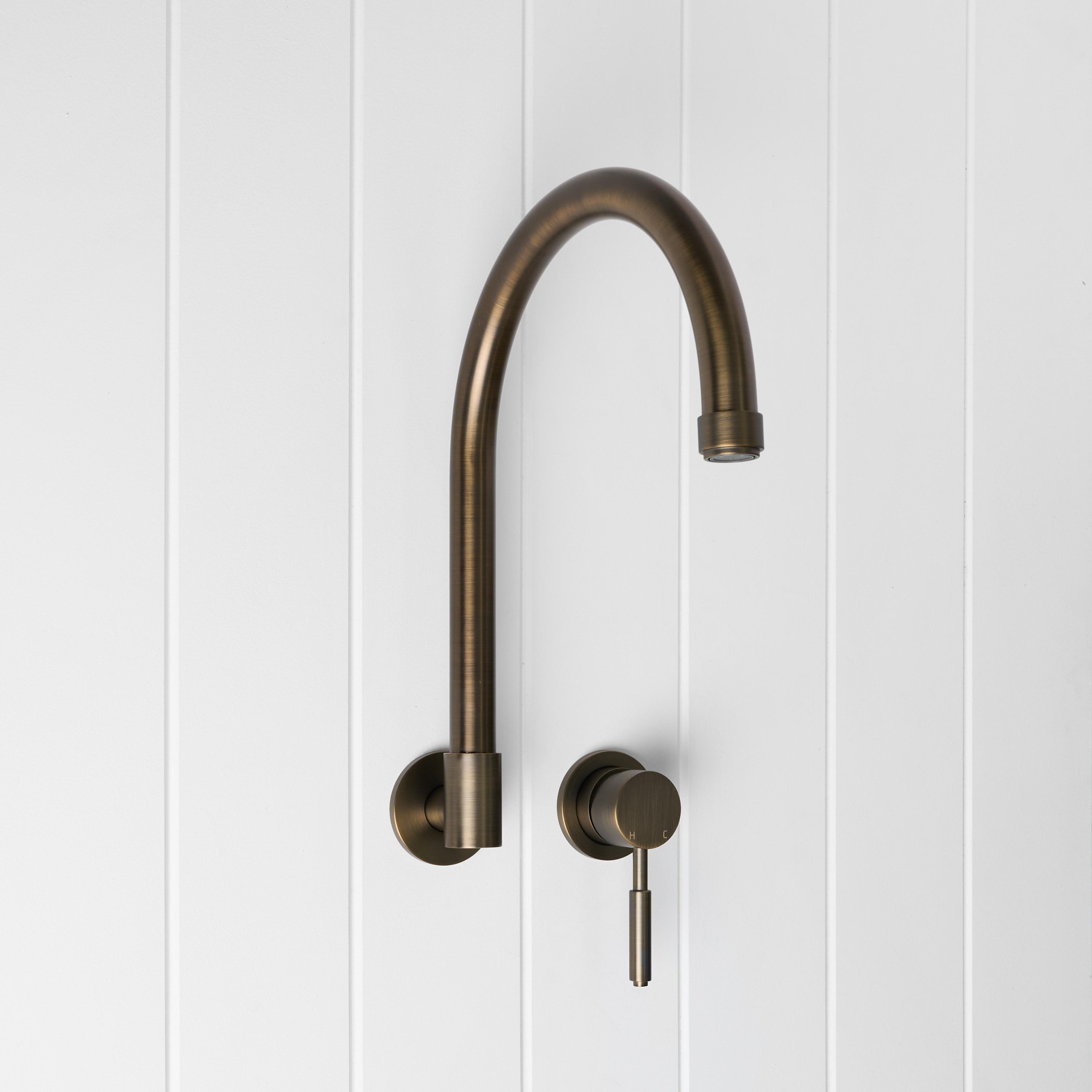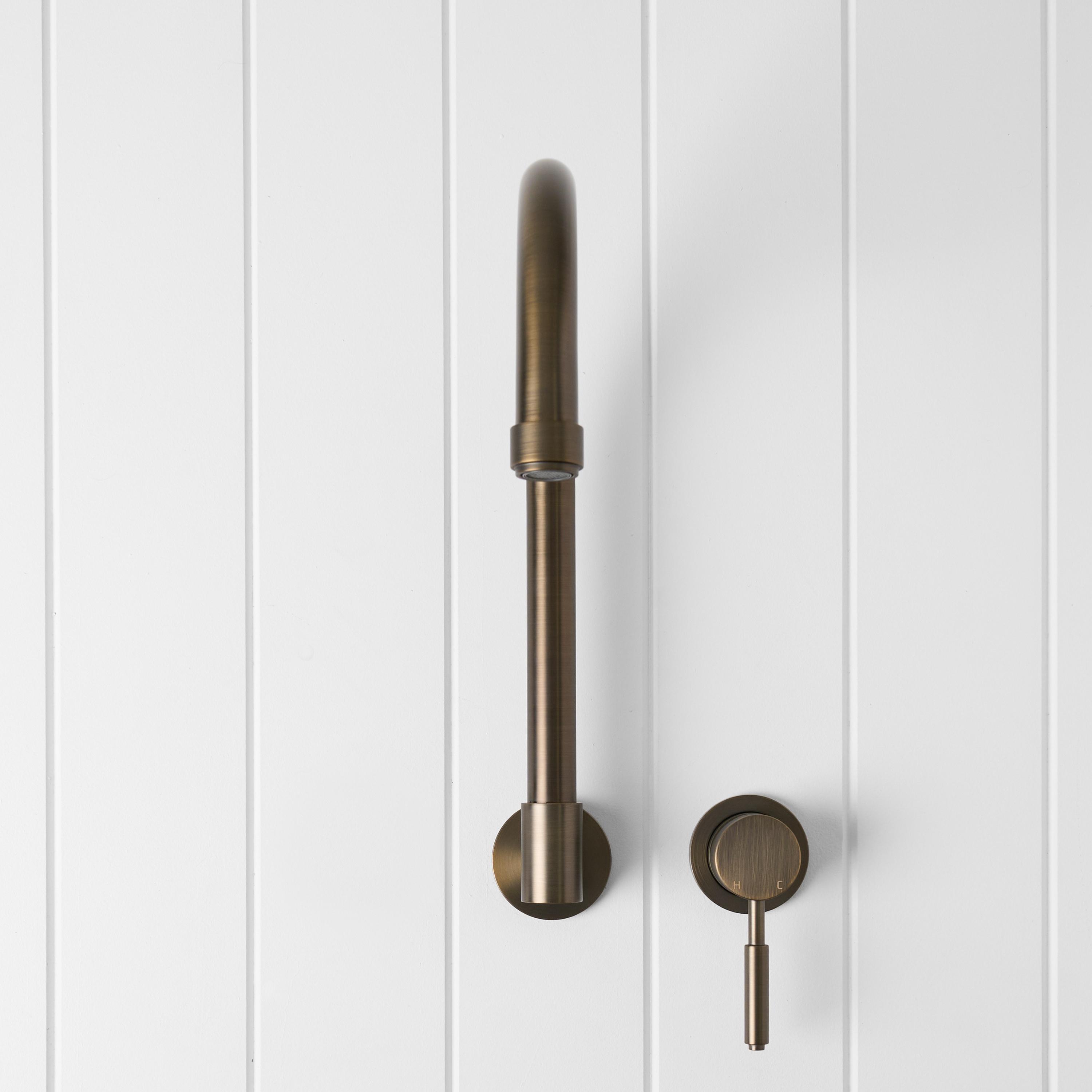The Melbourne Swivel Spout + Wall Mixer Antique Brass combines a soft gooseneck profile with practical flexibility, offering a refined solution for compact spaces. Wall-mounted and designed to swivel up to 180 degrees, it allows you to adjust the direction of the water flow to suit your setup.