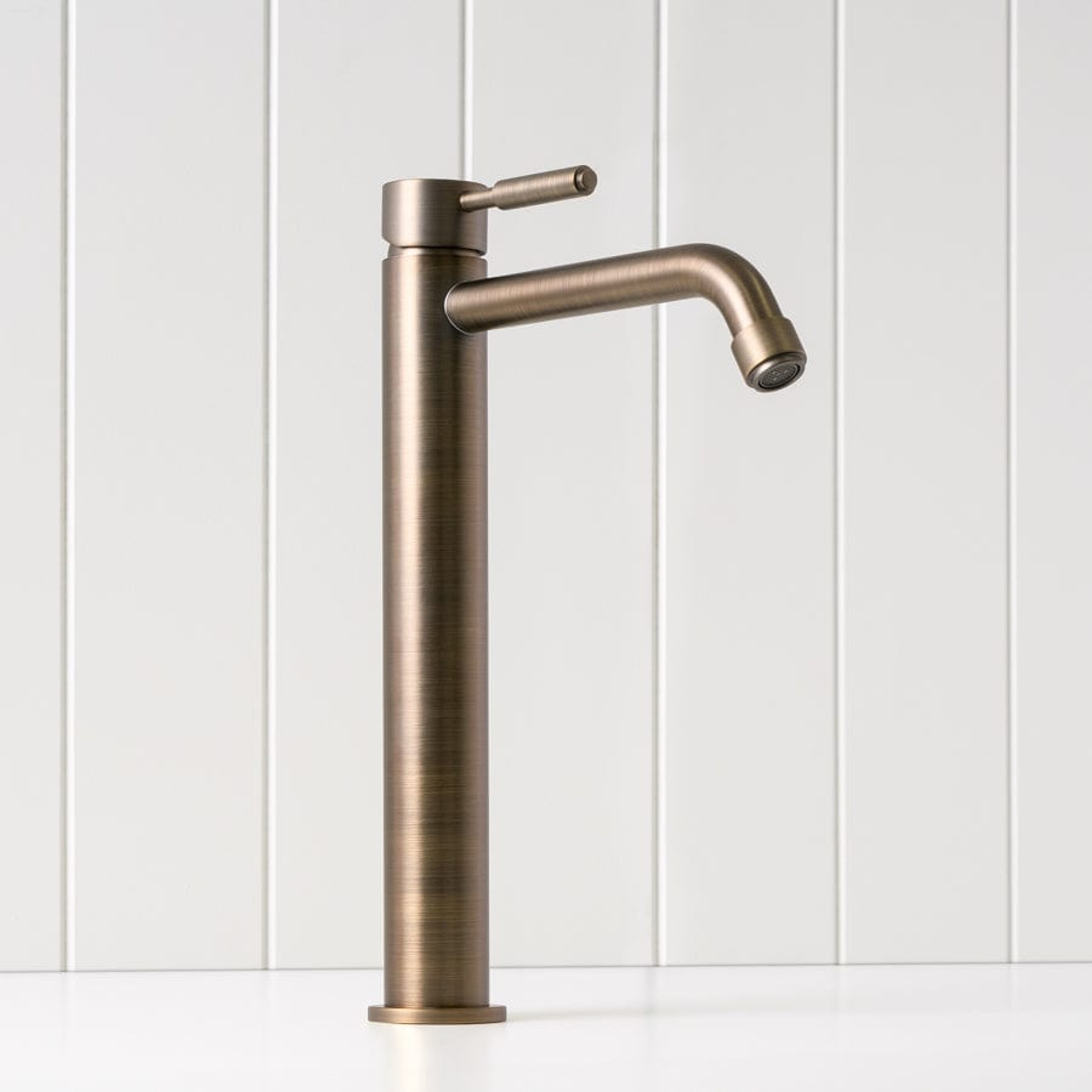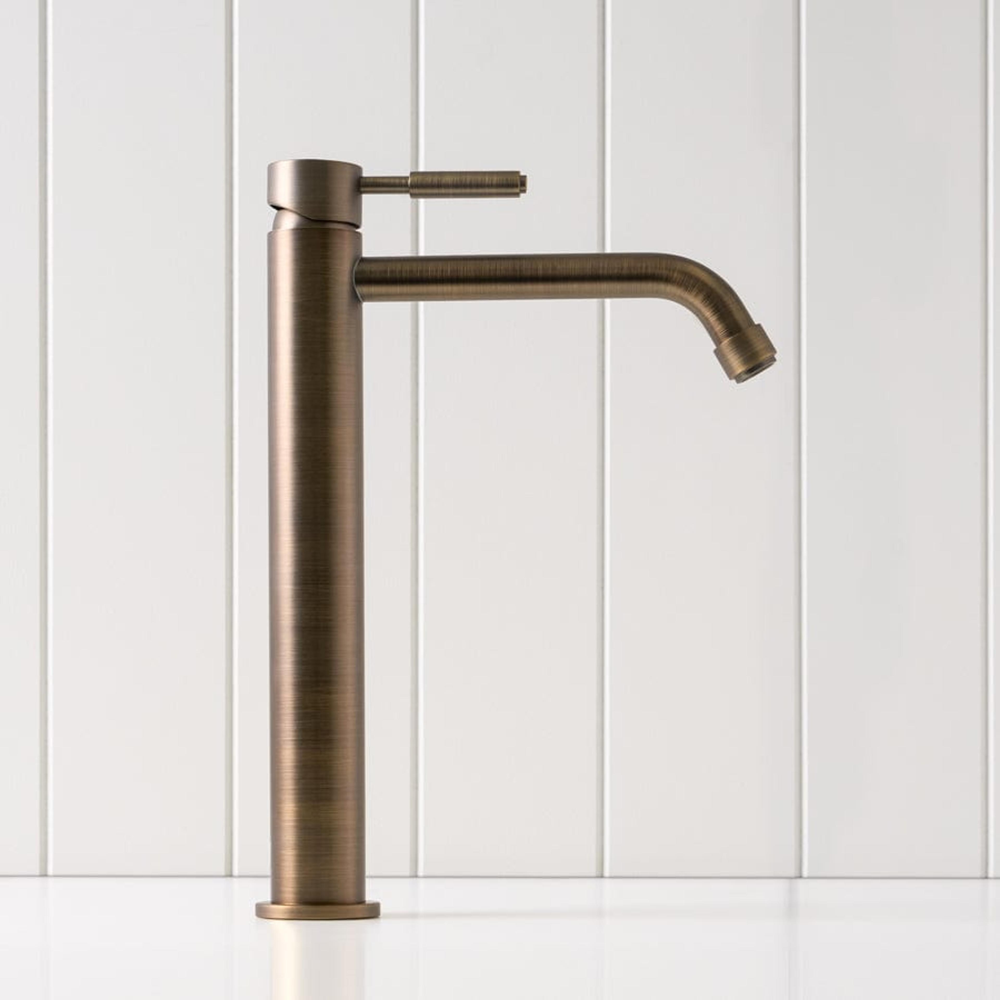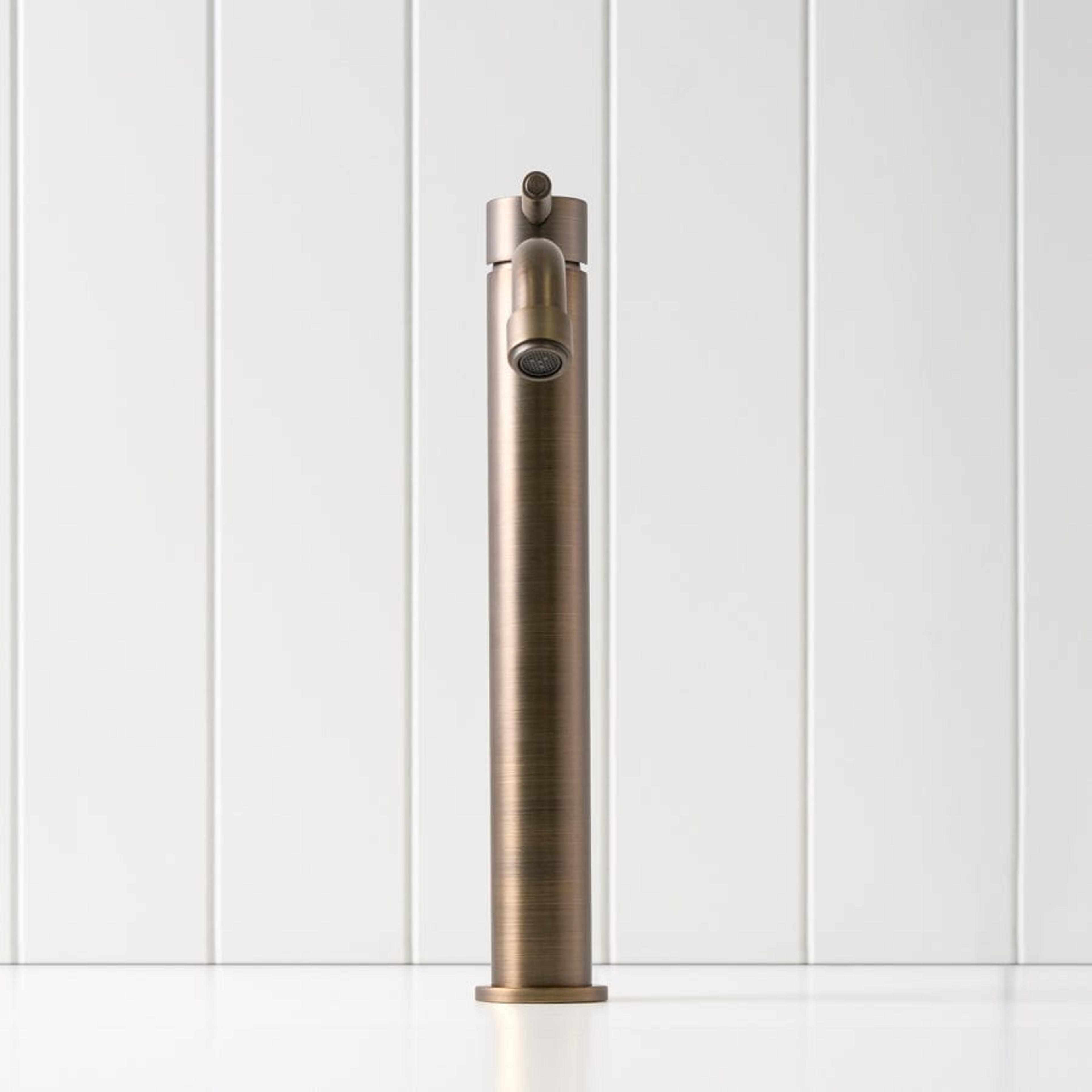 The Melbourne Tall Basin Mixer in Antique Brass combines classic warmth with modern form. Its elevated design pairs beautifully with your above counter basins, while the aged brass finish adds depth and texture to the space. Smooth to use and built to last, a timeless detail with everyday function.