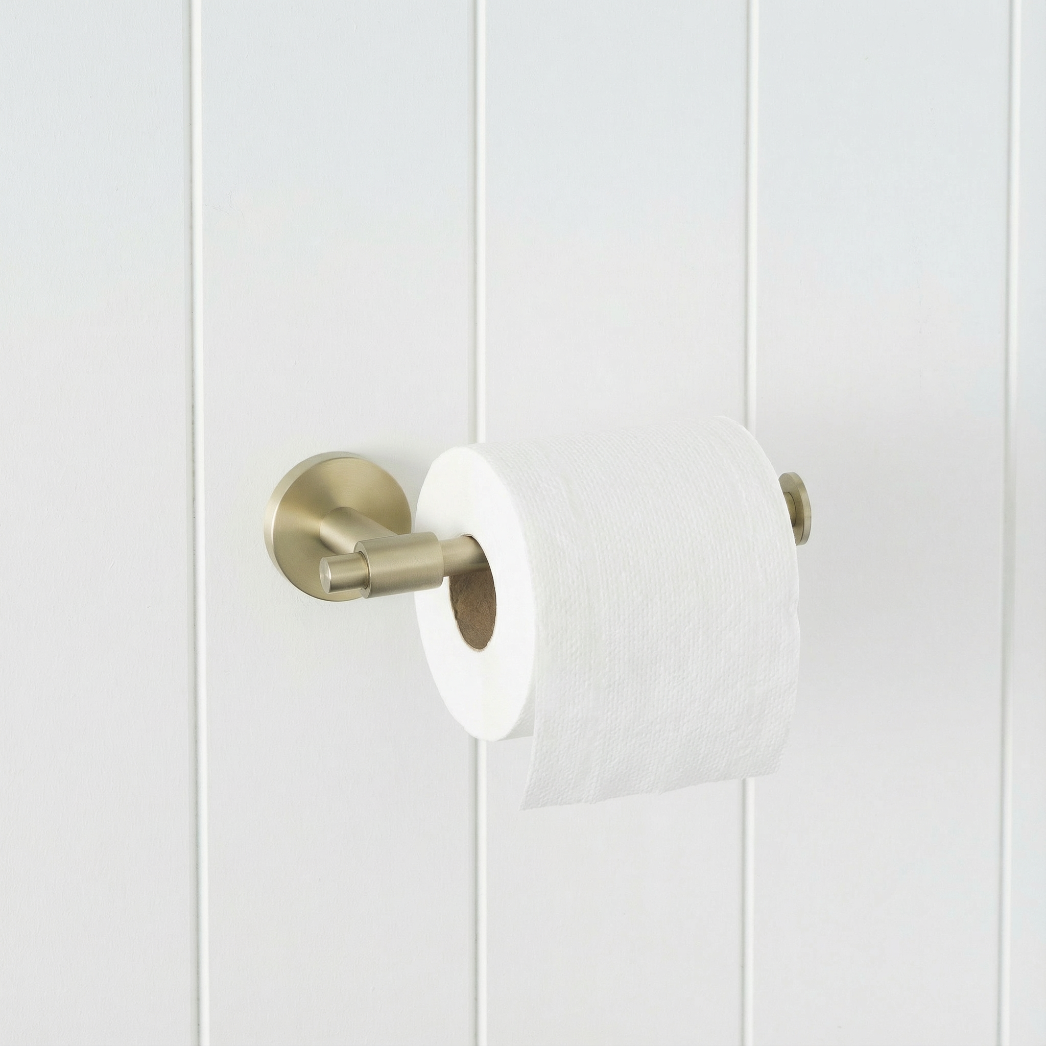 The Melbourne Toilet Roll Holder in Warm Brushed Nickel brings quiet sophistication to your bathroom. Its soft metallic finish complements both light and dark surfaces, while the clean lines create a calm, modern aesthetic. Simple, refined, and built to last.