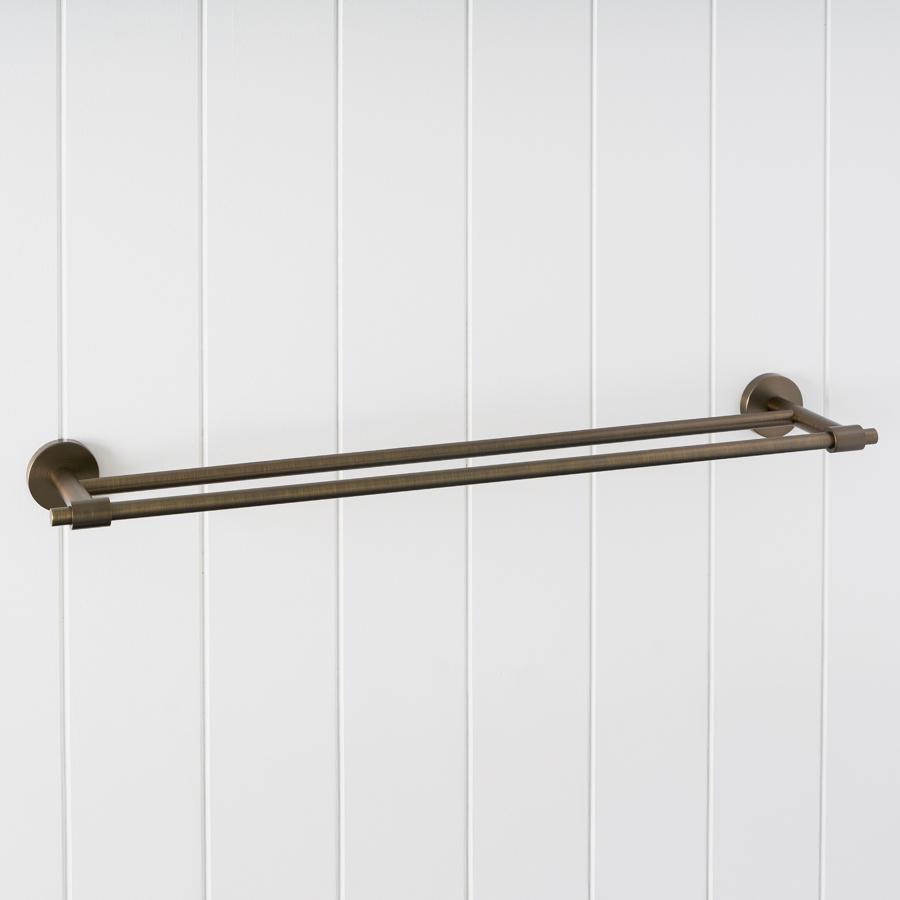 The Melbourne Double Towel Rail in Antique Brass (600mm) blends vintage warmth with modern design. Its soft, brushed finish adds character and depth to any bathroom, while the dual bars offer generous hanging space. A refined balance of style and practicality that completes the look.