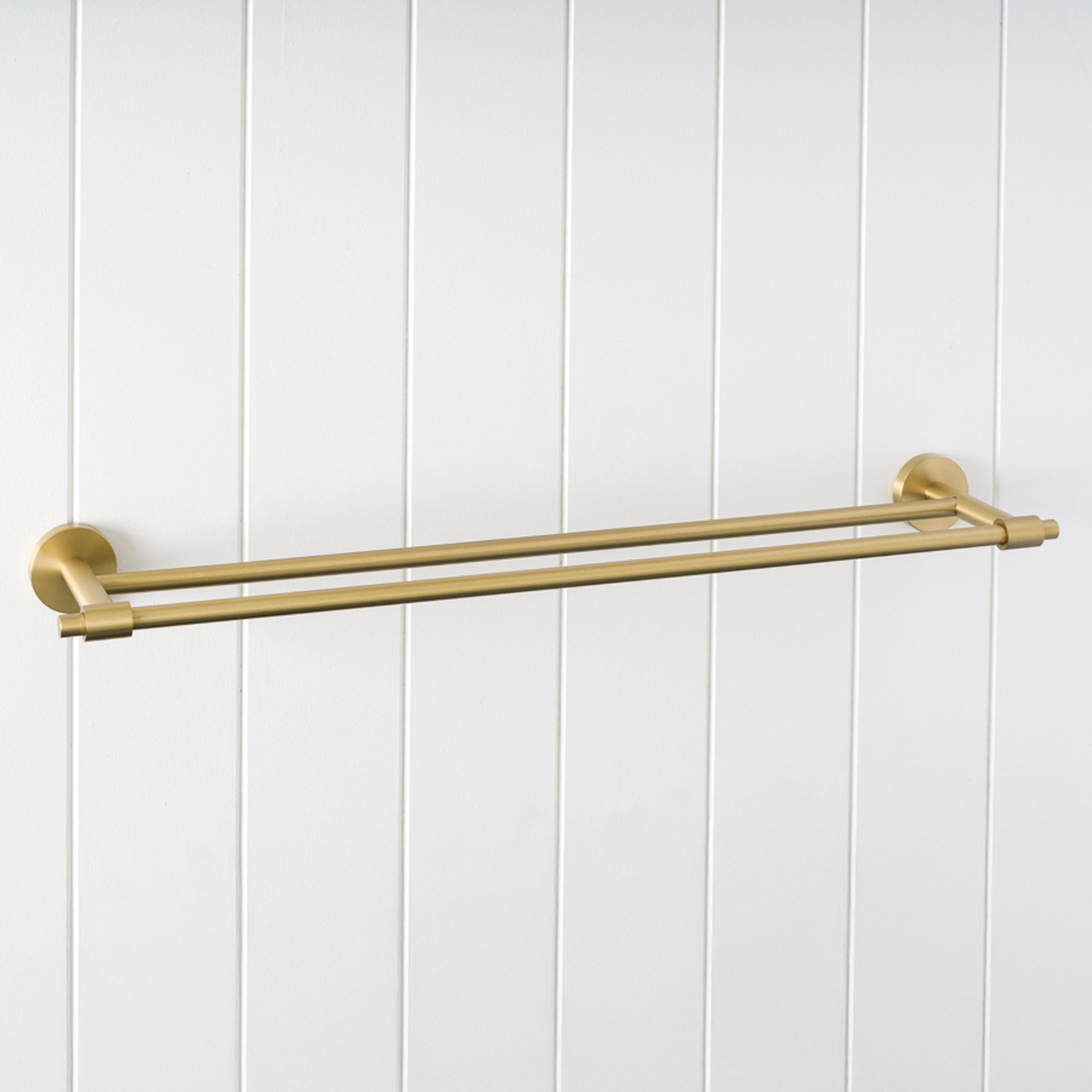 The Melbourne Double Towel Rail in Brushed Brass (600mm) adds a soft golden tone and clean lines to your bathroom. Its brushed finish brings warmth and balance, while the dual rails provide both function and style. A subtle, design-led feature for everyday comfort.