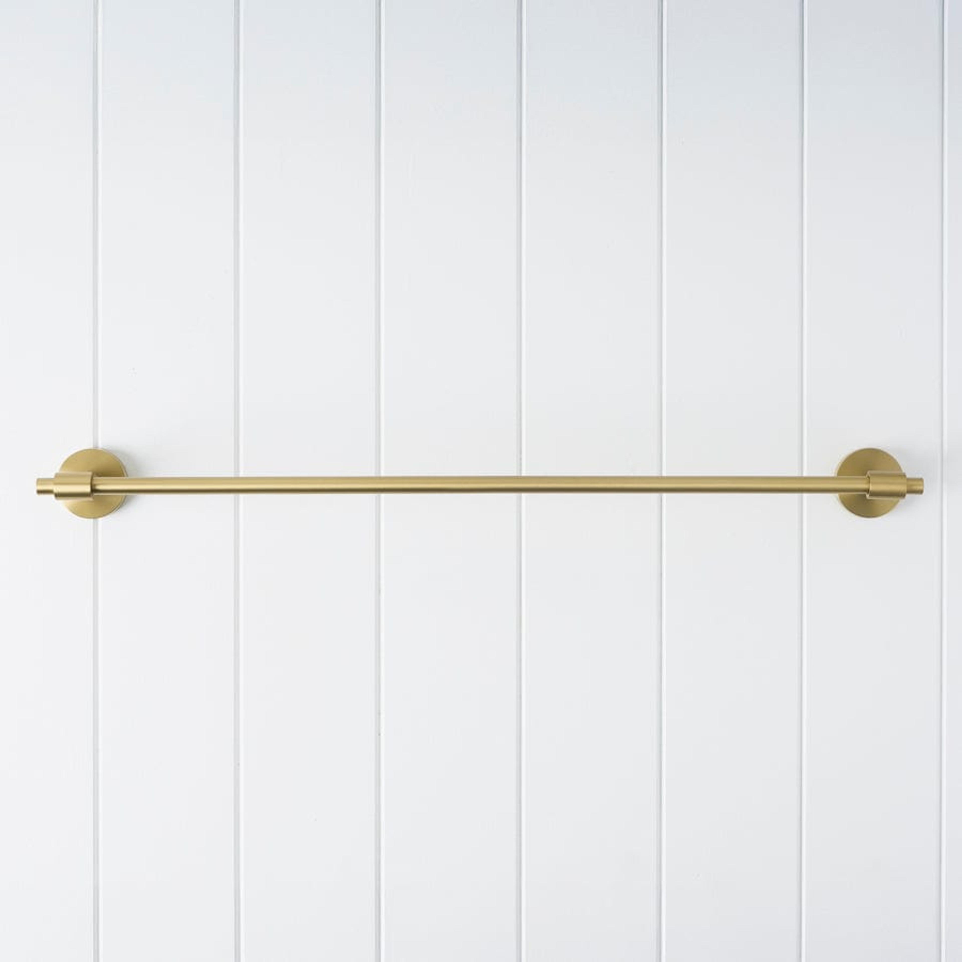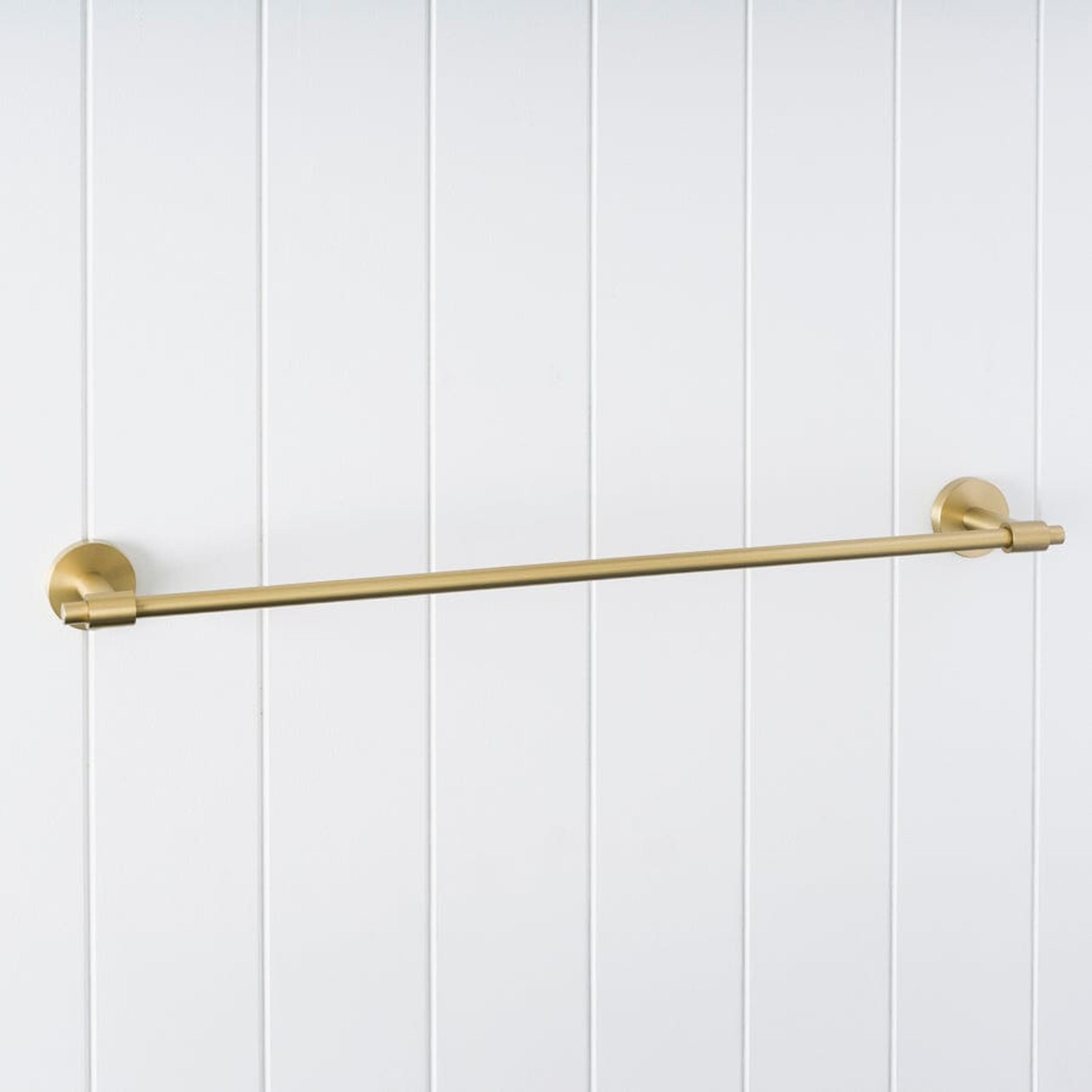 The Melbourne Towel Rail in Brushed Brass (600mm) adds a soft golden glow to modern bathrooms. Its brushed finish brings warmth and texture, while the clean silhouette creates a calm, cohesive look. Durable, balanced, and beautifully understated, a perfect finishing touch.