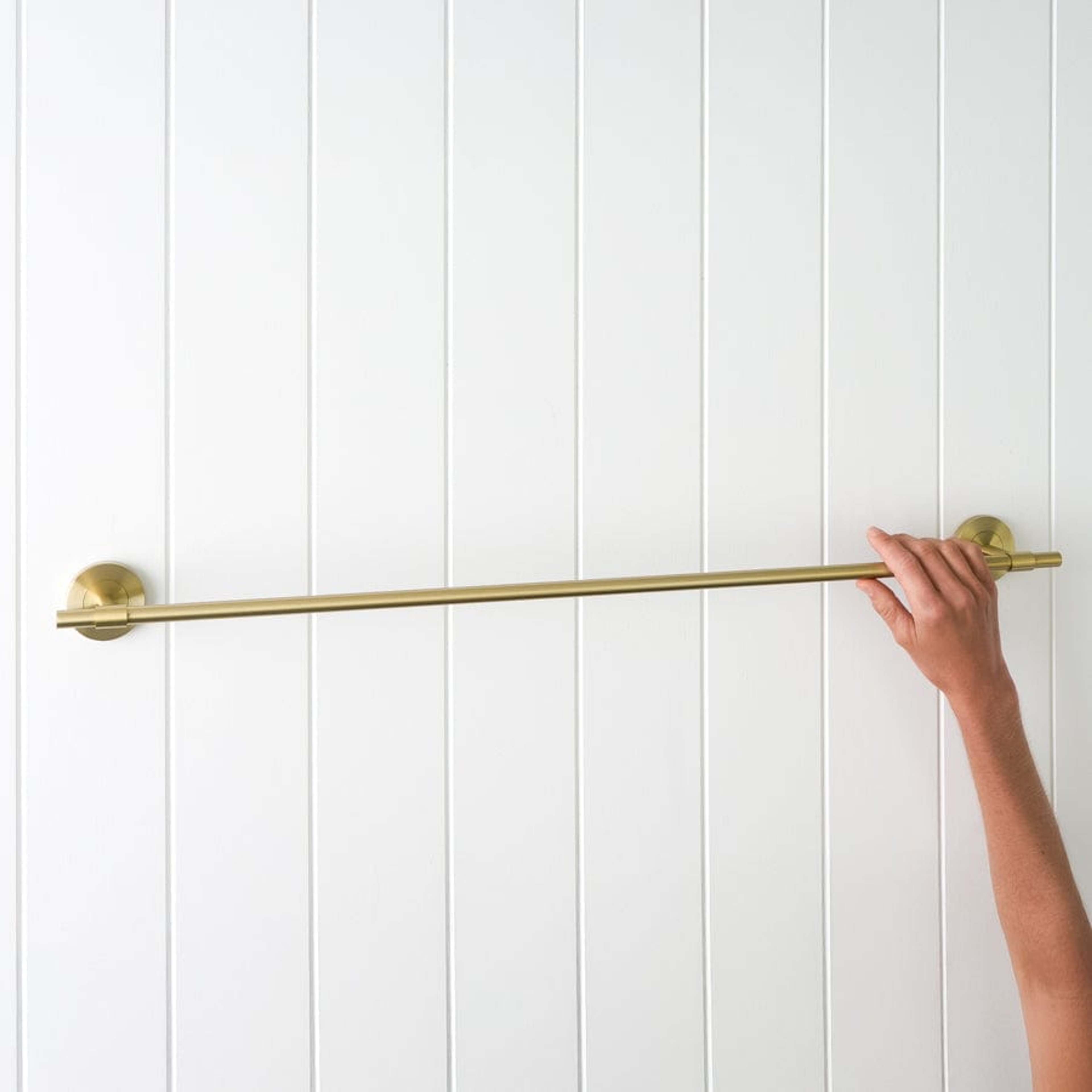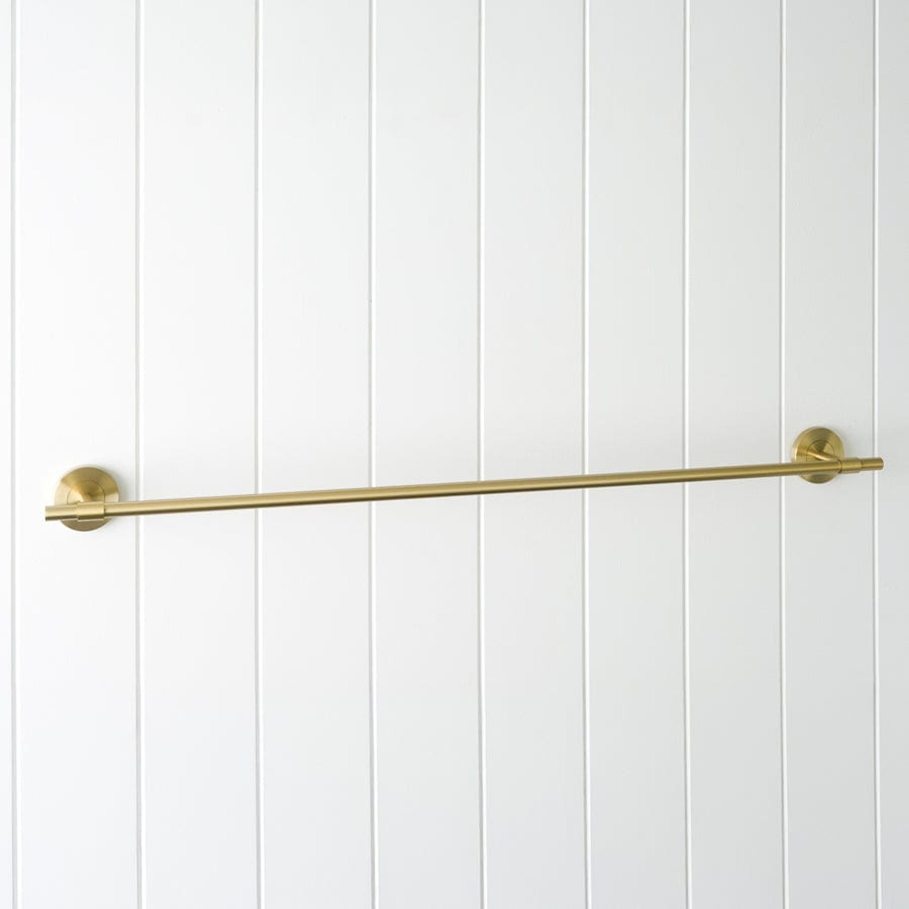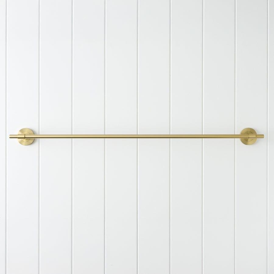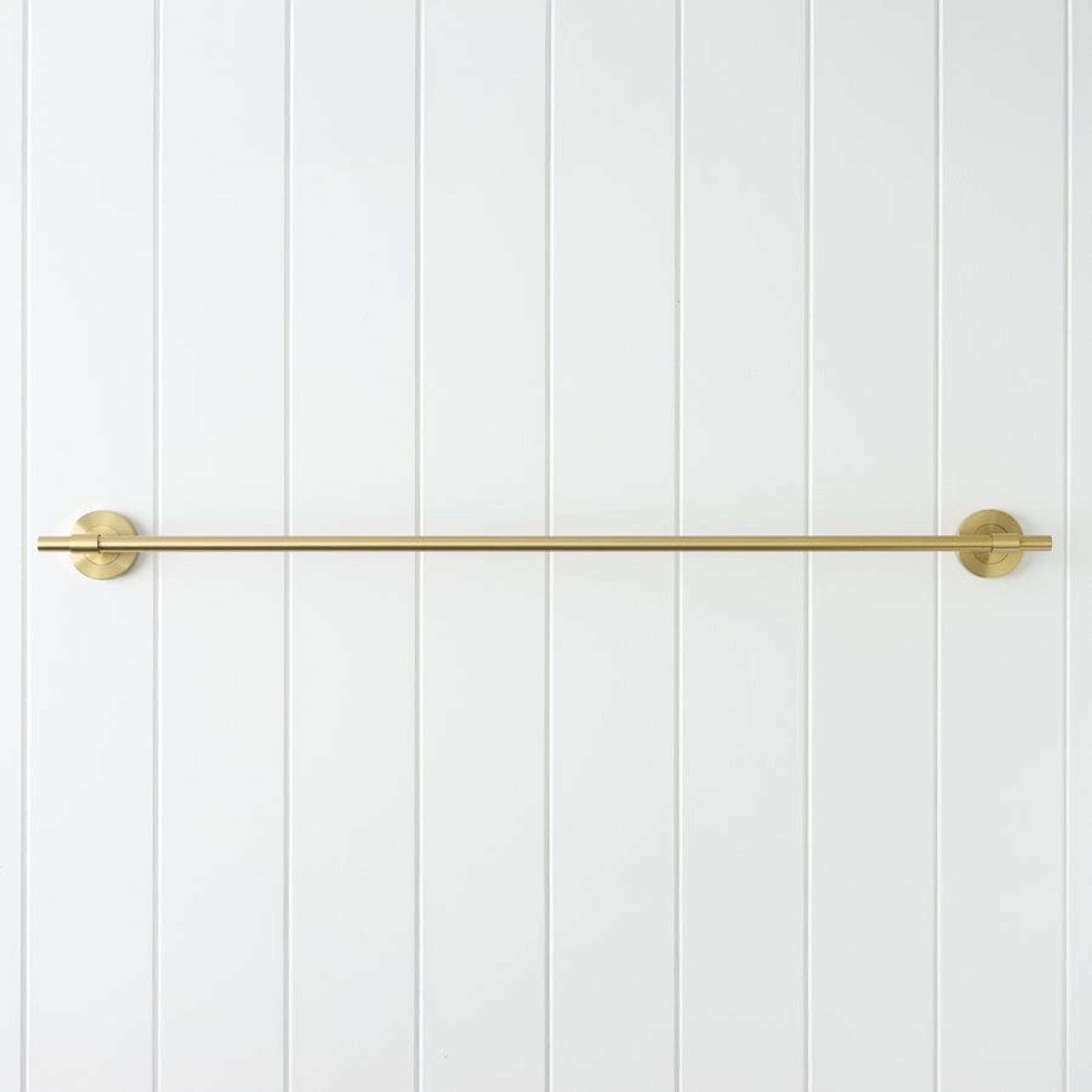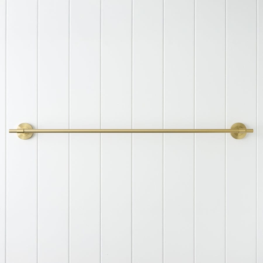 The Melbourne Towel Rail in Brushed Brass (750mm) adds a soft golden glow and extended function to your bathroom. Its brushed finish brings warmth and modern texture, while the longer rail offers space for multiple towels. Durable, balanced, and effortlessly elegant.