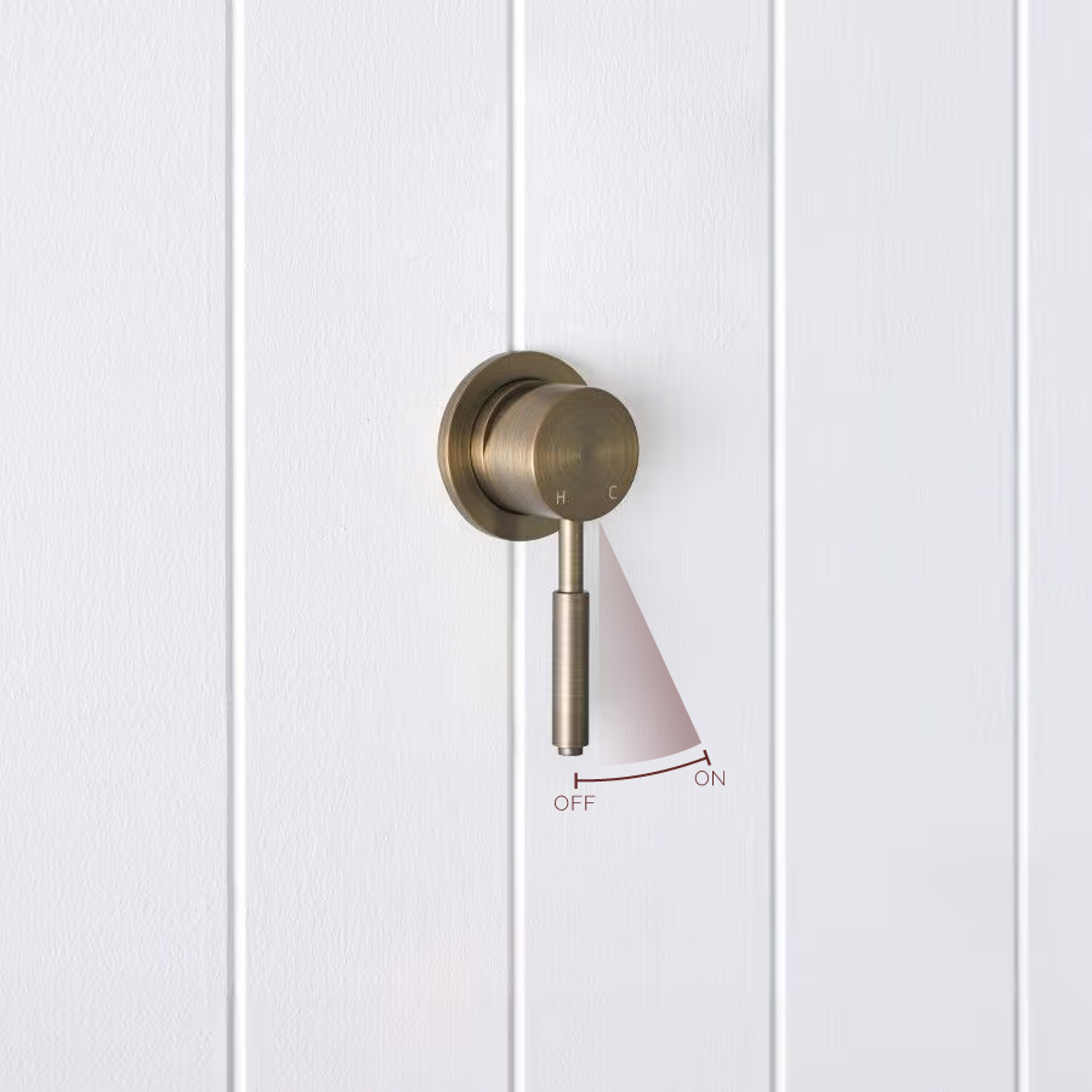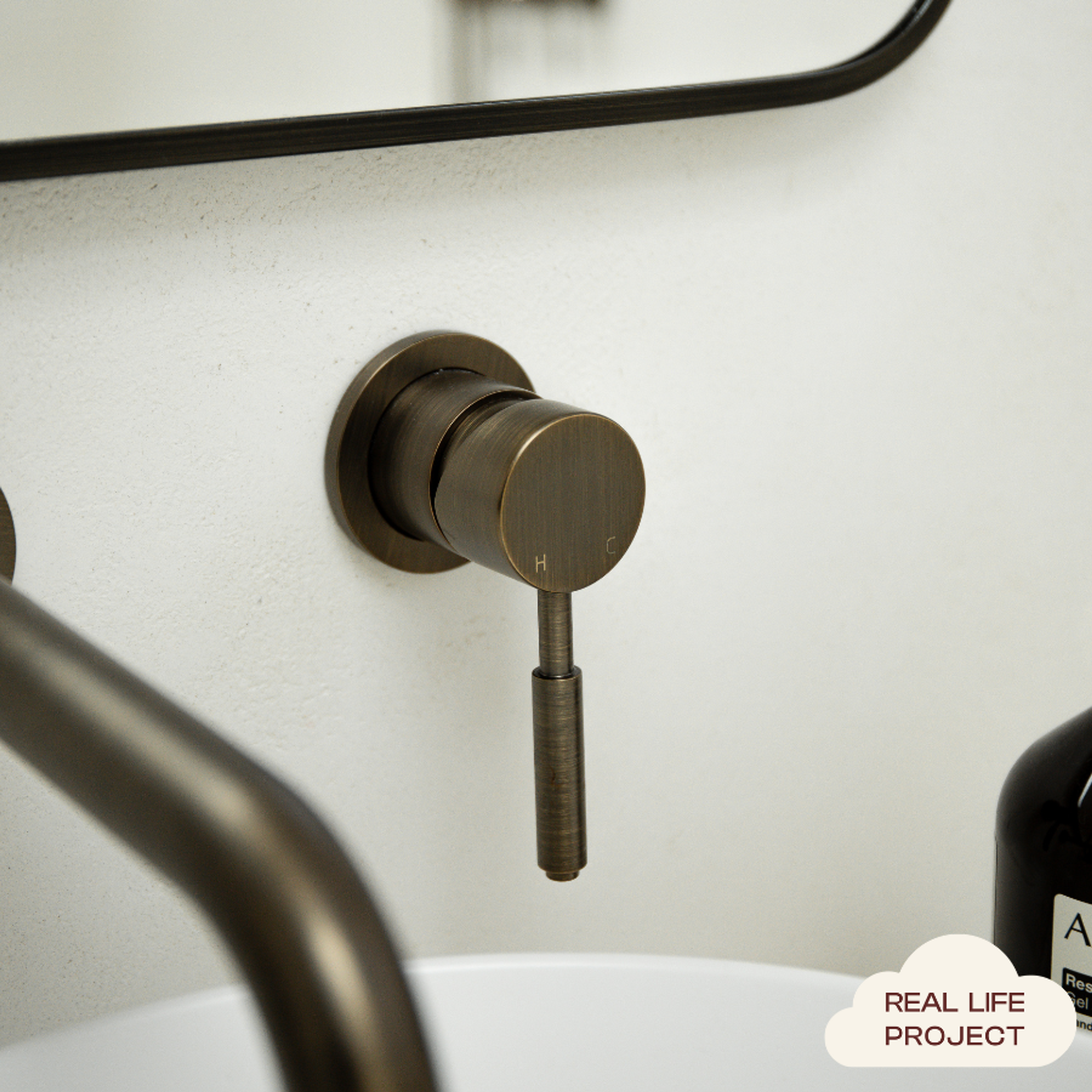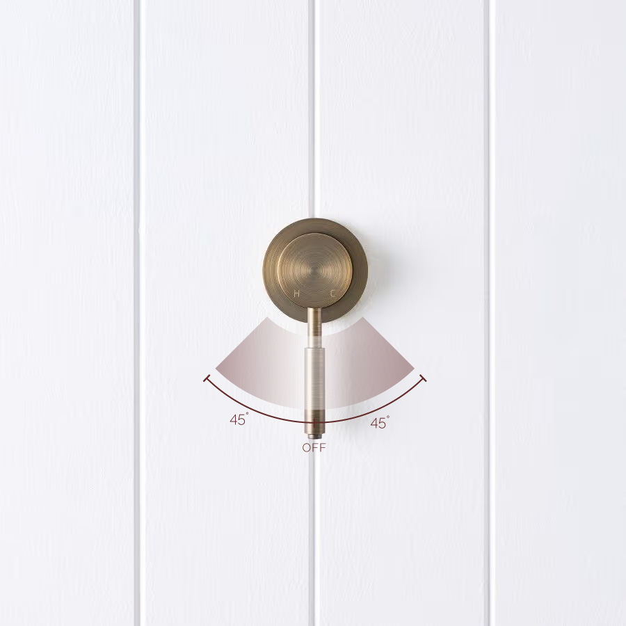 The Melbourne Wall Mixer in Antique Brass brings timeless warmth to modern bathrooms. Its soft, aged finish pairs beautifully with natural materials, while the streamlined design offers effortless control and a balanced look. A refined detail that combines classic character with everyday function.