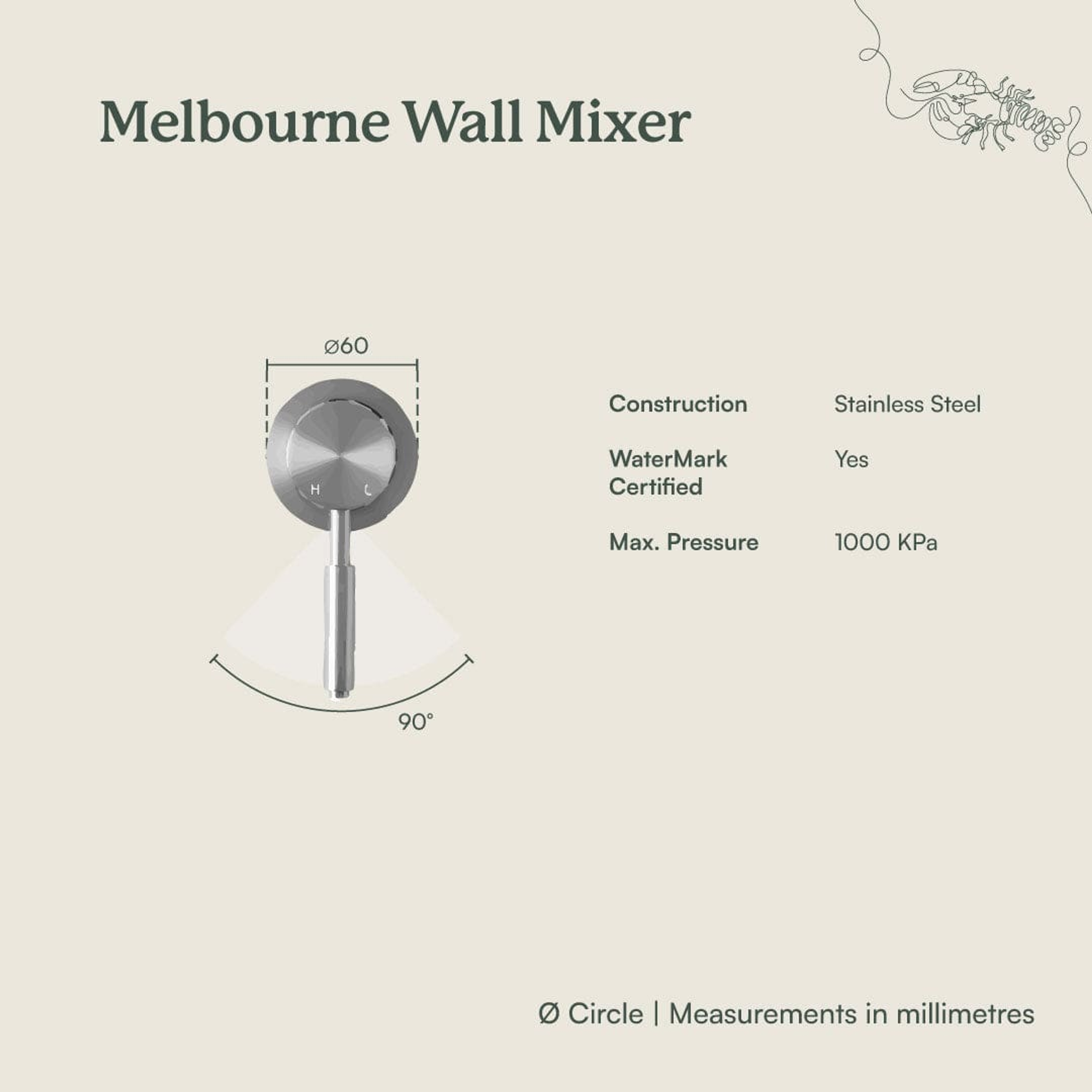 The Melbourne Wall Mixer in Warm Brushed Nickel blends contemporary design with a calm, refined tone. Its soft metallic finish complements both light and dark palettes, adding balance and sophistication. Built for smooth operation and lasting durability, it’s a simple detail that elevates the space.
