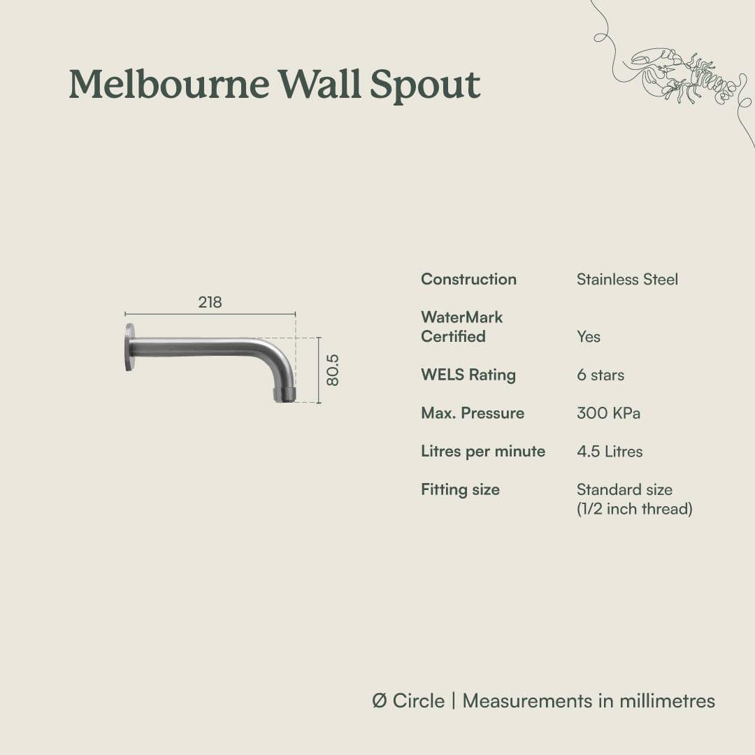 The Melbourne Wall Spout in Brushed Brass adds a soft golden glow to your space. Its clean, curved silhouette creates balance and warmth, pairing beautifully with a modern or coastal bathroom style. A design-led piece that combines function with effortless appeal.