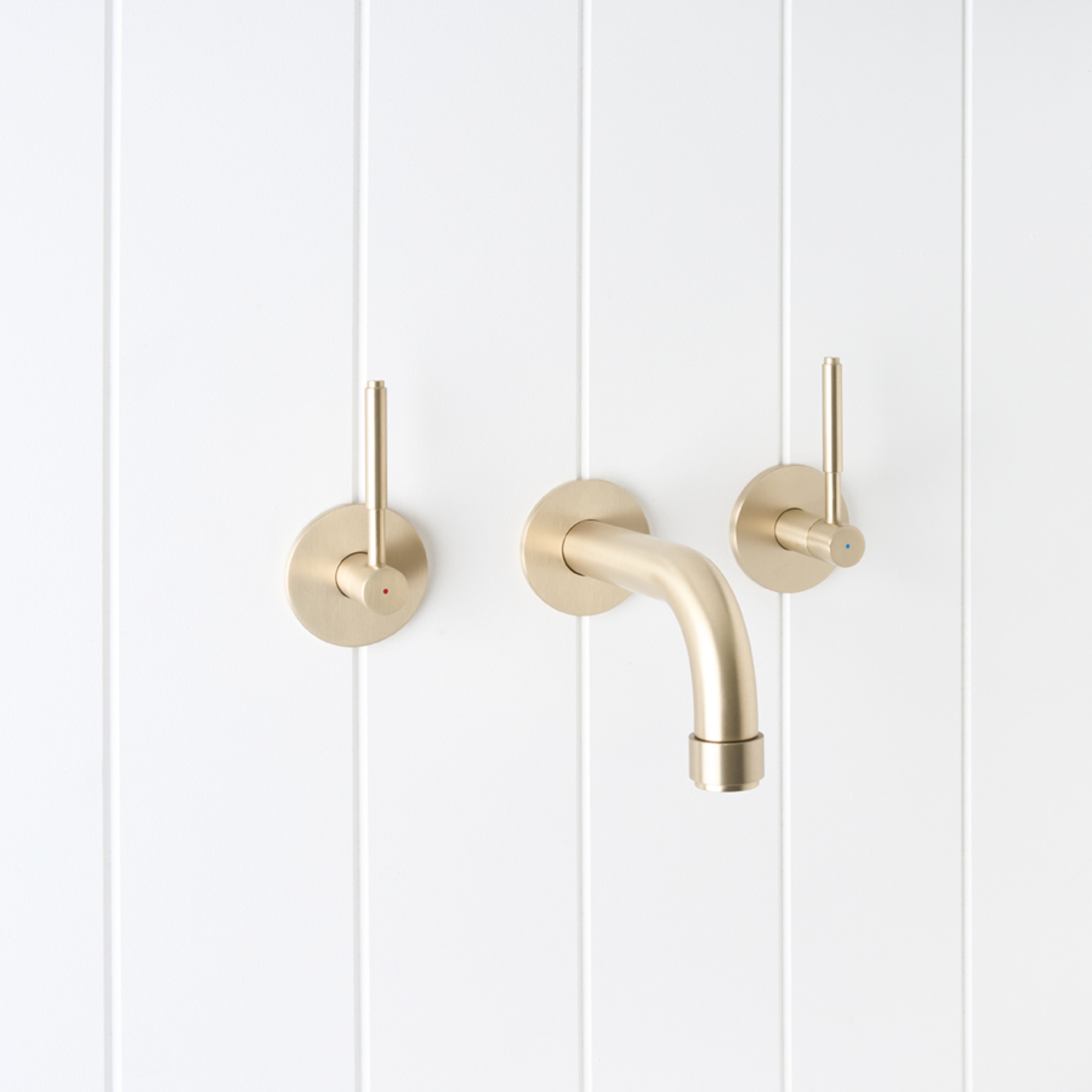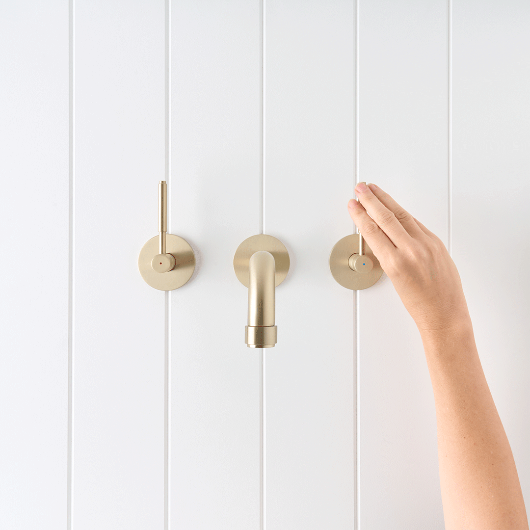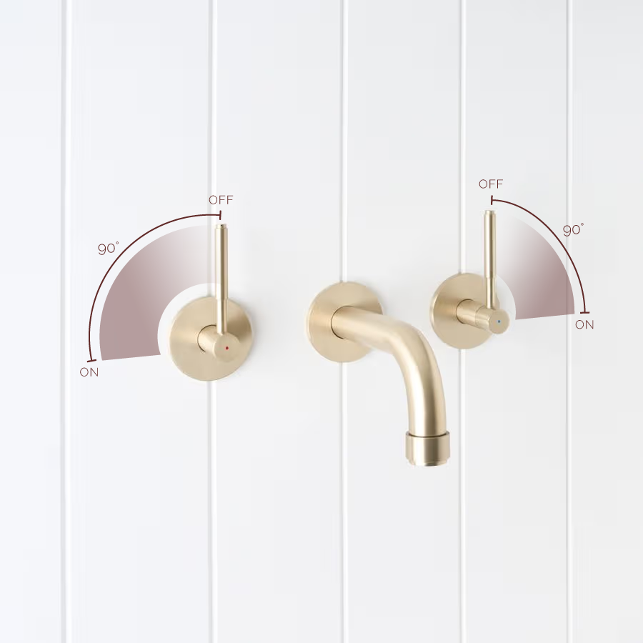 The Melbourne Wall Spout and Double Handle Taps in Warm Brushed Nickel bring a warm, homely feel to your bathroom or powder room, combining classic design with everyday practicality. This set includes a wall-mounted spout along with two separate taps — one for hot and one for cold — giving you simple, intuitive control over your water temperature.