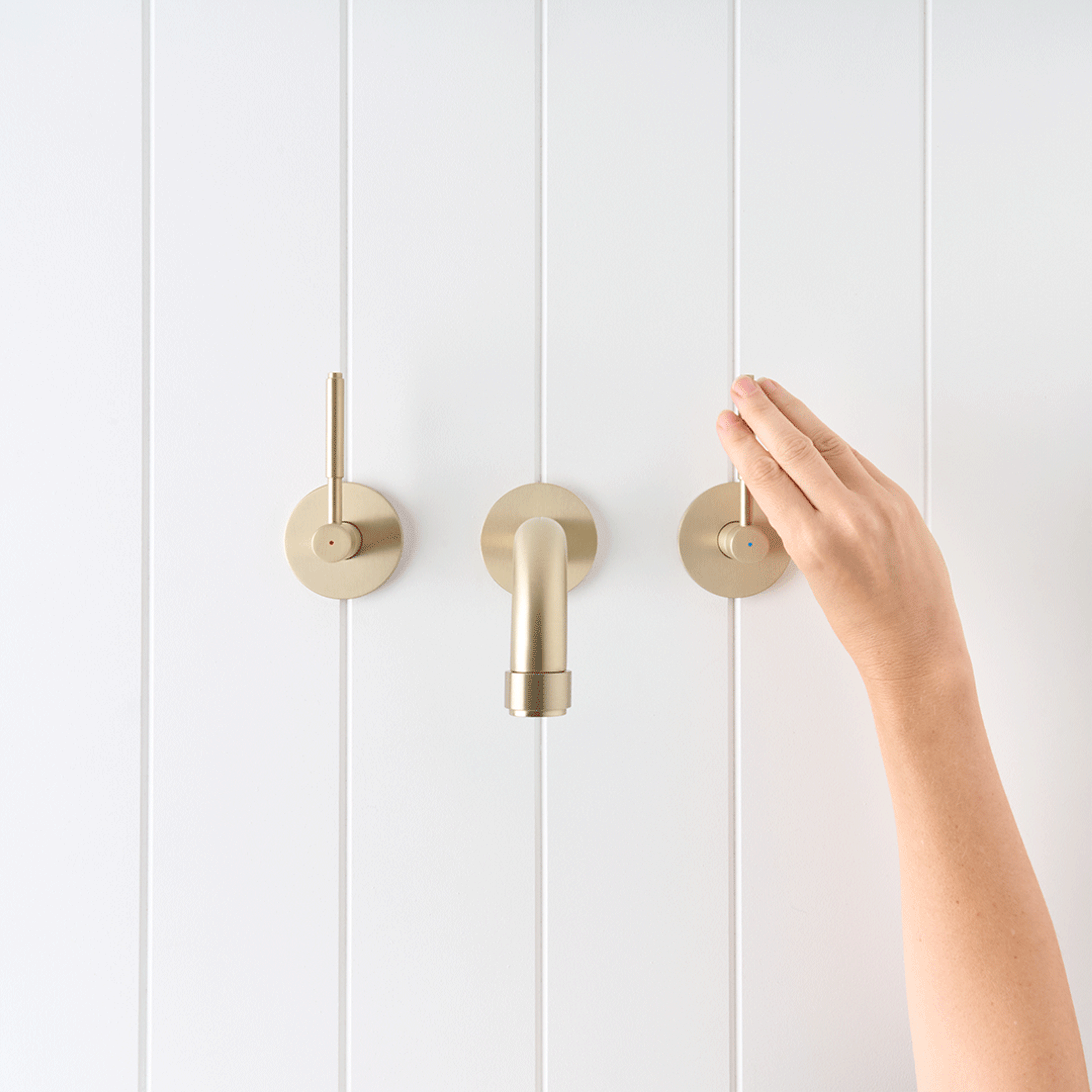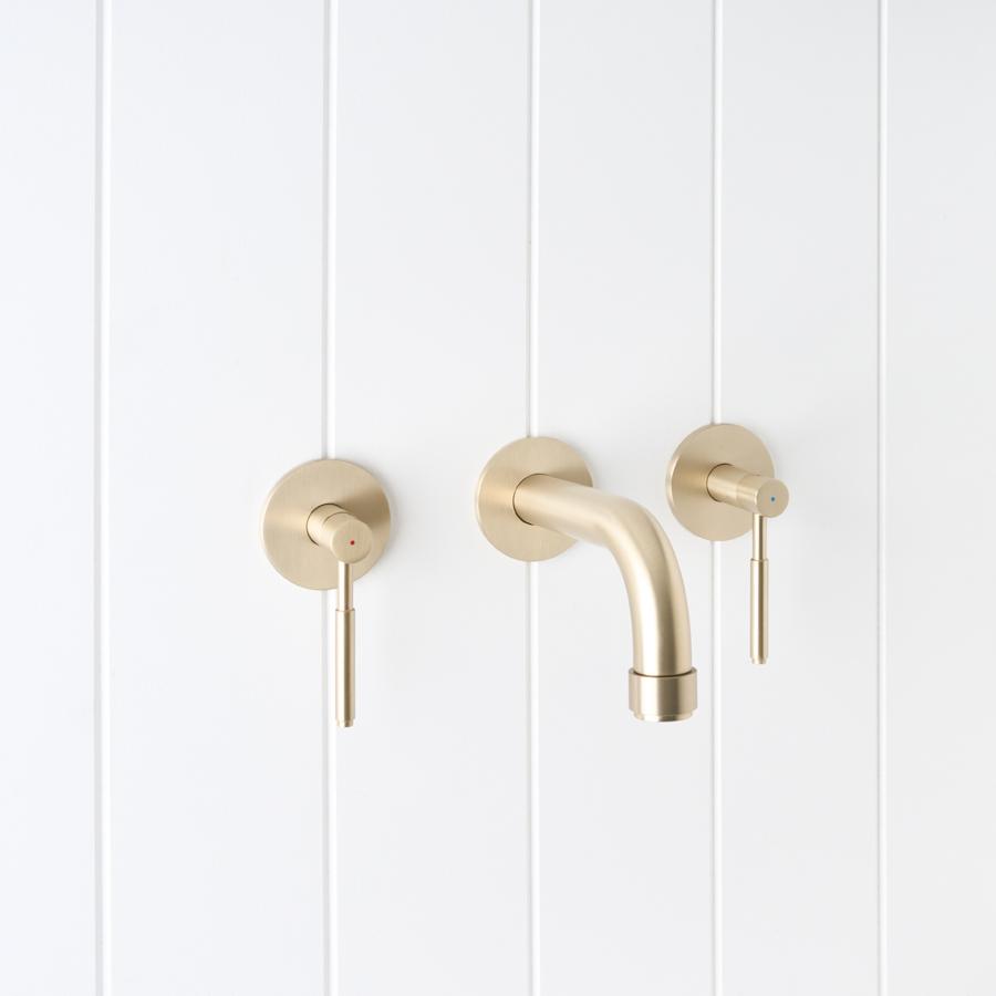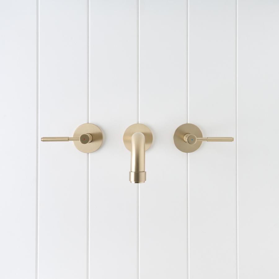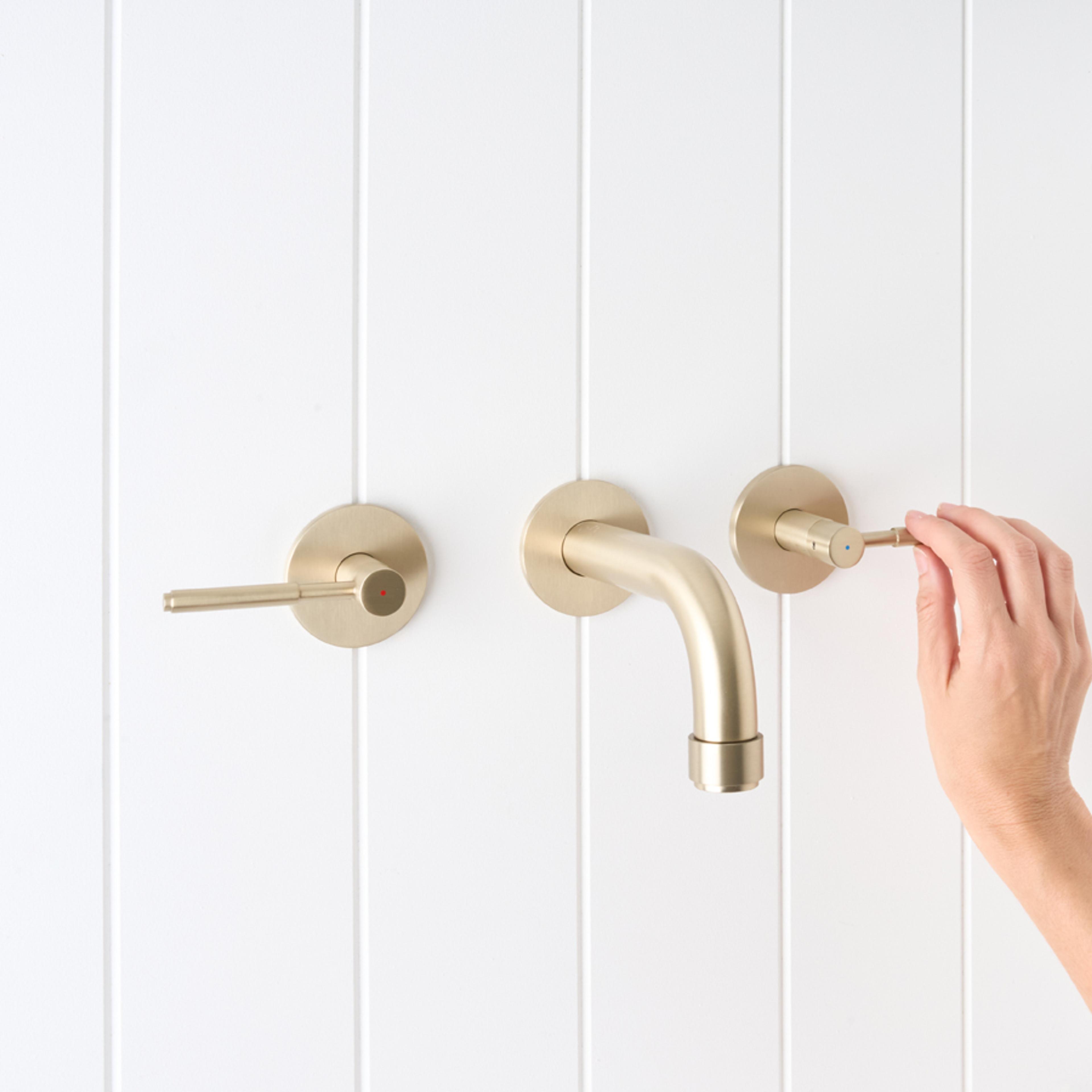 The Melbourne Wall Spout and Double Handle Taps in Warm Brushed Nickel bring a warm, homely feel to your bathroom or powder room, combining classic design with everyday practicality. This set includes a wall-mounted spout along with two separate taps — one for hot and one for cold — giving you simple, intuitive control over your water temperature.