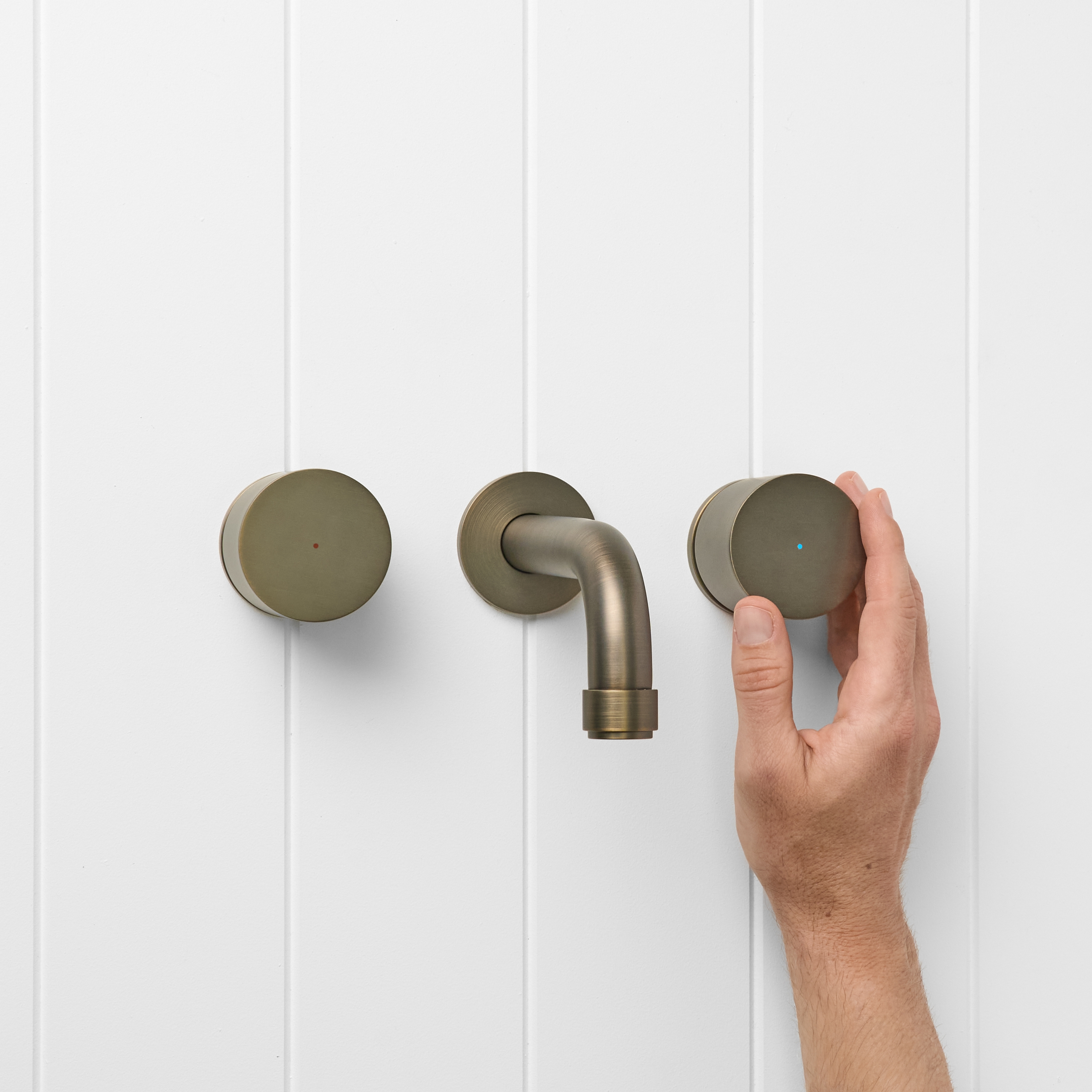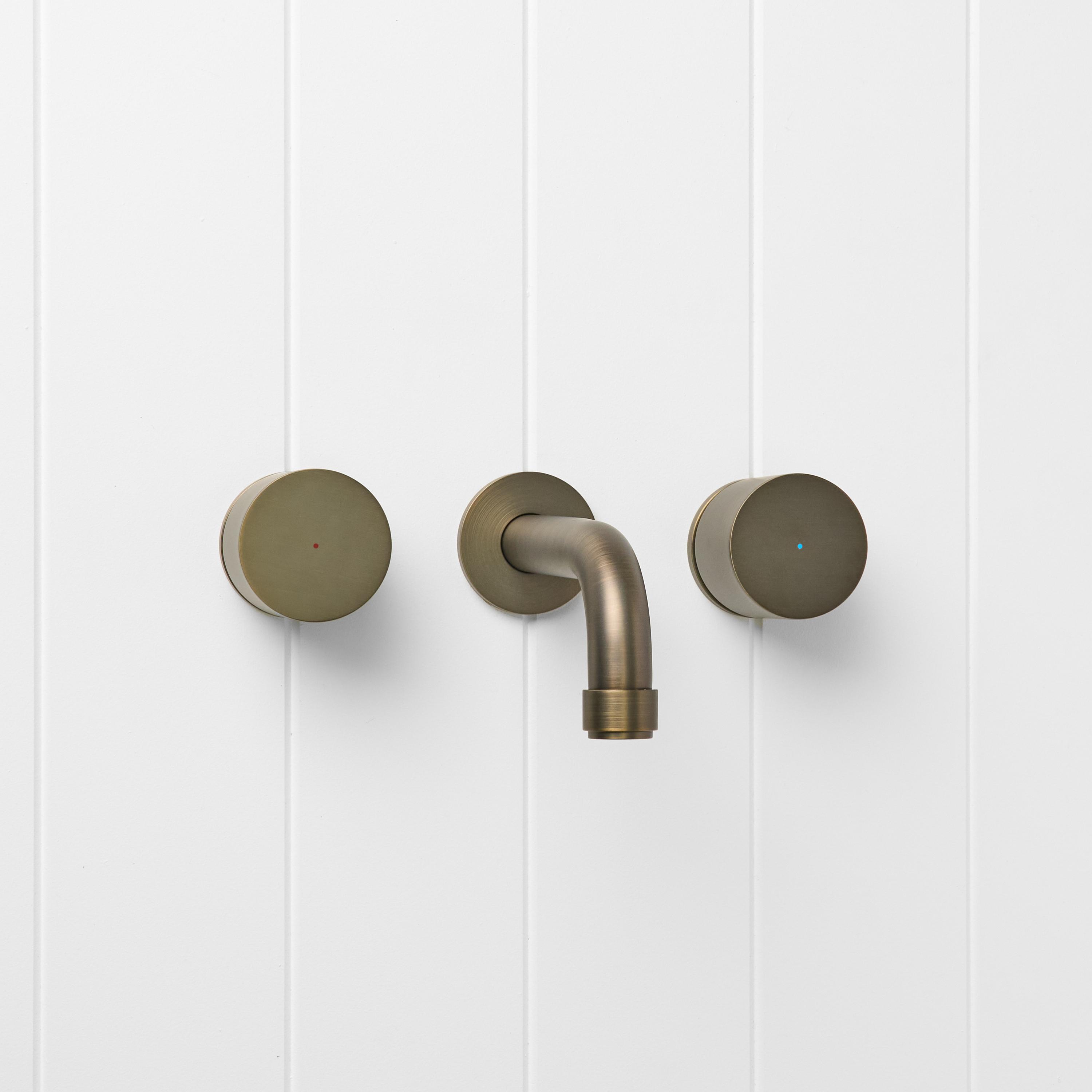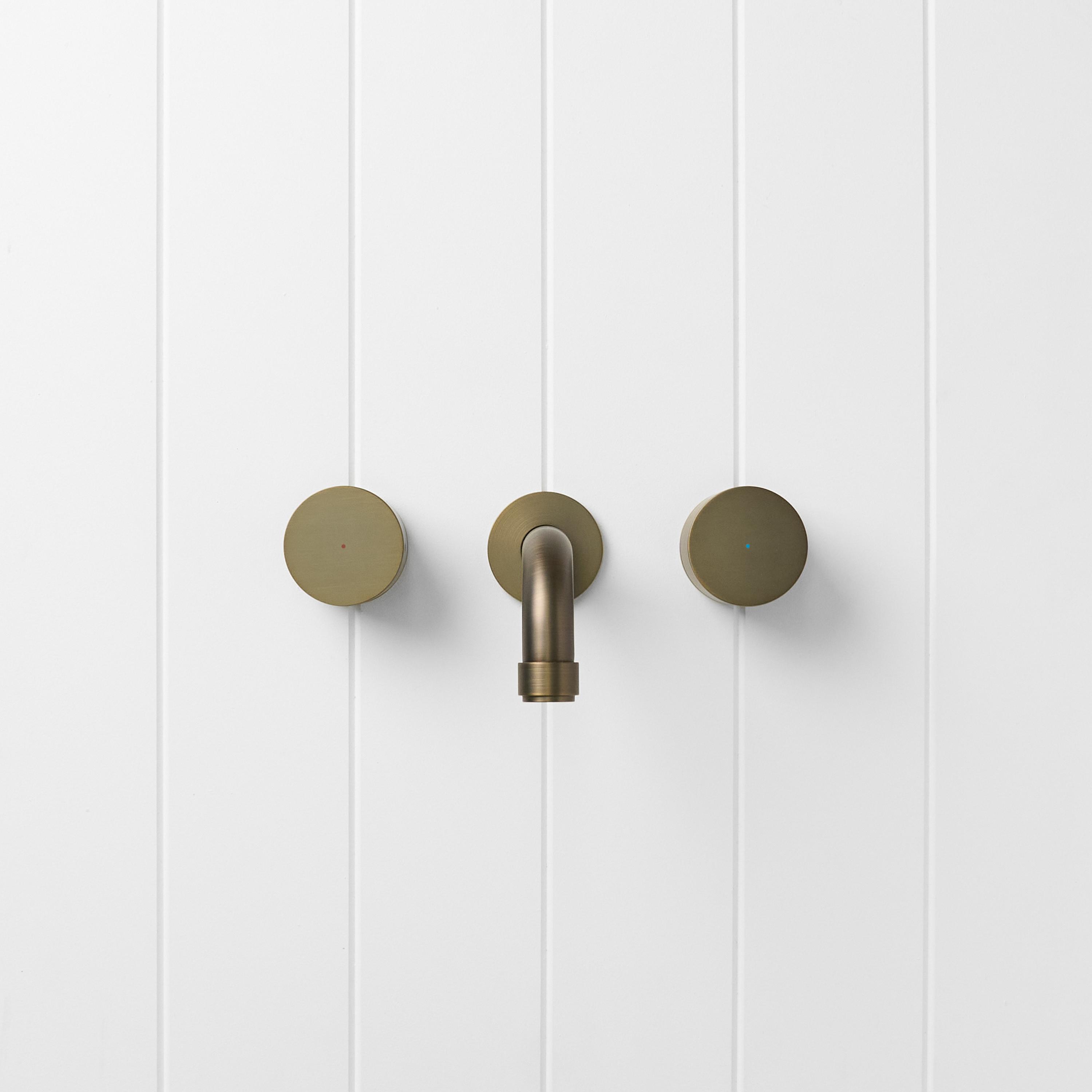 The Melbourne Wall Spout and Round Taps in Antique Brass brings warm, rounded forms to the basin or bath. The soft Antique Brass finish over stainless steel sits beautifully against stone and textured tiles. With separate hot and cold taps framing the curved spout, this set turns everyday washing into a small ritual.