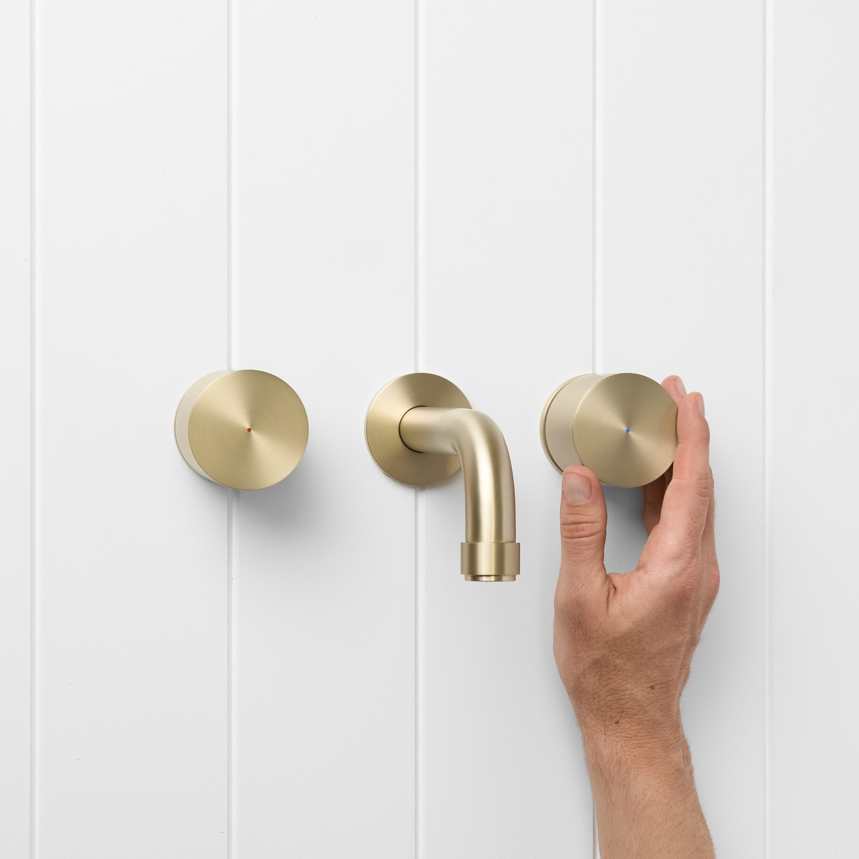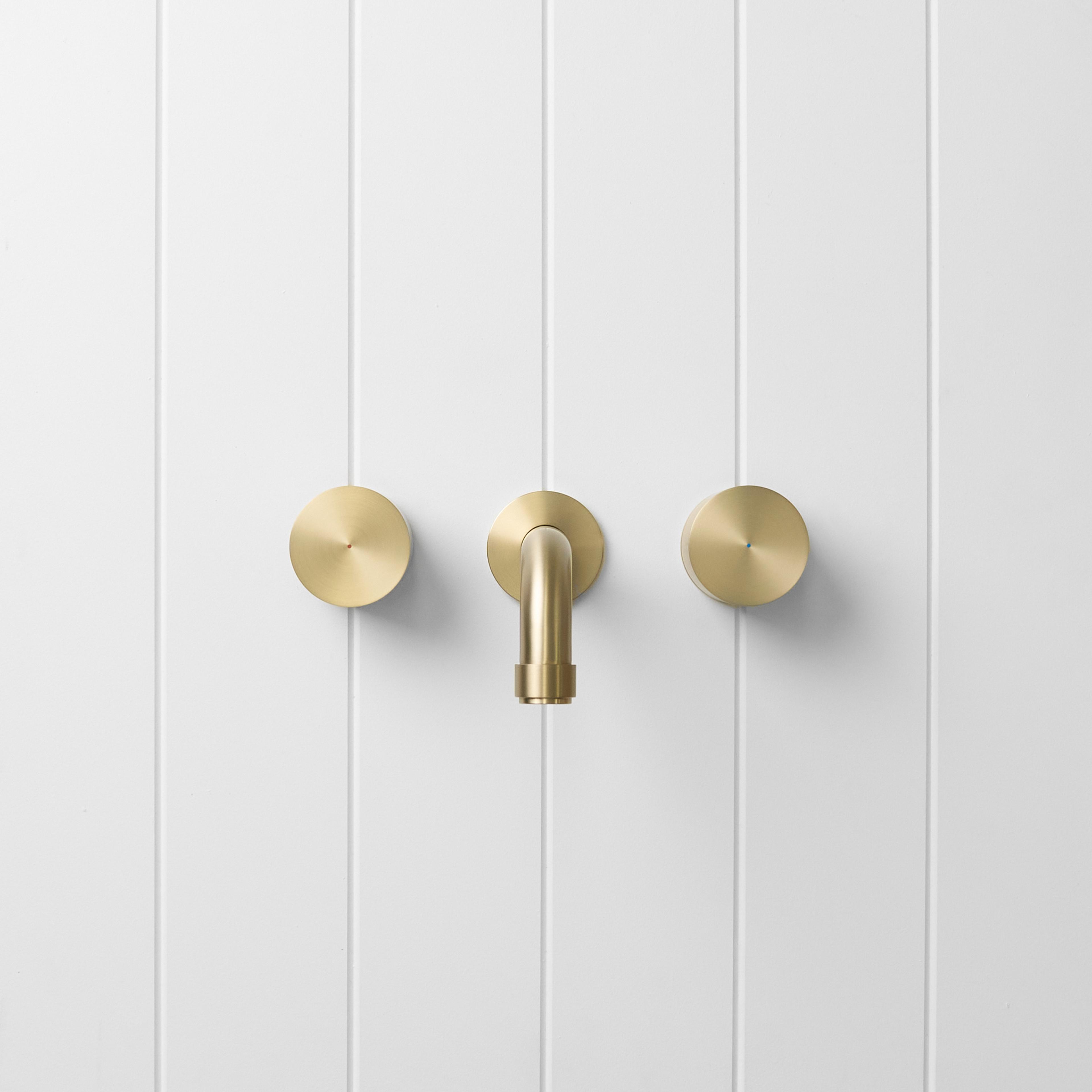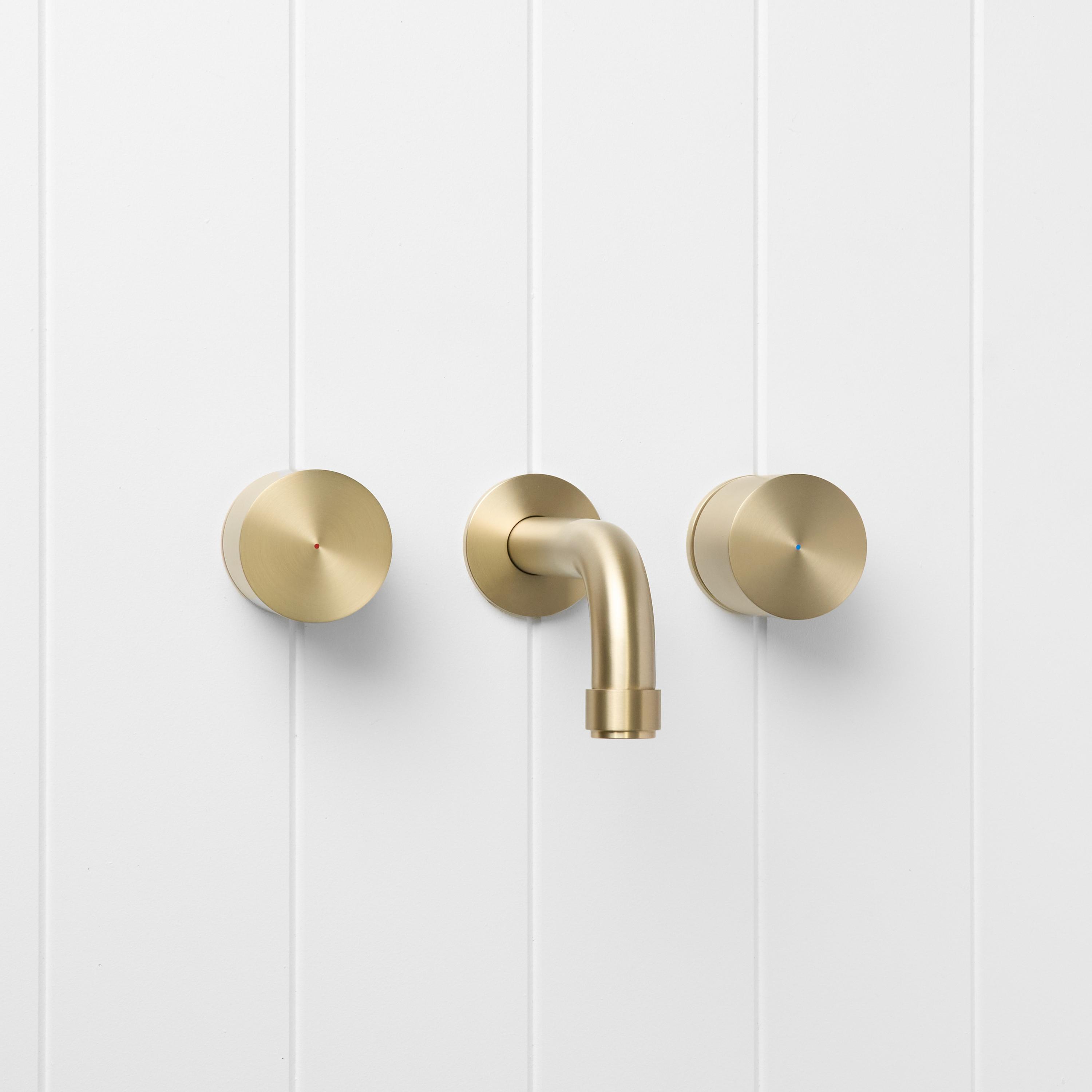 The Melbourne Wall Spout + Round Taps in Warm Brushed Nickel brings a soft, neutral glow to bathroom walls. The Warm Brushed Nickel finish over stainless steel sits gently with both warm and cool palettes, while the curved spout and round taps create a relaxed focal point at the basin or bath.