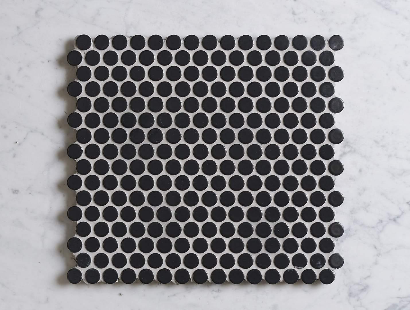 Broadwater Black Matte Penny Round Mosaic Tile