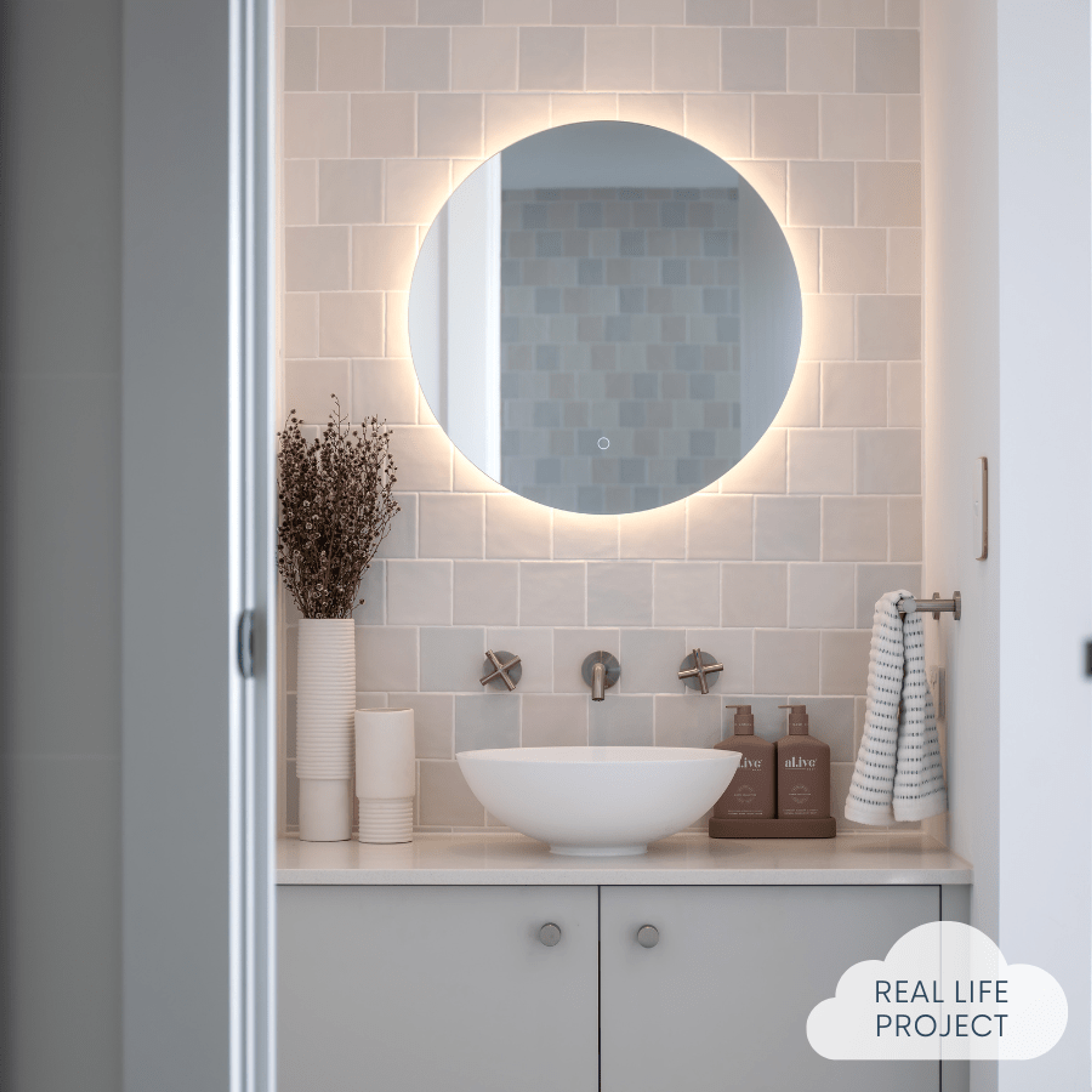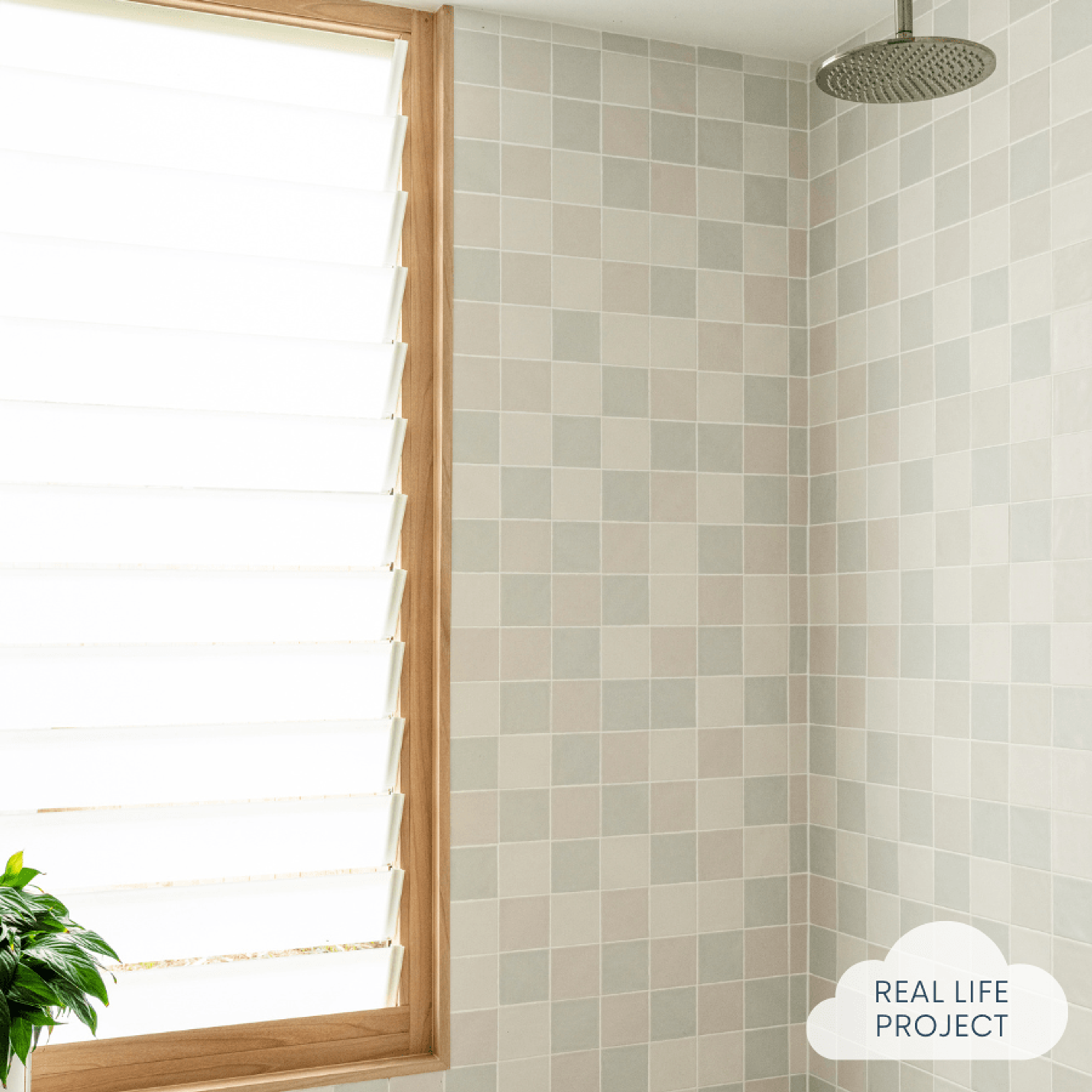 The Newport Matte Mixed White Small Square Tile creates a soft, tonal patchwork across bathrooms, laundries and kitchens thanks to its mix of white, blue-tinted and blush-tinted shades. The matte finish and subtle handmade look add gentle movement on the wall, especially when the tiles are laid in a completely random pattern.
