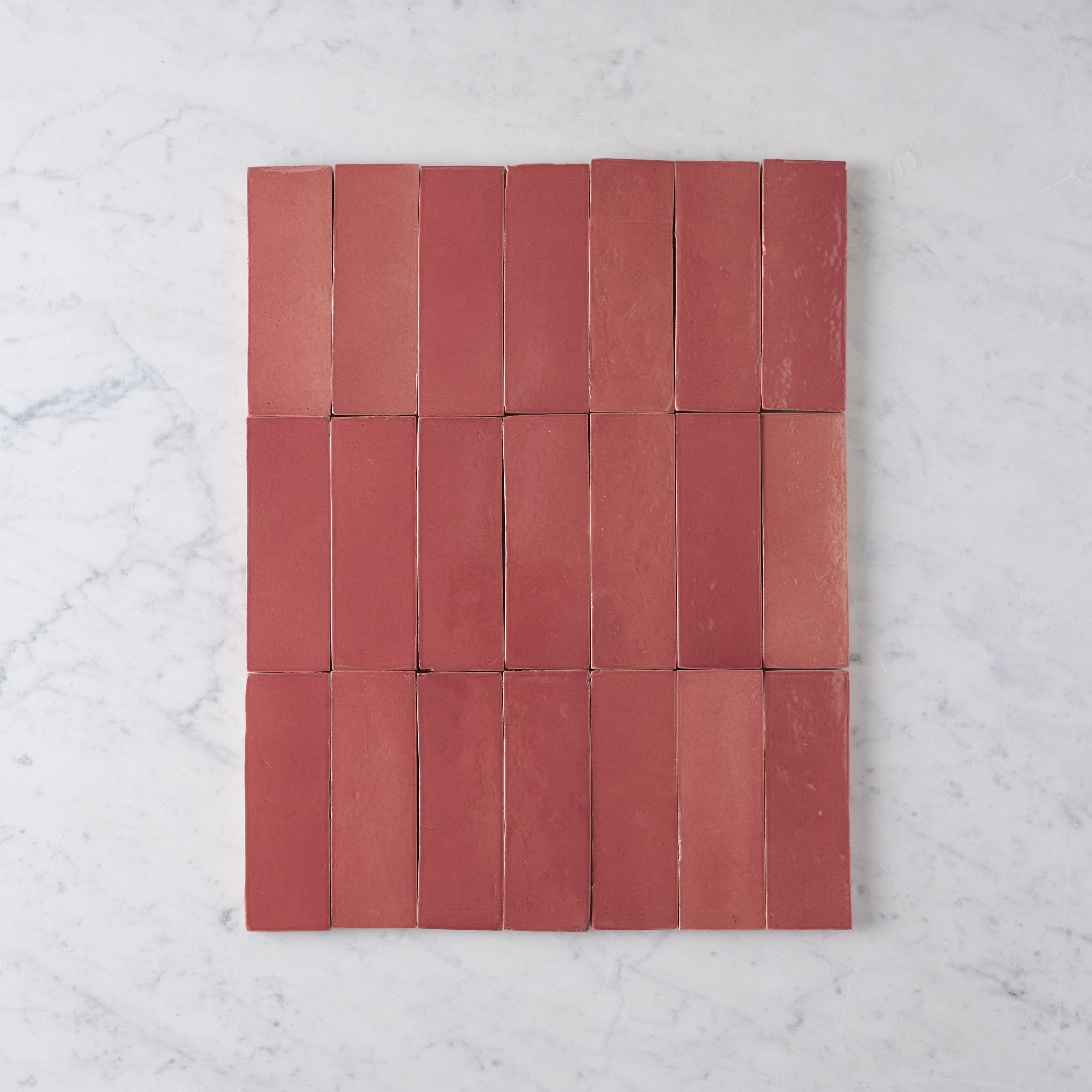 The Noosa Gloss Zellige Pink Subway Tile brings a warm, playful energy to bathrooms and kitchens with its rosy tone and glossy, handcrafted finish. Light catches differently across each tile, creating gentle shifts in colour and texture that make the wall feel alive. Our handmade Noosa tile features natural variations in colour, size, and texture, creating a rustic and unique appearance that adds character to your project.