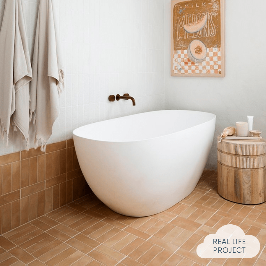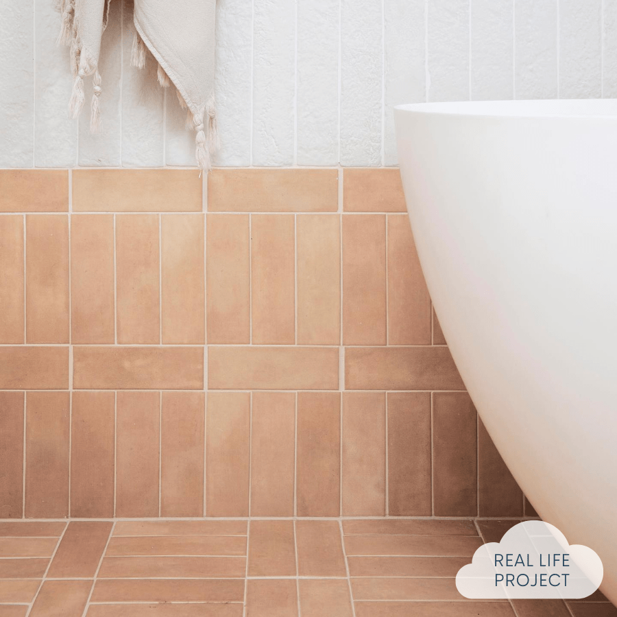 The Northbridge Peach Terracotta Look Subway Tile brings a warm, rustic feel to bathrooms and kitchens with its soft peach tone and matte finish. Its terracotta inspired surface adds gentle texture across both walls and floors, creating a relaxed Australian look. A sturdy, versatile option that grounds any space with natural warmth.