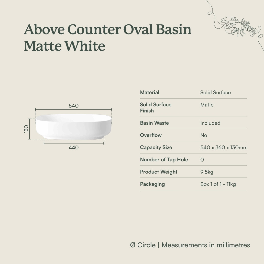 The Above Counter Oval Basin in Matte White brings a soft, sculptural moment to the vanity. This above counter basin features a gently curved oval form and smooth matte finish that pairs effortlessly with stone, timber and brass tapware. For those seeking an alternative to sharp rectangular basins, its raised sides help minimise splashes while keeping the bathroom feeling calm.