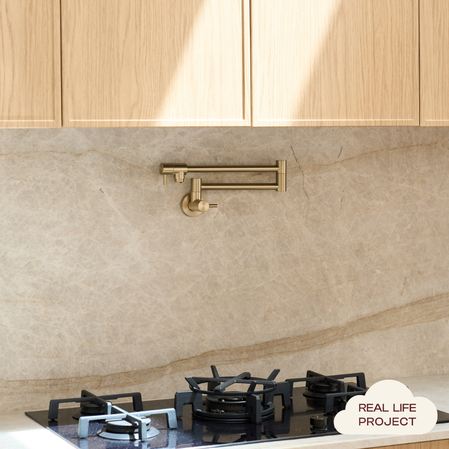 The Pot Filler in Warm Brushed Nickel introduces a gentle, greyed warmth that suits stone, timber and soft white cabinetry. Perfect for larger family homes, this brushed nickel pot filler tap makes everyday cooking easier by filling pots at the stove. A considered detail that completes a calm, functional kitchen.