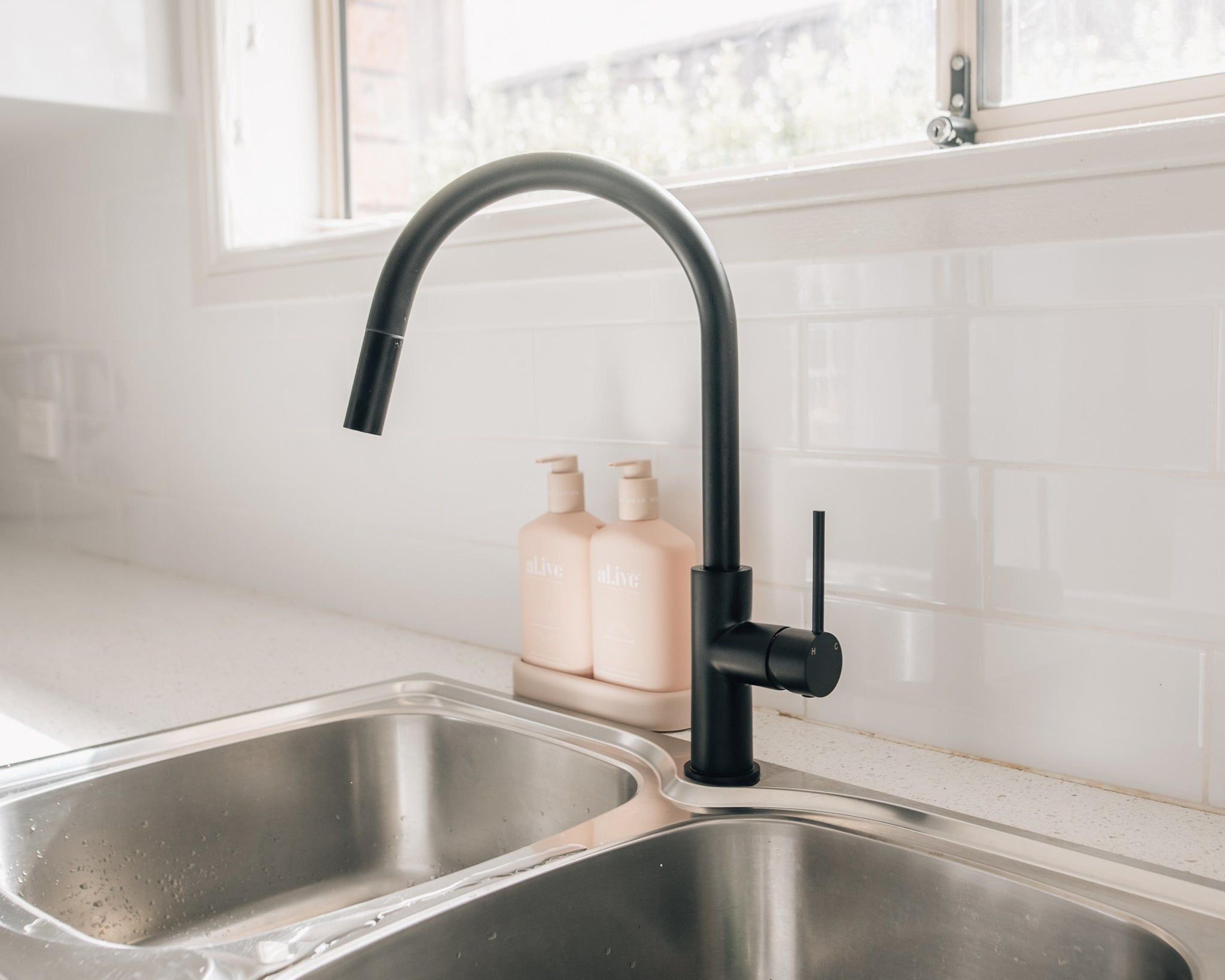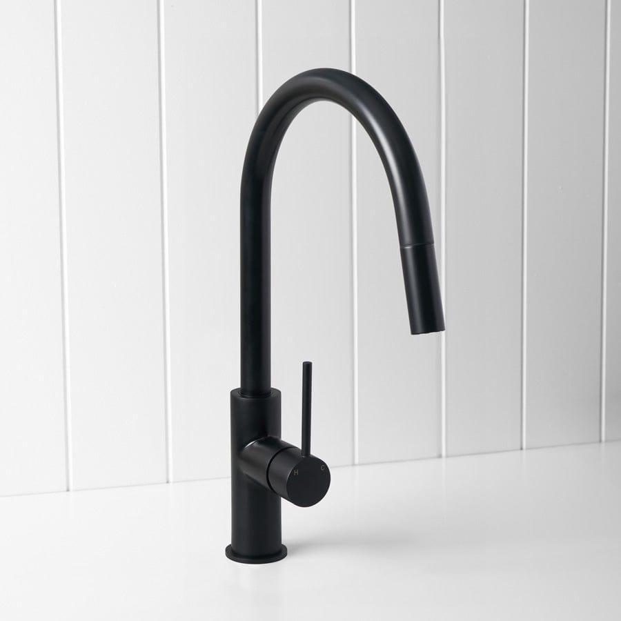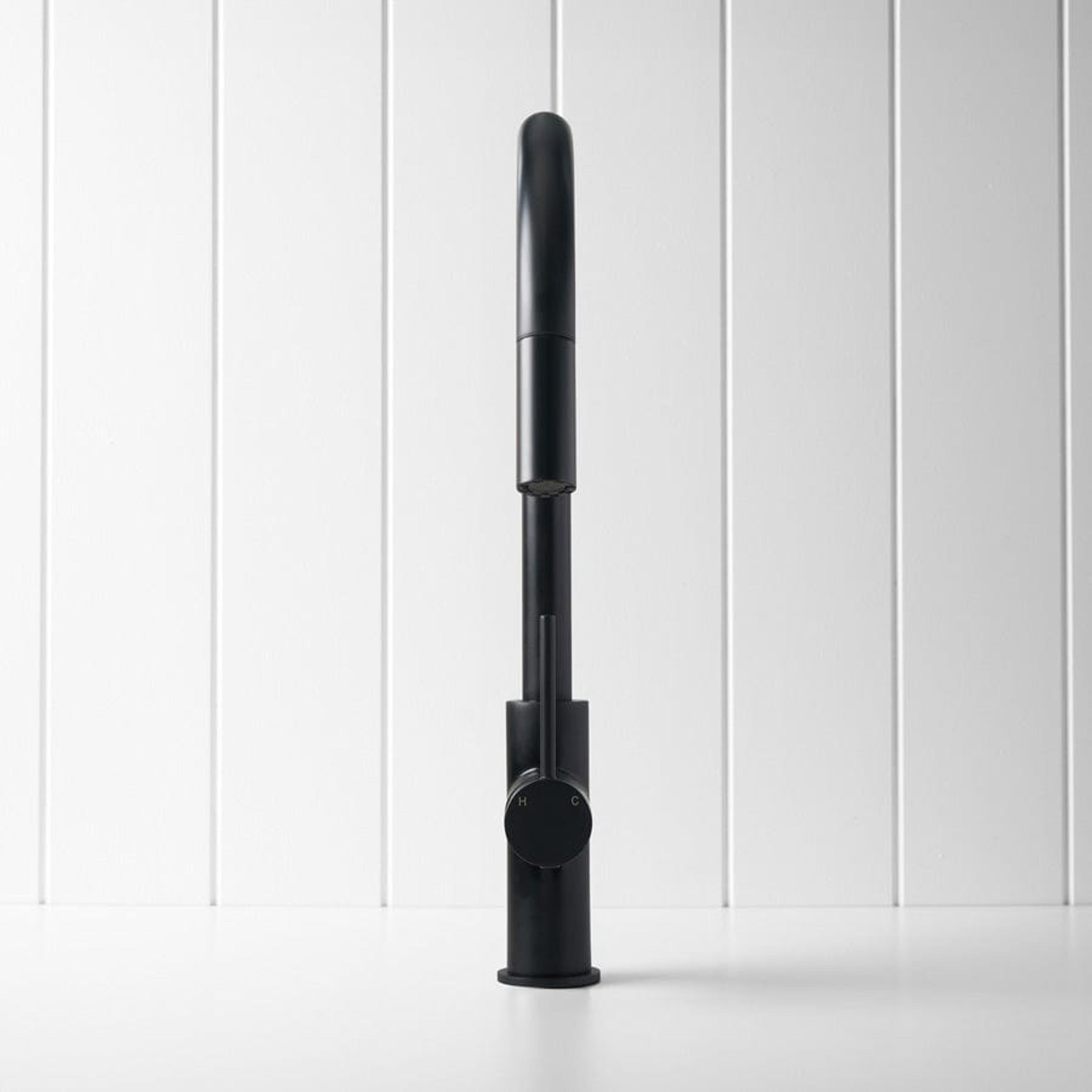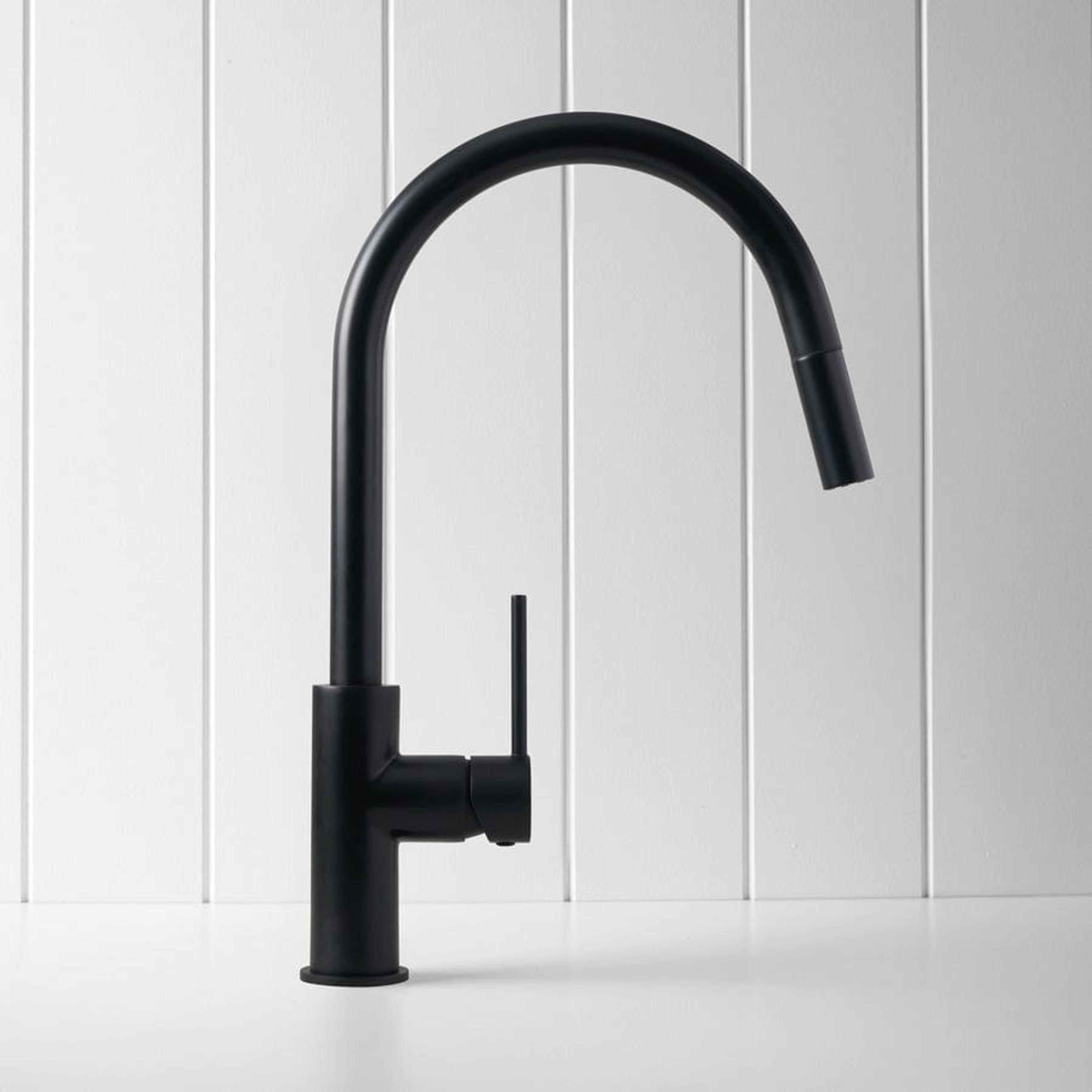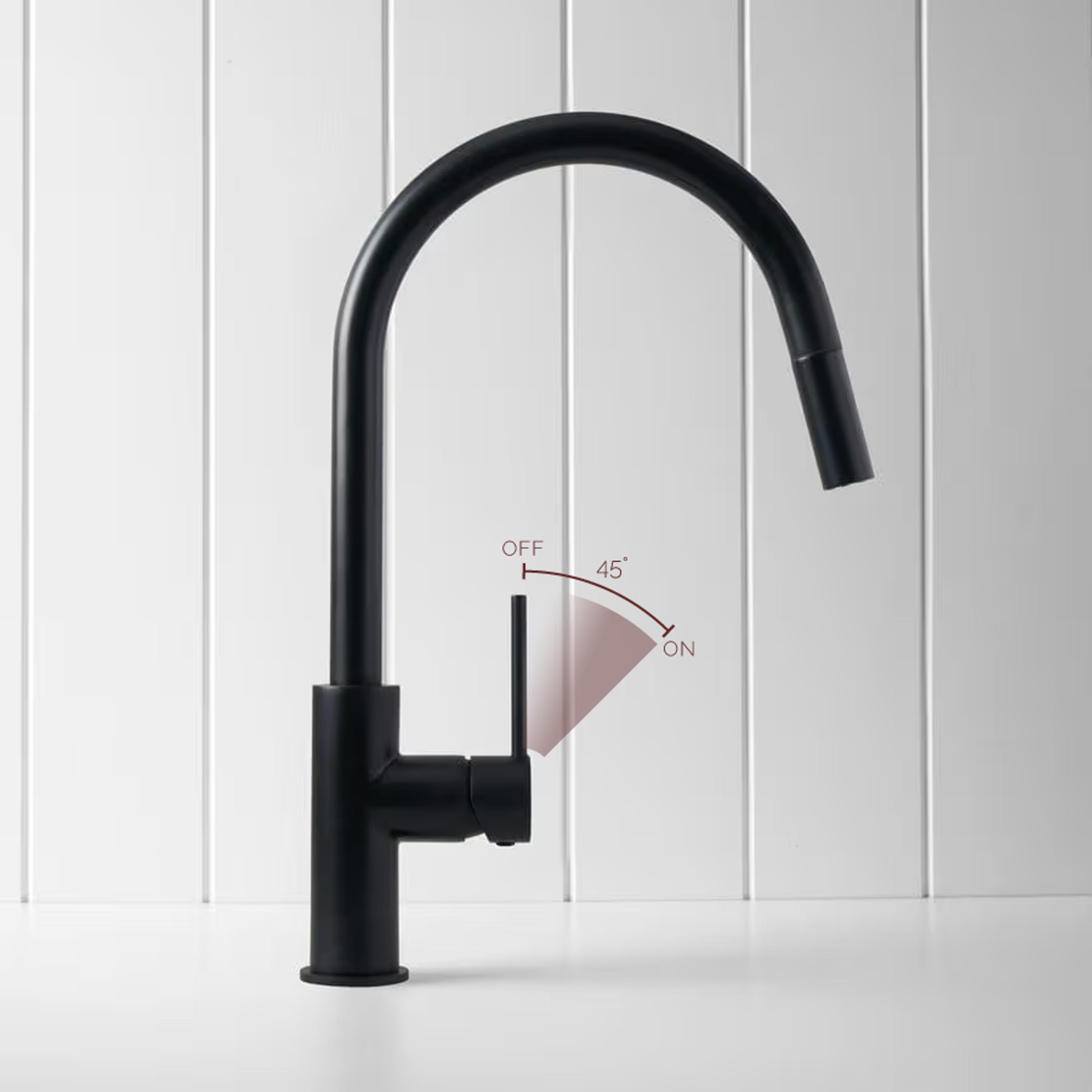 The Pullout Kitchen Mixer in Matte Black adds a confident, minimalist edge to your sink zone. Its pullout nozzle reaches across double bowls and bulky bakeware, making clean-up faster. Choose this matte black pullout kitchen mixer tap to tie together black hardware, appliances and a streamlined benchtop look.