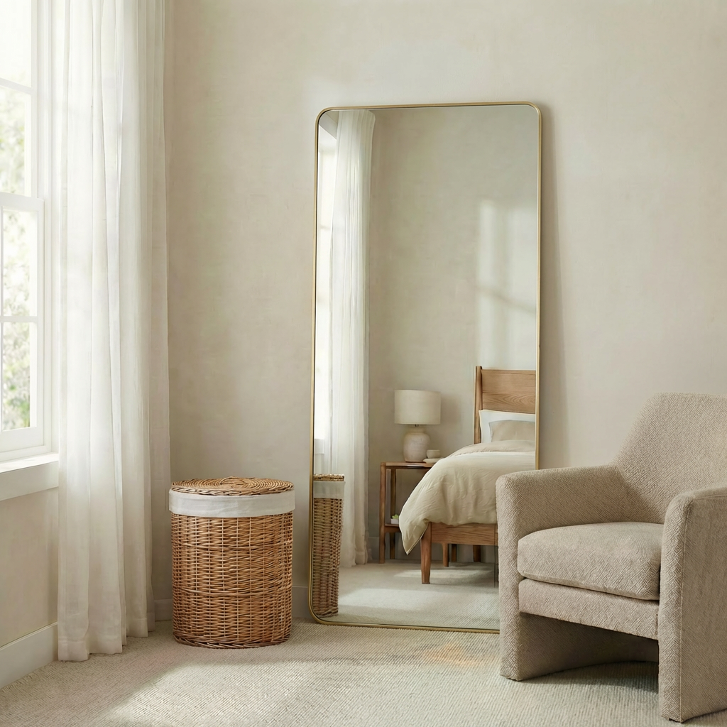 The Rectangular Full Length Mirror in Brushed Brass brings a warm, modern edge to your space. The lightly textured finish softens the overall look while adding a subtle sense of depth.