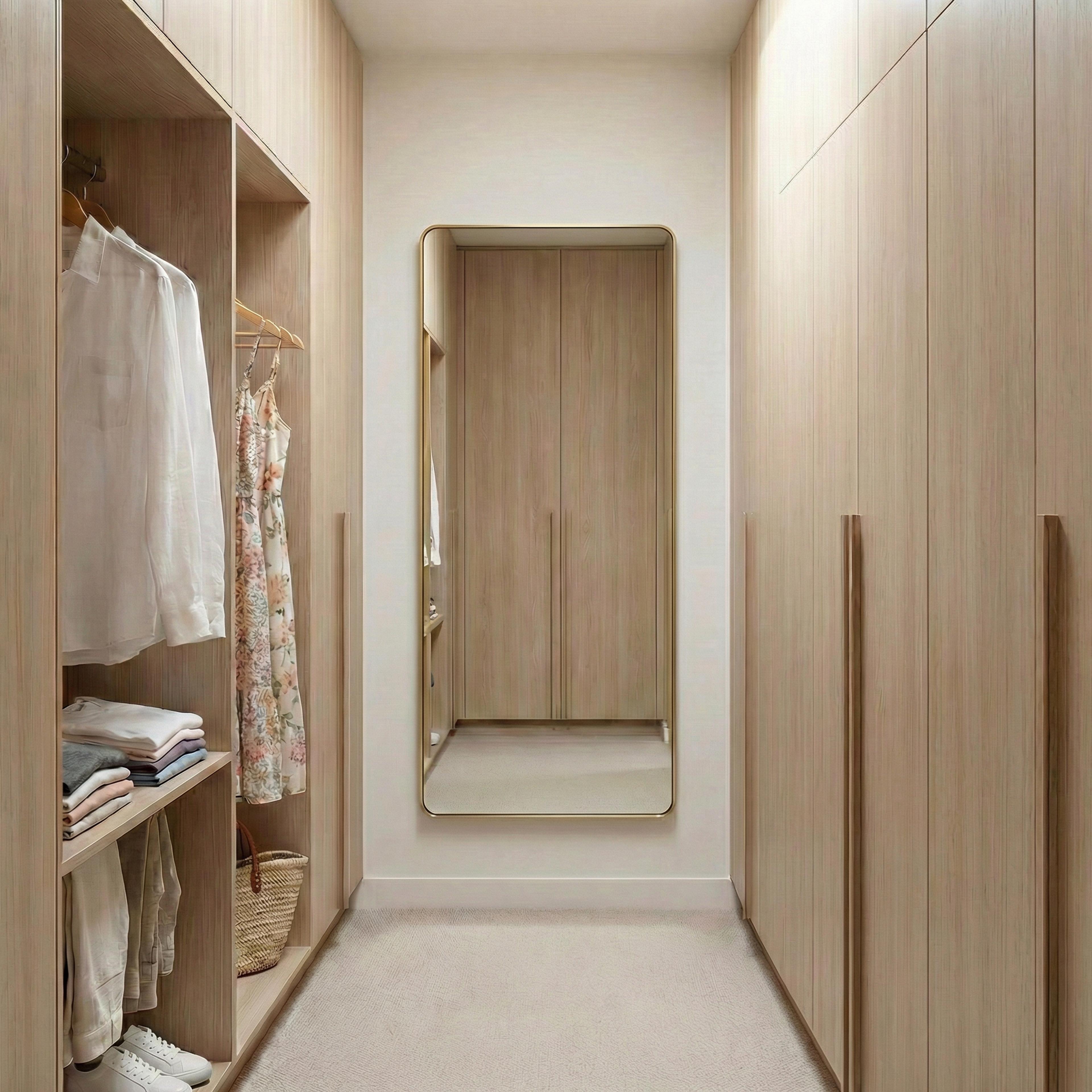 Suitable for a range of spaces, it can be wall-mounted or leaned across the bathroom, bedroom, living area or hallway. A practical piece that adds warmth and balance.