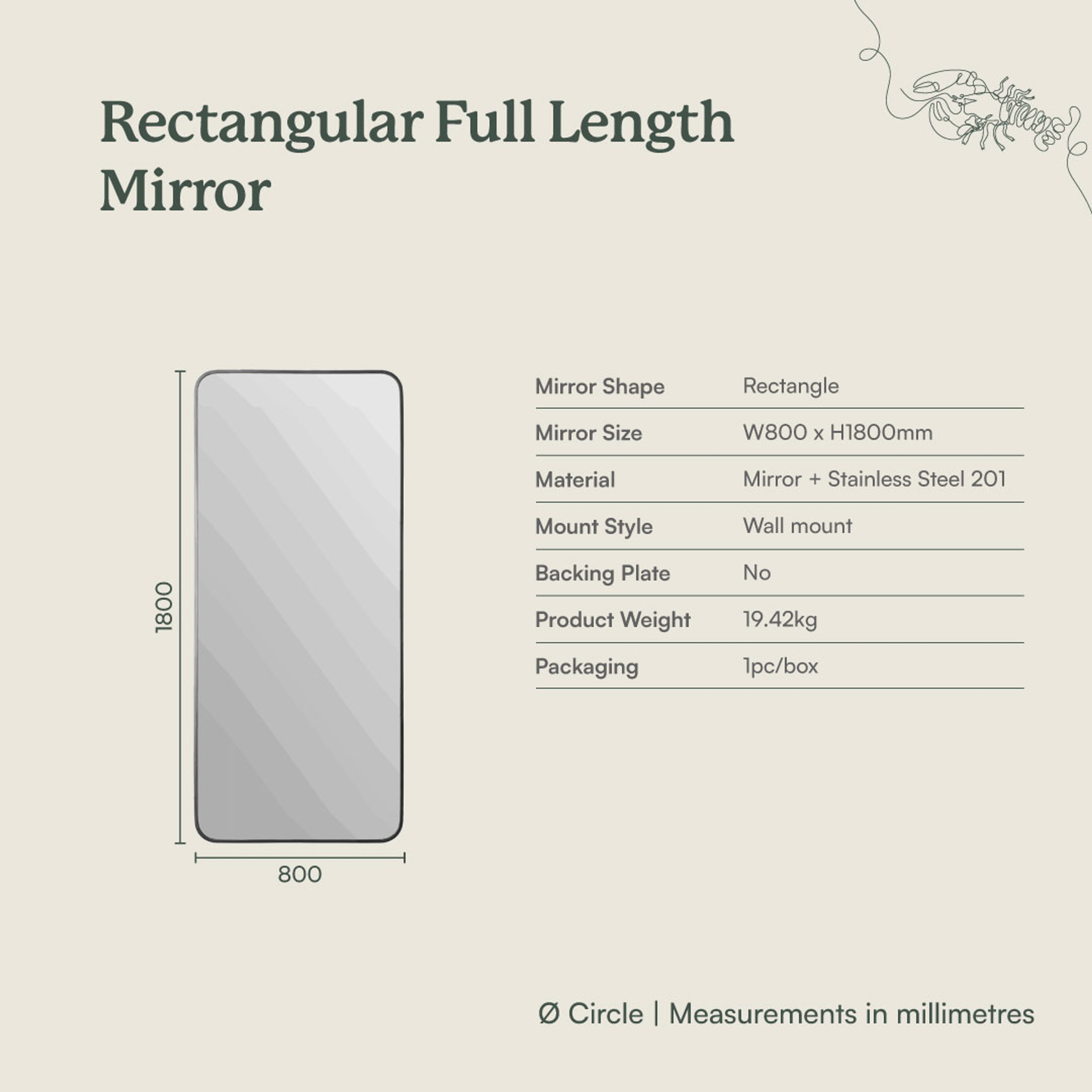 | Mirror Size | 800W x 1800H |