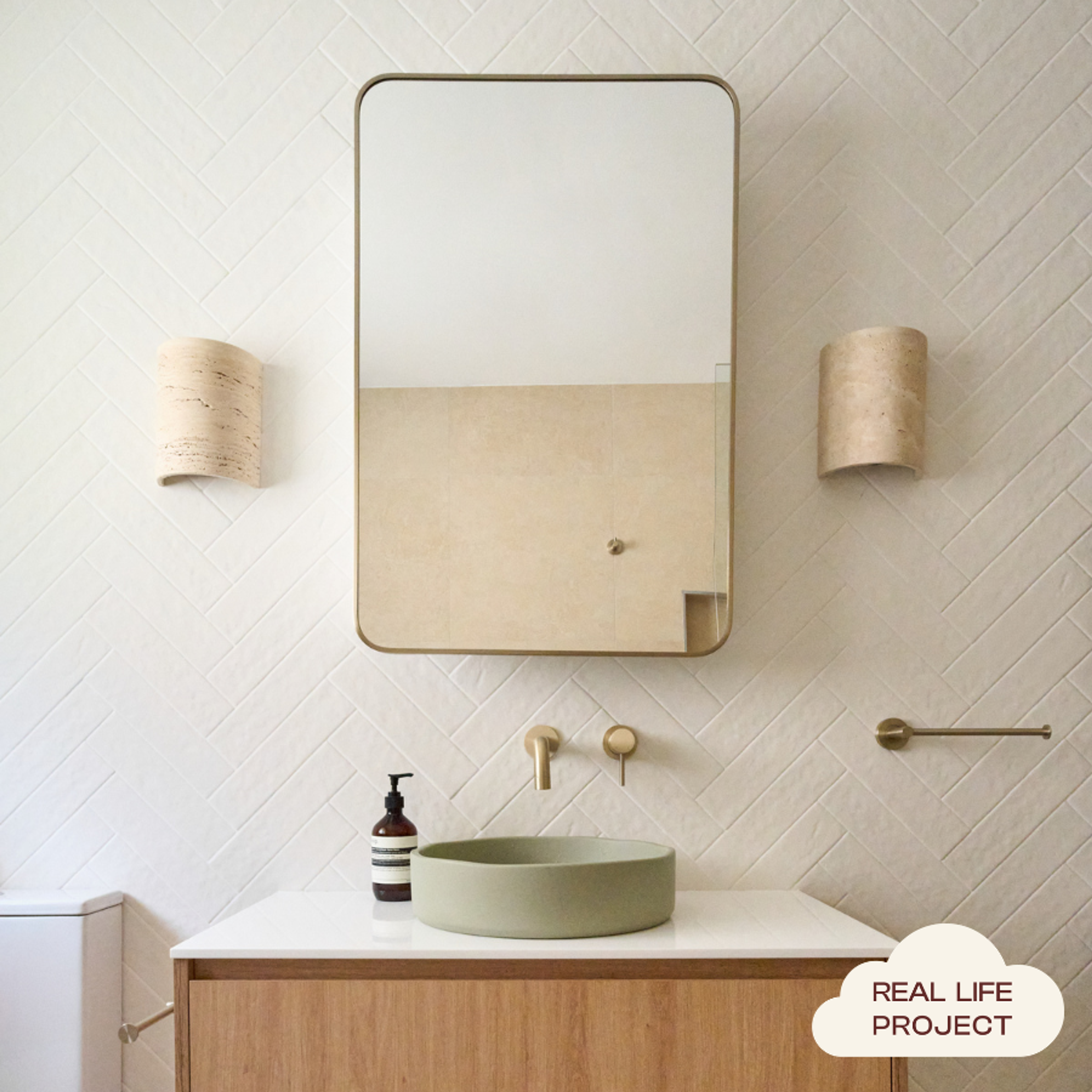 The Rectangular Mirror Cabinet in Warm Brushed Nickel frames the bathroom in a soft, greyed metallic that works with almost any palette. Recess it into the wall or mount it over tiles using the included brackets. Inside, adjustable shelves and dual mirror doors make everyday routines feel organised and light.