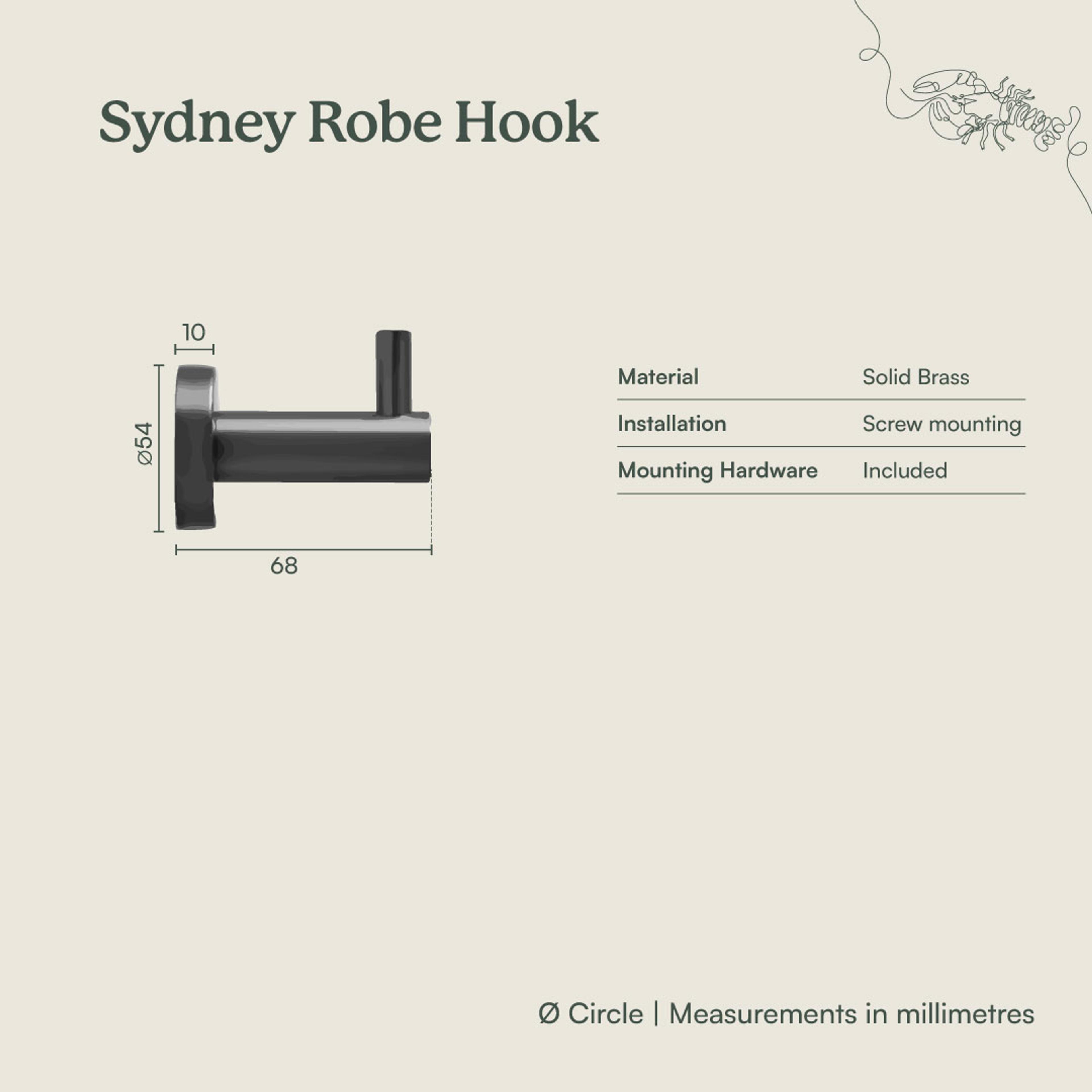 The Robe Hook in Matte Black adds a sharp, minimalist touch to your bathroom wall. Against white tiles or soft neutrals, this black bathroom robe hook creates confident contrast while keeping towels and robes close at hand. A small but striking way to echo black tapware.